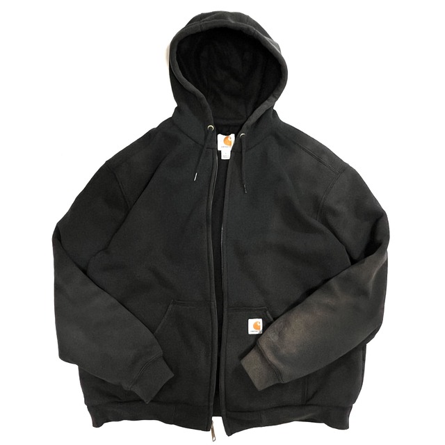極上フェード Carhartt カーハート ジップアップ サーマルライニング アクティブジャケット スウェットパーカー【 L Regular】【BLK/ブラック/黒】 レインディフェンダー フルジップ ヘビーウェイト 肉厚 サーマル裏地 ダブルフェイス フード フーディー メンズ トップス ソリッド ノームコア ワンポイント刺繍ロゴピスネーム メキシコ製 RAIN DEFENDER BLACK F16 USA企画 サンフェード 雰囲気抜群 スミクロ リアルワーク p25113393