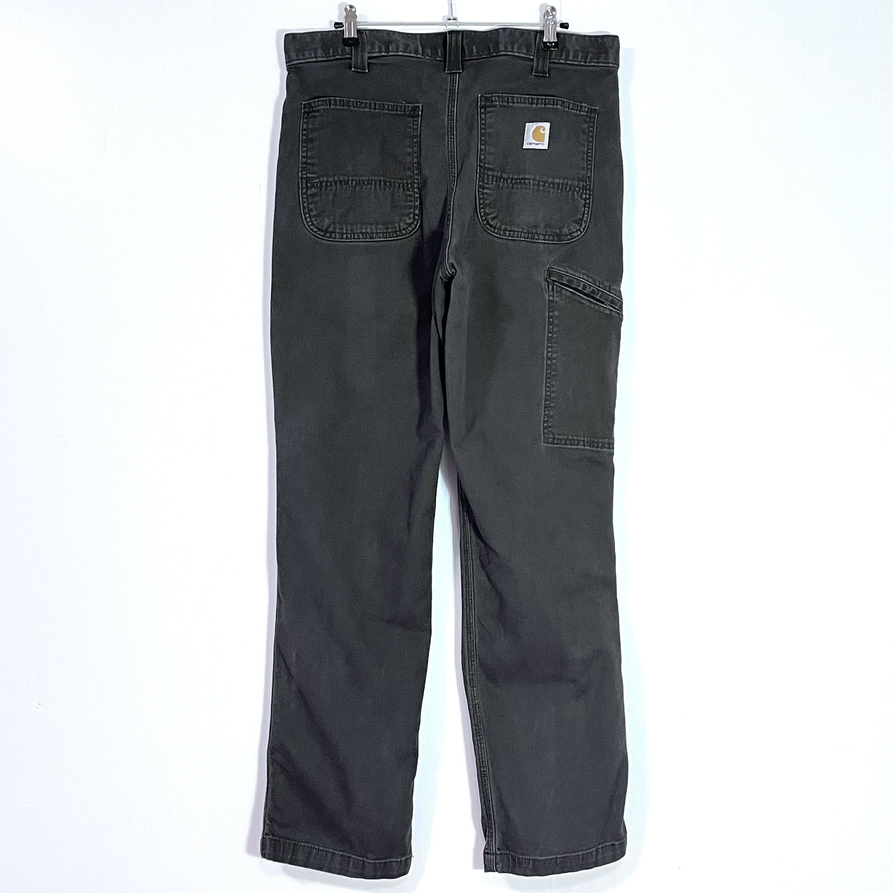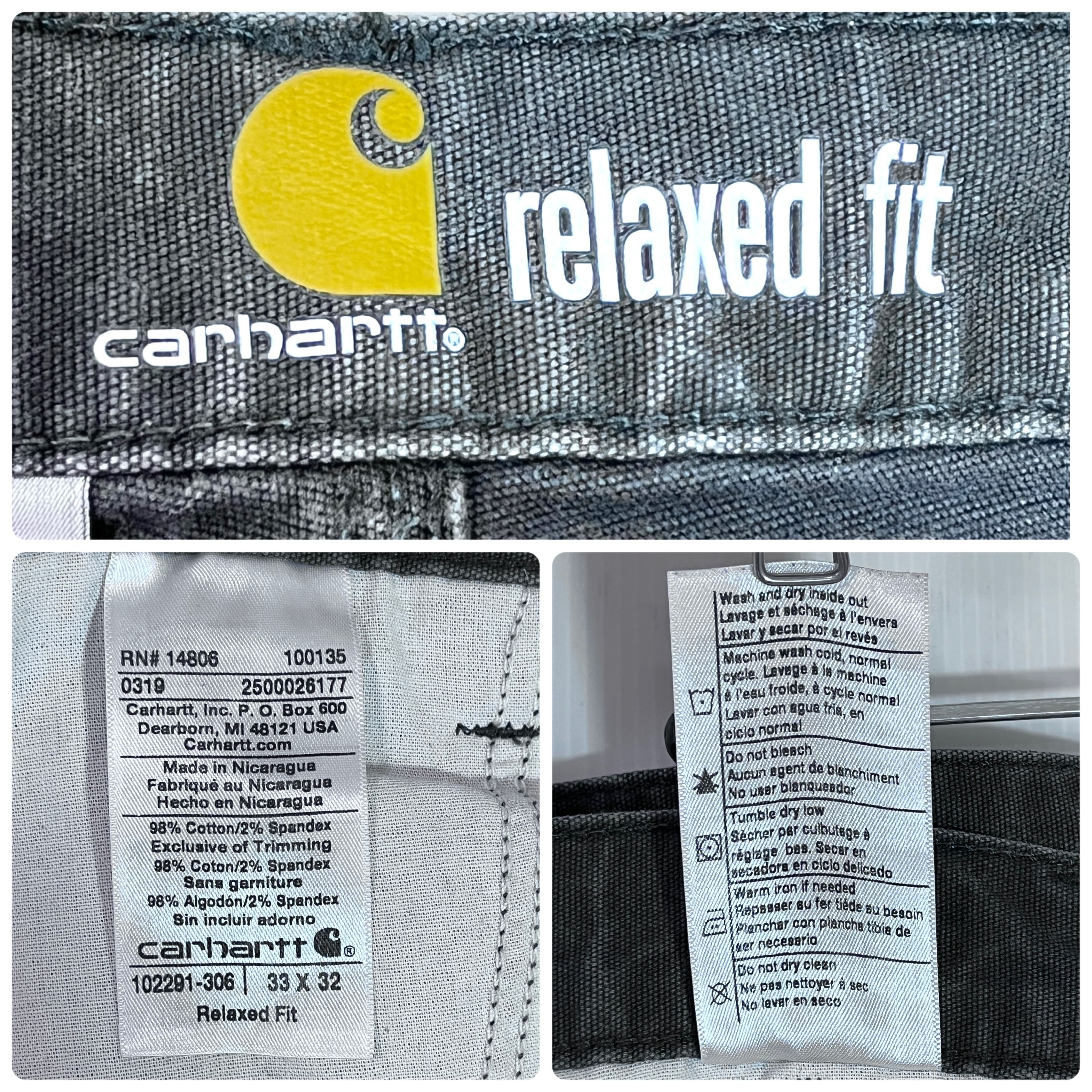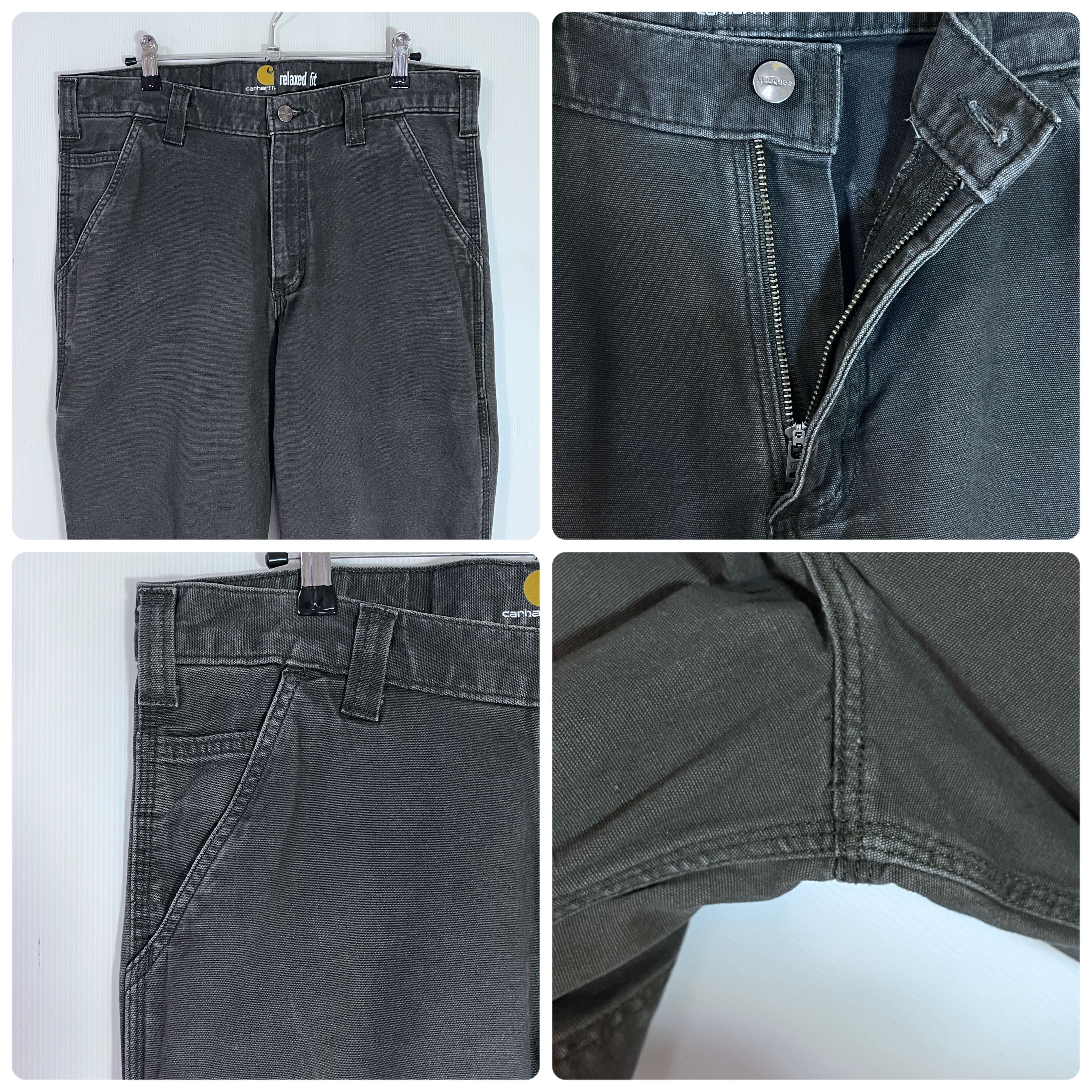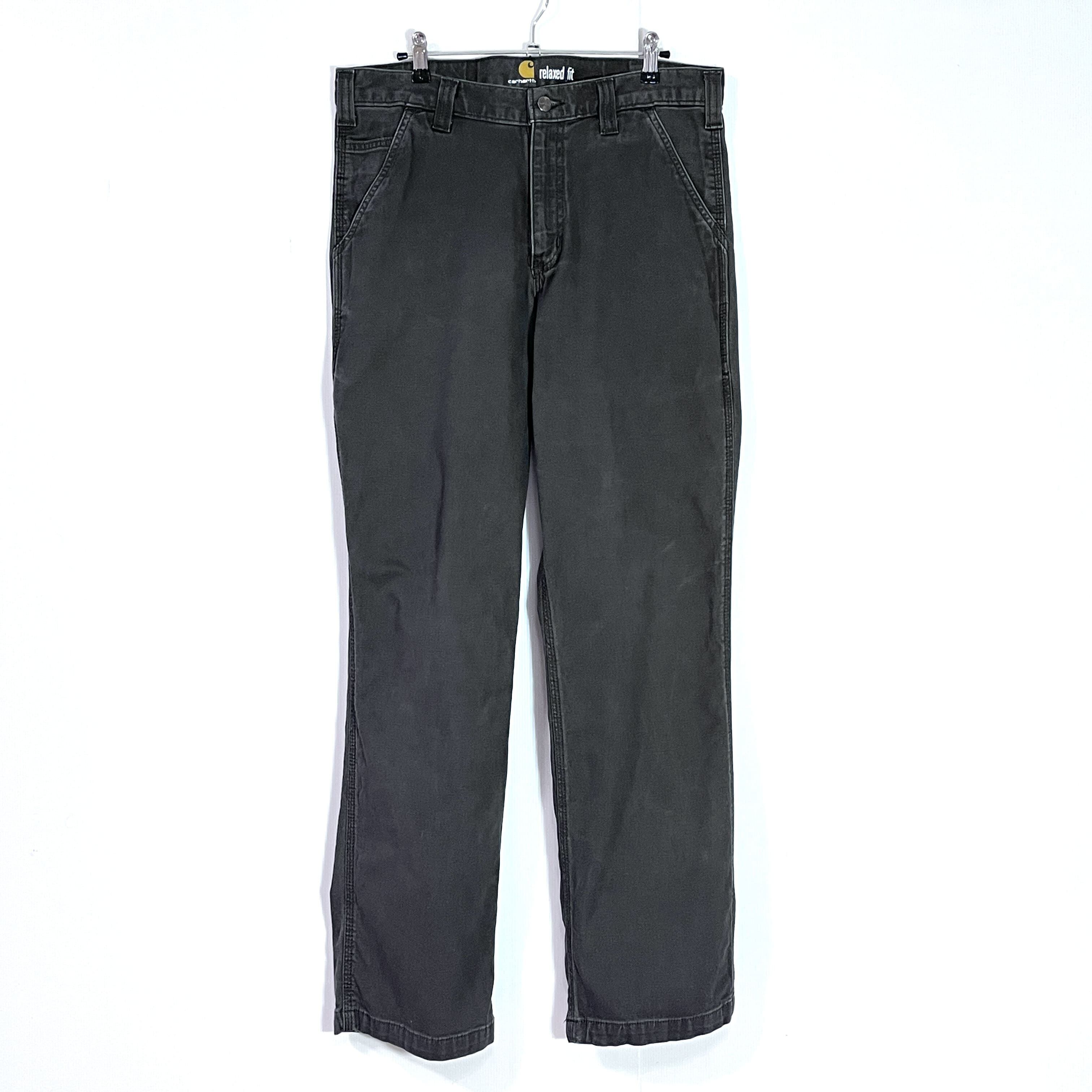 Carhartt カーハート W33L32 実寸W34L32 GRAY チャコールグレー 灰色 墨黒 ワンポイント刺繍ロゴピスネーム ストレッチ ライトオンス ダック地 ペインターパンツ ワークパンツ メンズ ボトムス Relaxed Fit リラックスドフィット リラックスフィット ワイドバギー グッドフェード p25013090