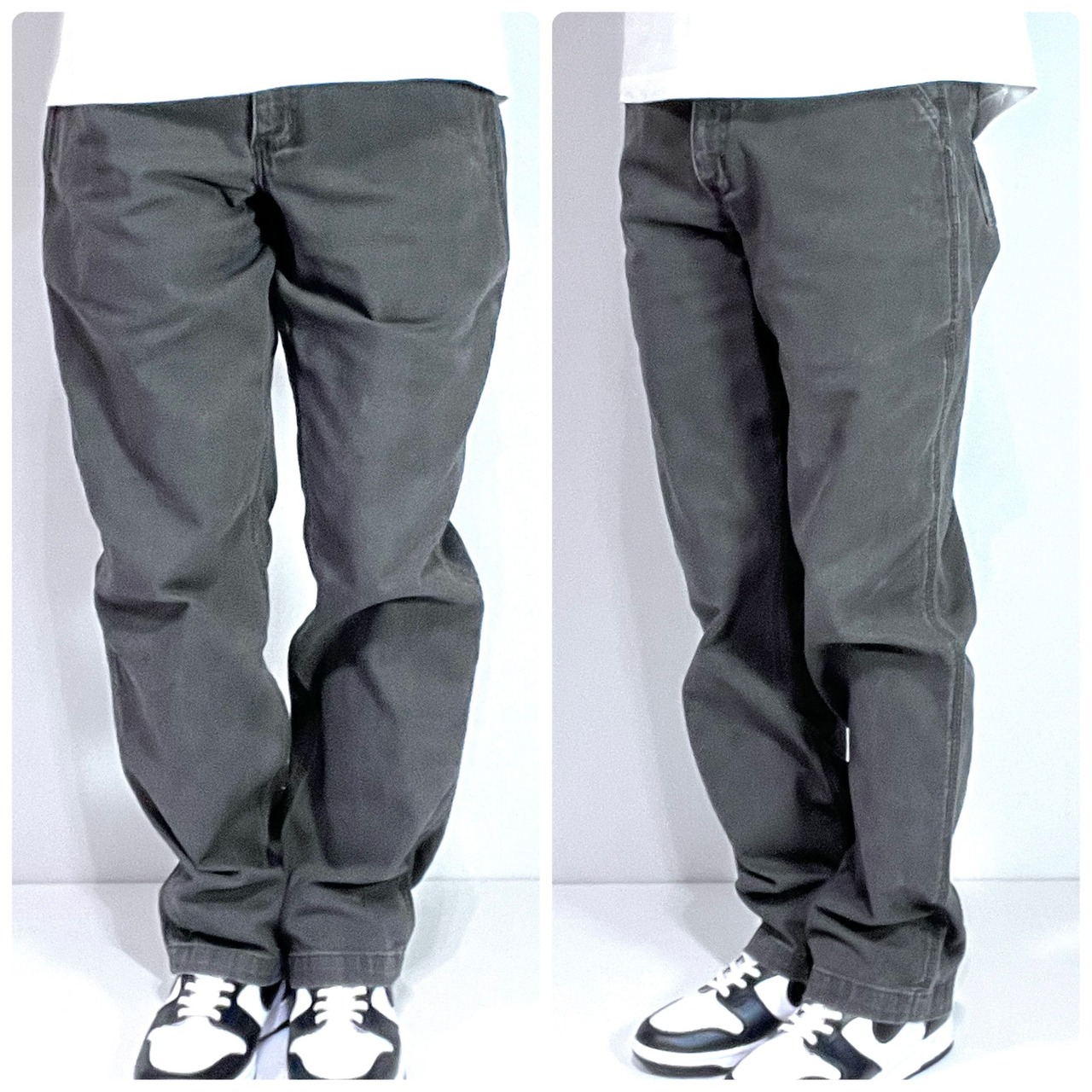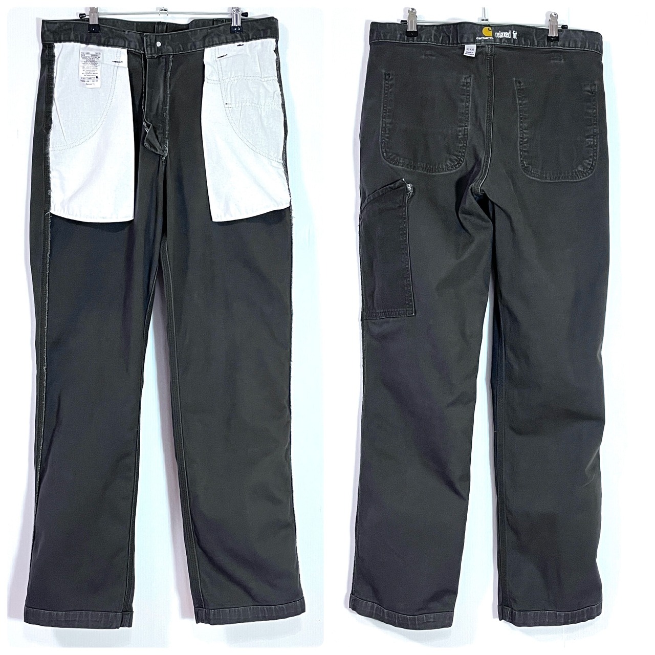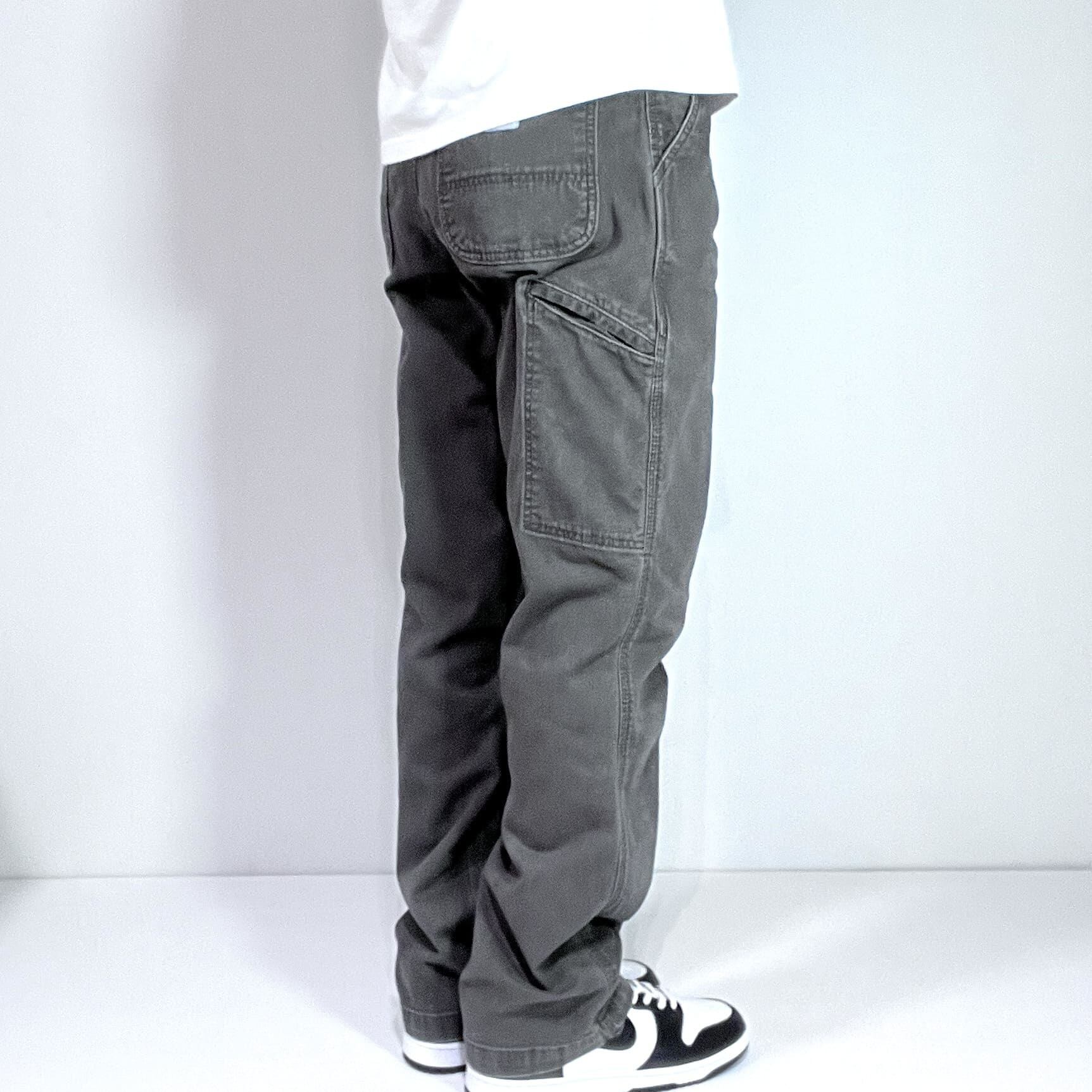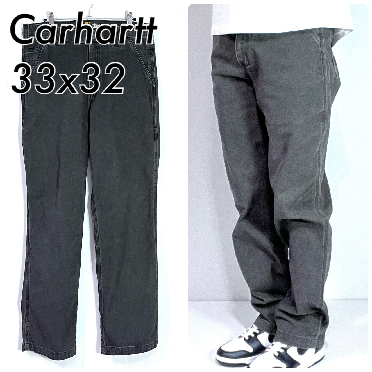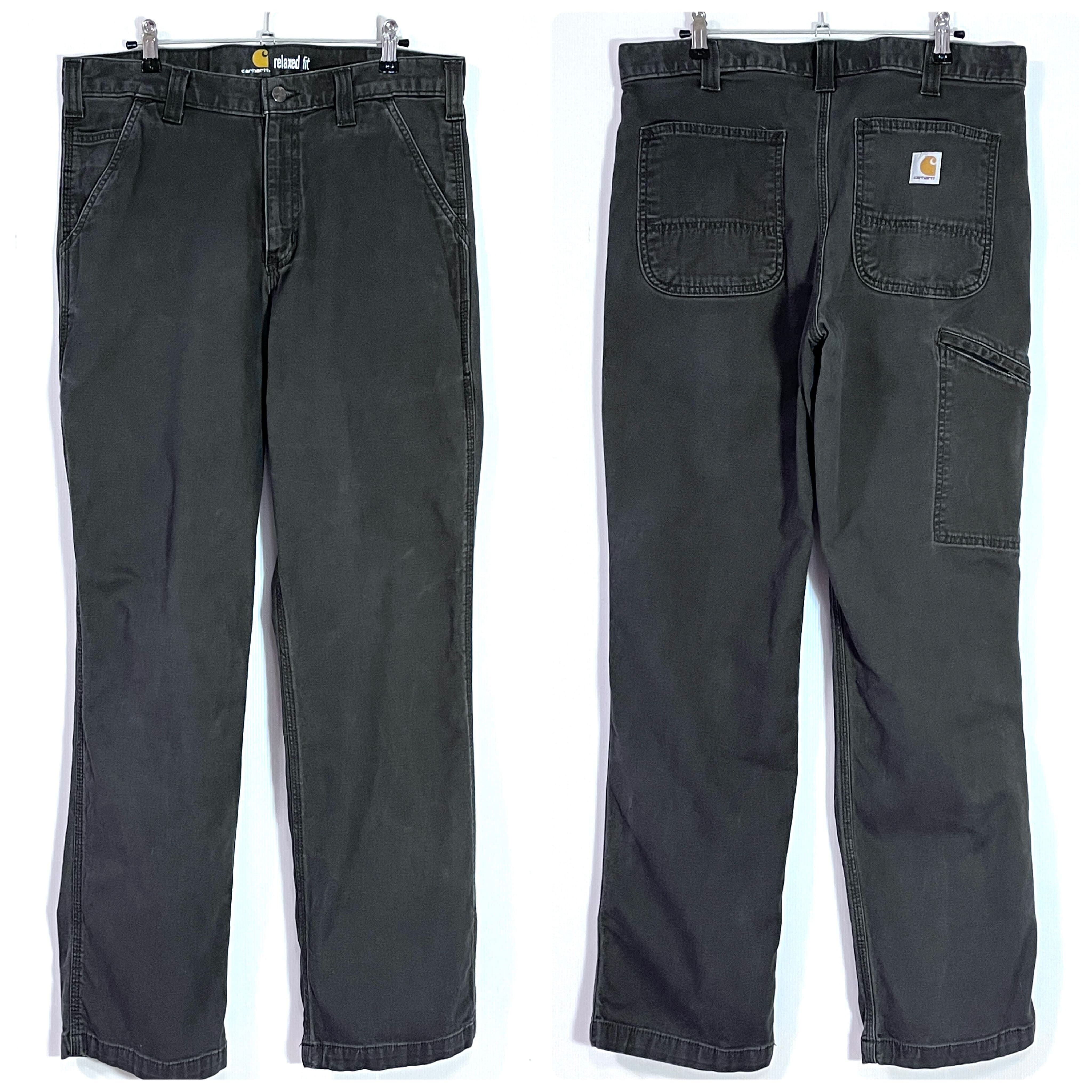 Carhartt カーハート W33L32 実寸W34L32 GRAY チャコールグレー 灰色 墨黒 ワンポイント刺繍ロゴピスネーム ストレッチ ライトオンス ダック地 ペインターパンツ ワークパンツ メンズ ボトムス Relaxed Fit リラックスドフィット リラックスフィット ワイドバギー グッドフェード p25013090