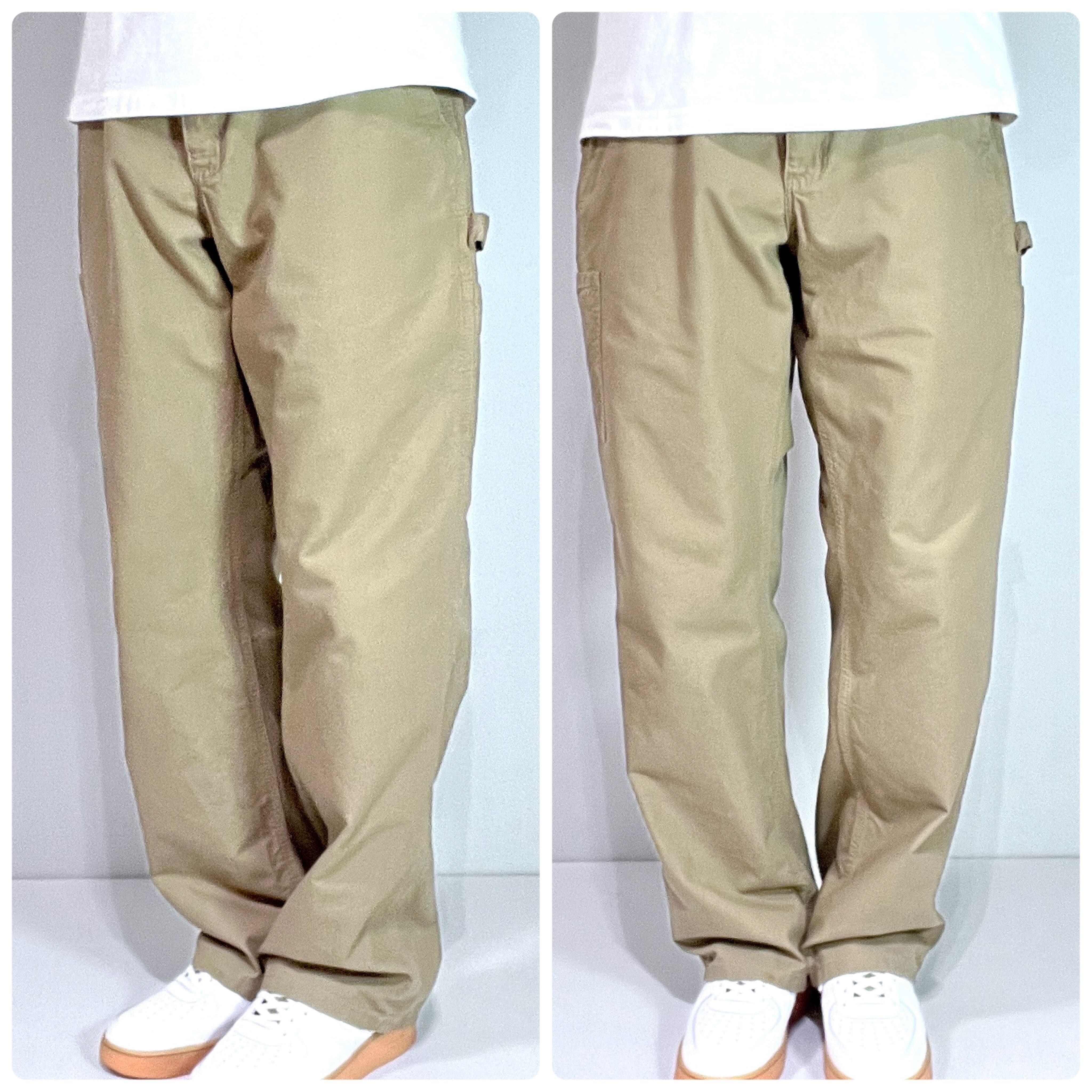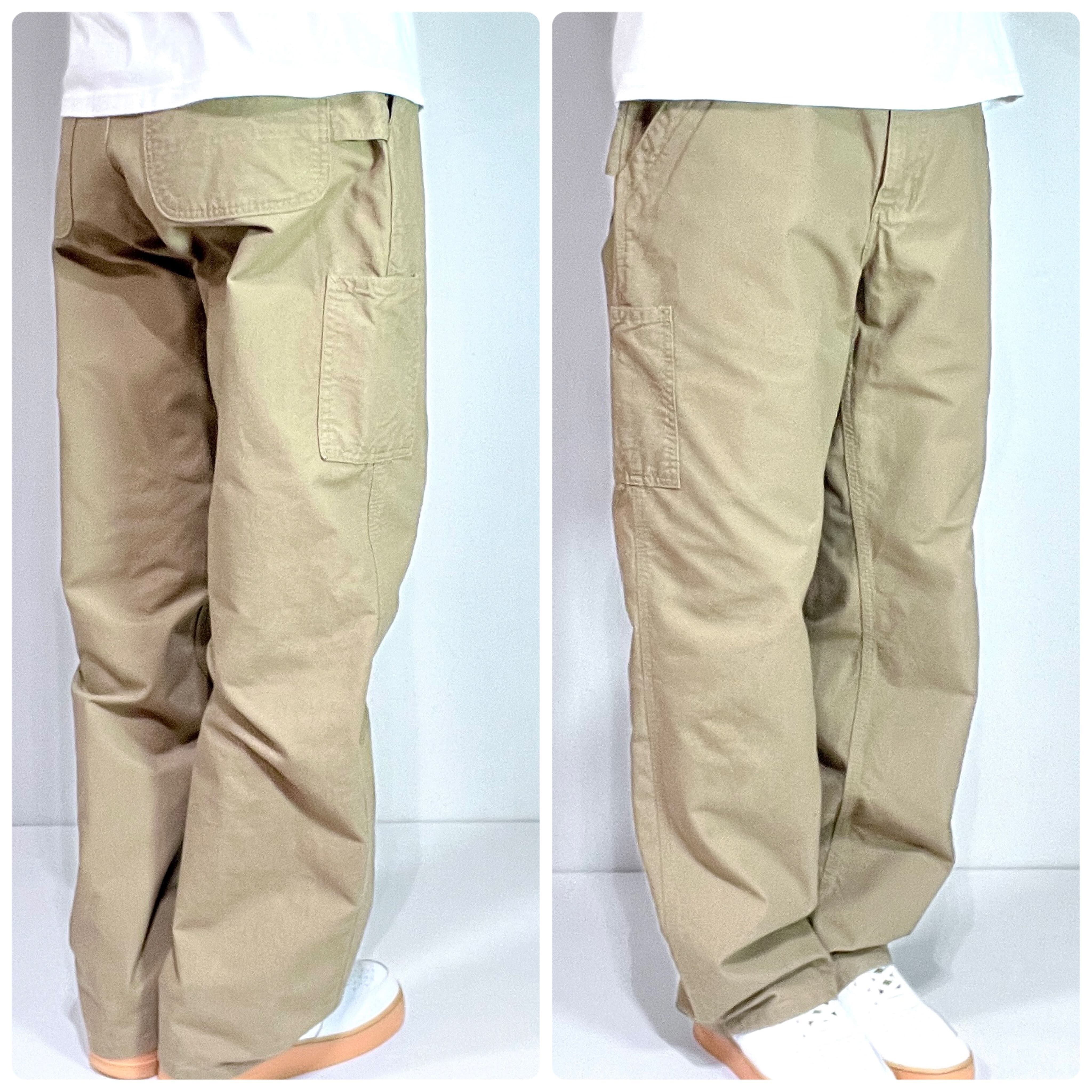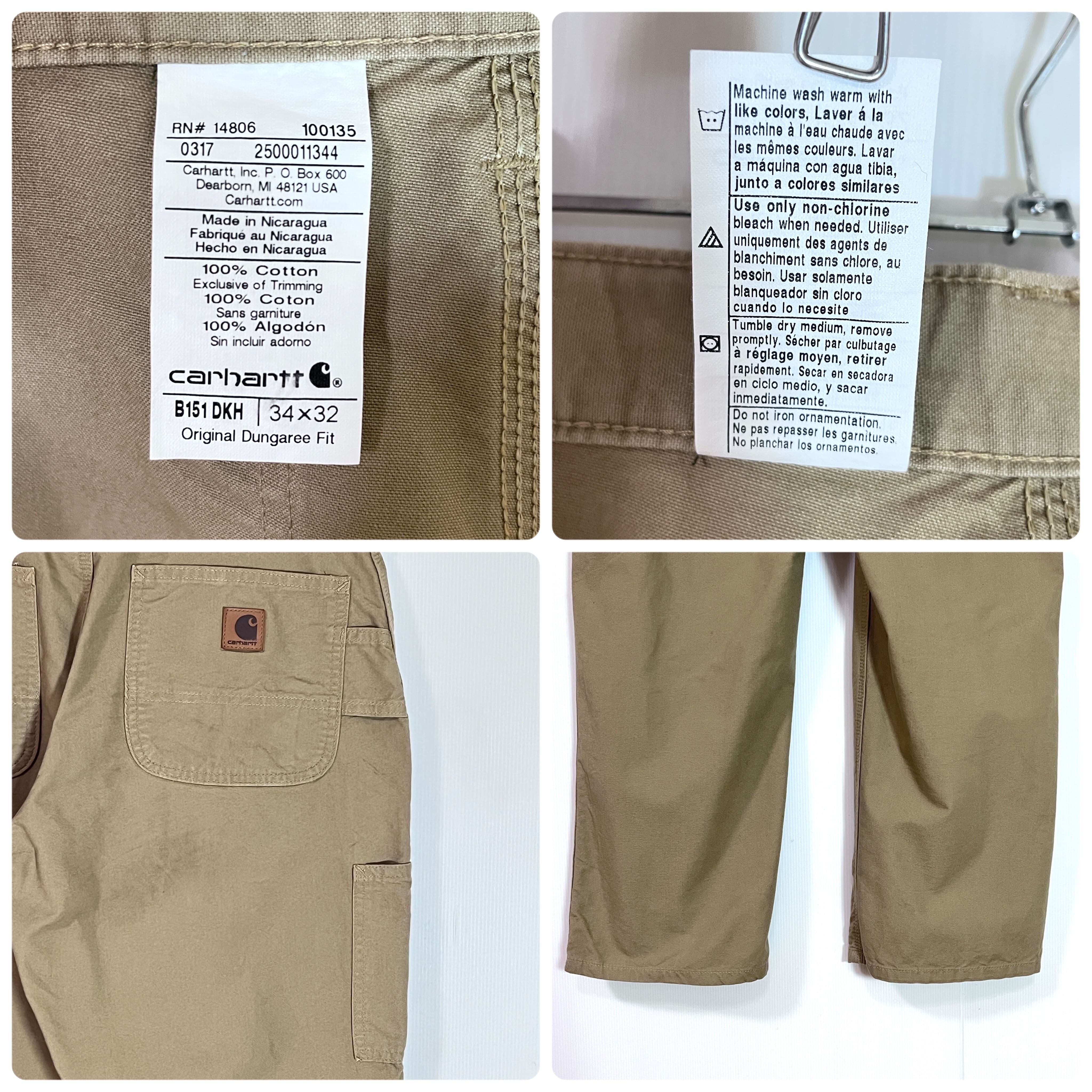 Carhartt カーハート W34 L32 ベージュ ワンポイントレザーピスネーム コットン ライトオンス ダック地 ペインターパンツ ワークパンツ ボトムス Original Dungaree Fit オリジナル ダンガリーフィット ワイドバギー B151 DKH p25013091