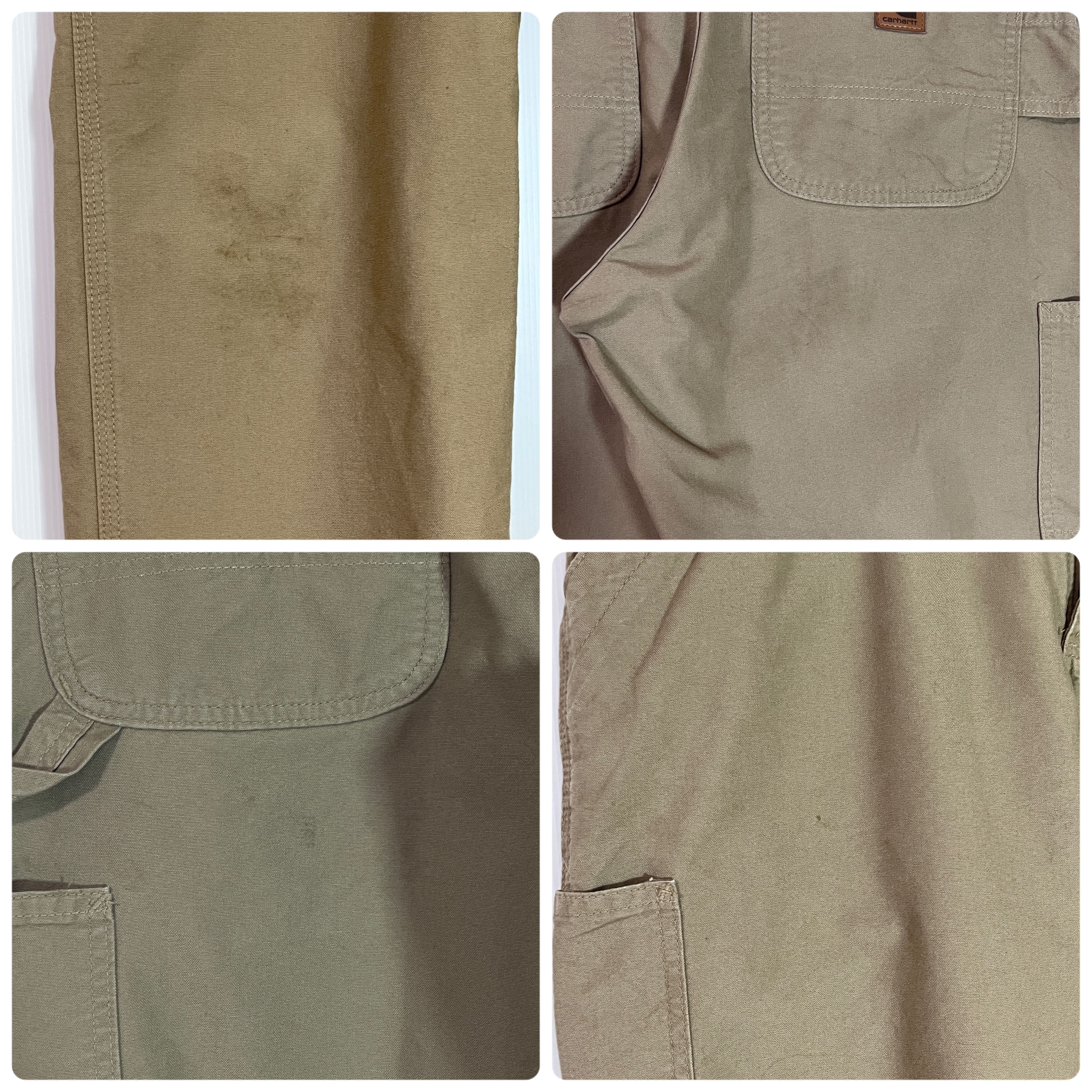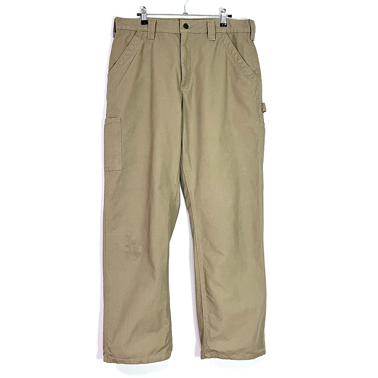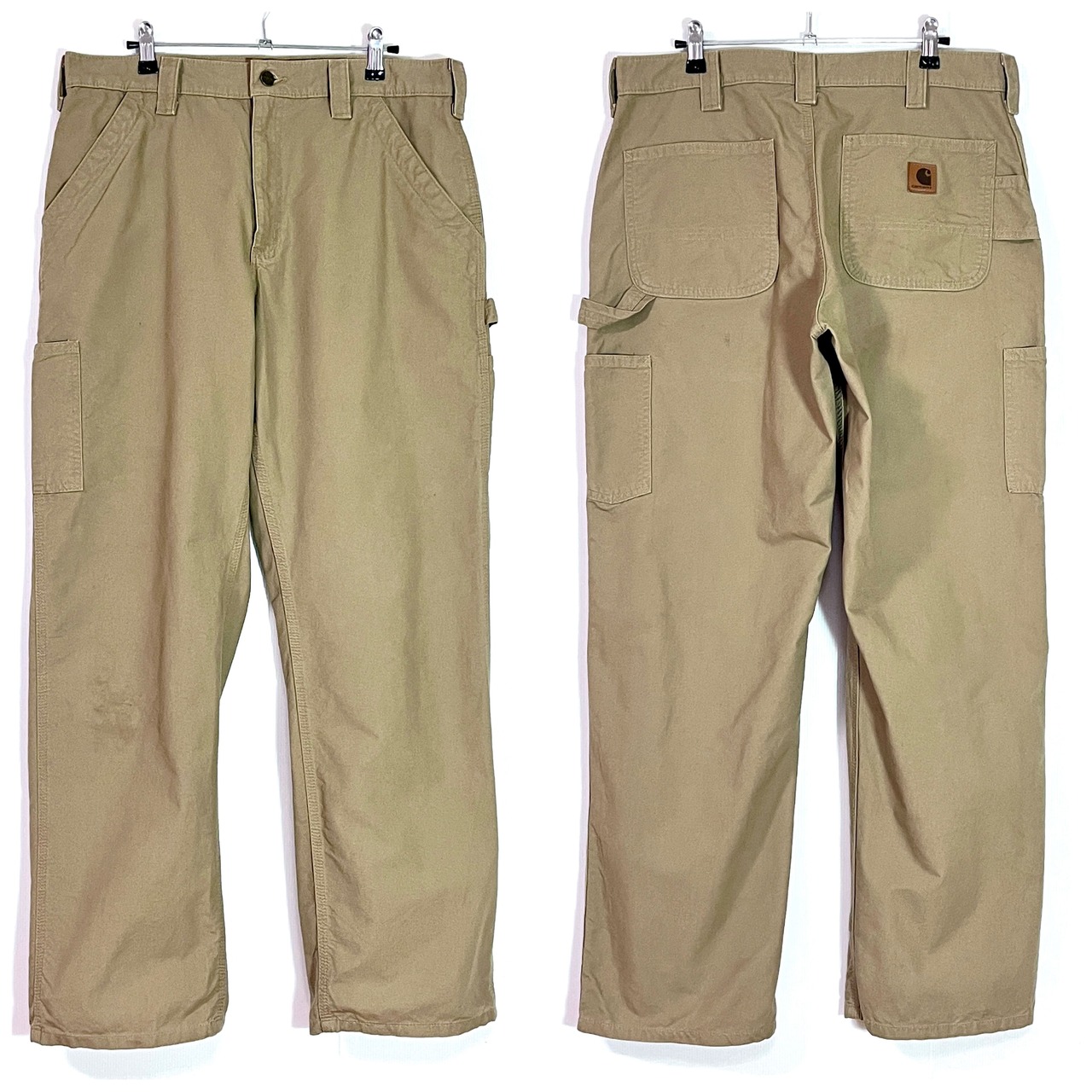 Carhartt カーハート W34 L32 ベージュ ワンポイントレザーピスネーム コットン ライトオンス ダック地 ペインターパンツ ワークパンツ ボトムス Original Dungaree Fit オリジナル ダンガリーフィット ワイドバギー B151 DKH p25013091
