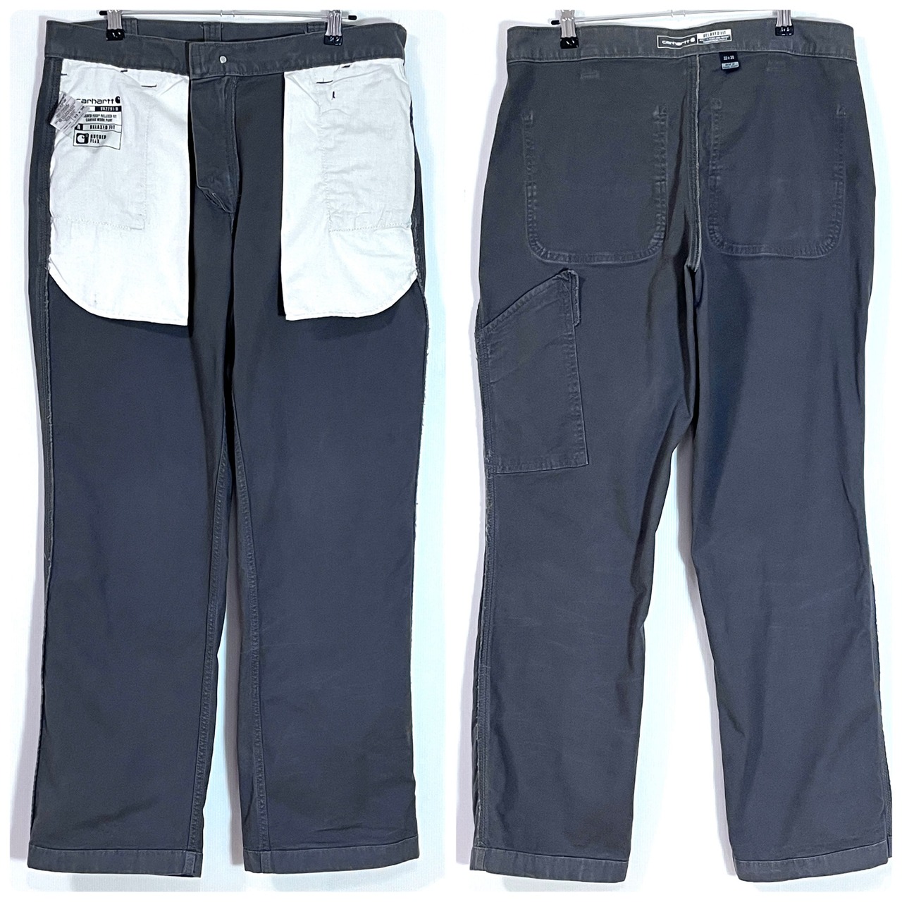 Carhartt カーハート W33 L30 ゴールデンサイズ GRAY GRY チャコールグレー 灰色 墨黒 ワンポイント刺繍ロゴピスネーム ストレッチ ライトオンス ダック地 ペインターパンツ ワークパンツ メンズ ボトムス RUGGED FLEX Relaxed Fit リラックスドフィット リラックスフィット ワイドバギー BN2291-M FALL 2022 p25013096