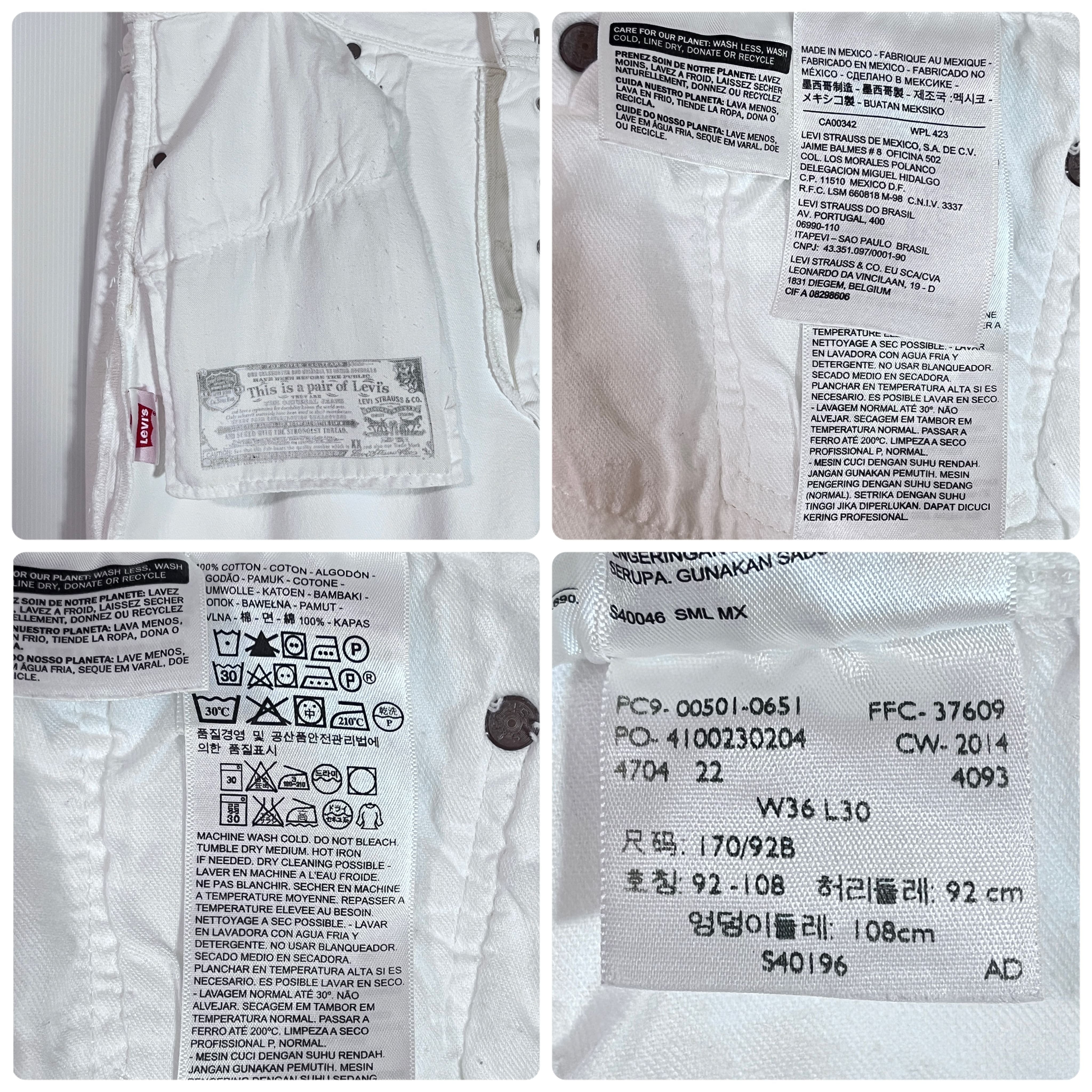 Levi's リーバイス 501 W36 L30 ホワイト 白 WHITE REGULAR FIT レギュラー フィット デニムパンツ ジーンズ ホワイトジーンズ ホワイトデニム メンズ ボトムス Gパン ジーパン メキシコ製 ゴールデンサイズ p25013100