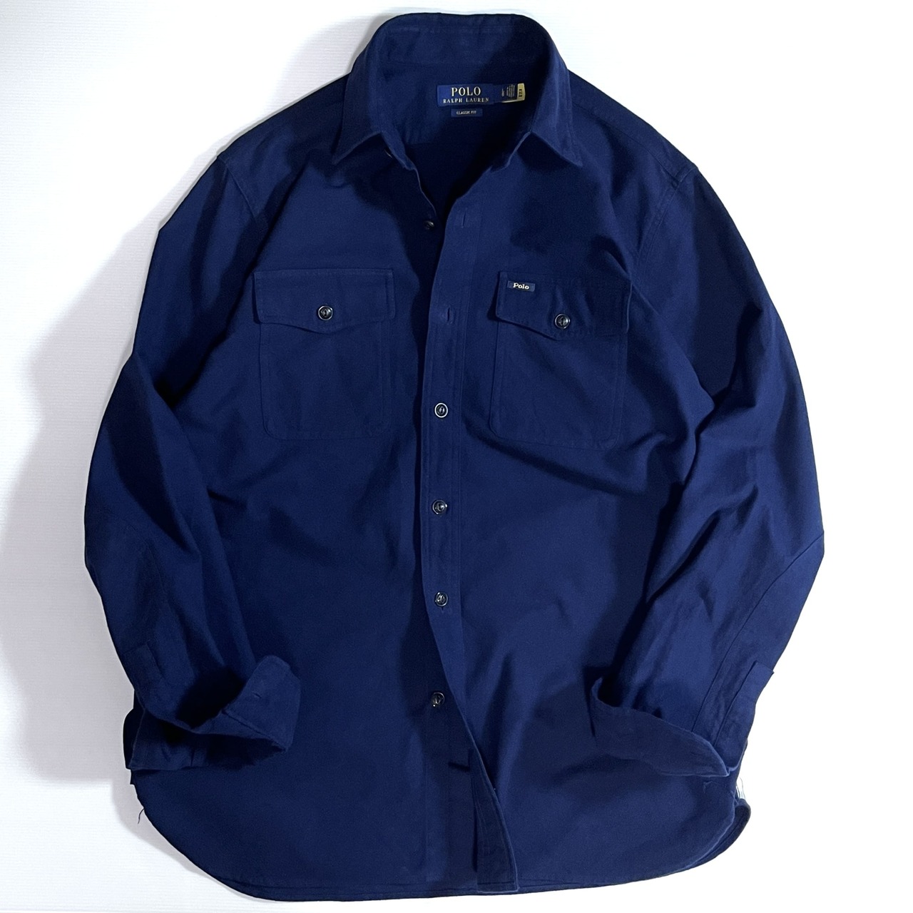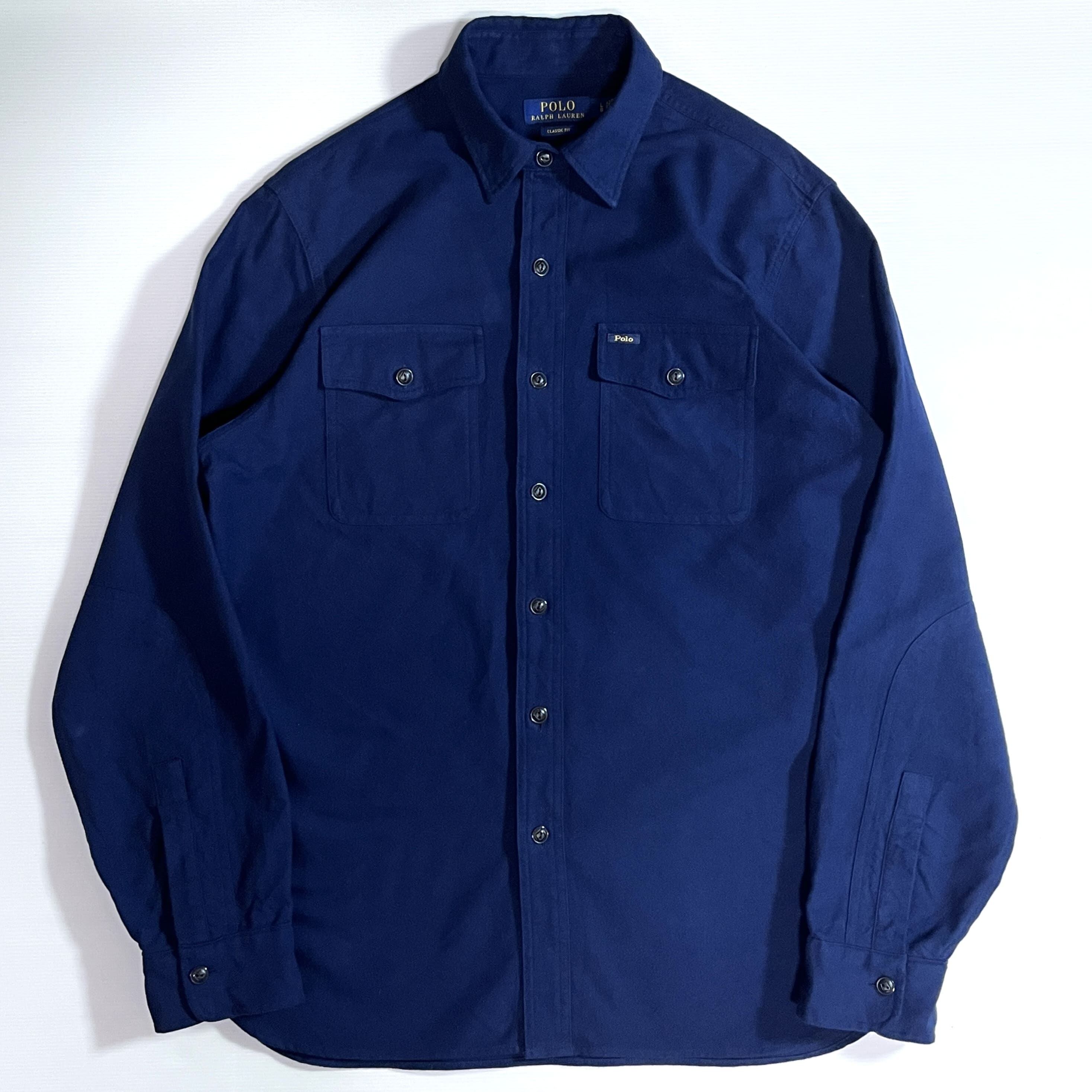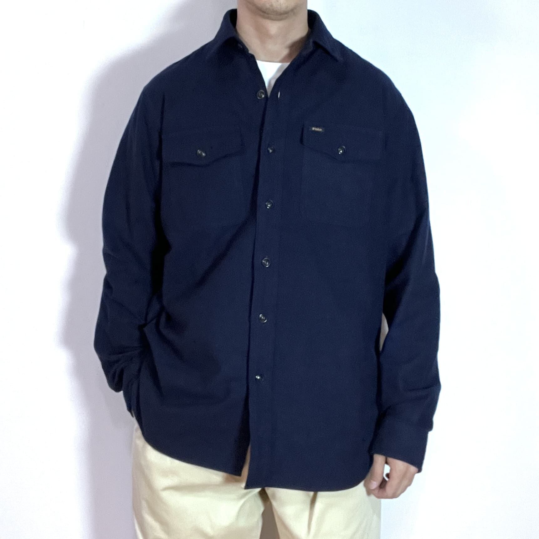超美品 Polo Ralph Lauren ポロラルフローレン L ネイビー 濃紺 NAVY 2020AW チンストラップ ワンポイント刺繡ロゴピスネーム フラップポケット 無地 厚手 長袖 ヘビー ネルシャツ フランネルシャツ シャモア ワークシャツ メンズ トップス カットソー CLASSIC FIT クラシックフィット p25033138