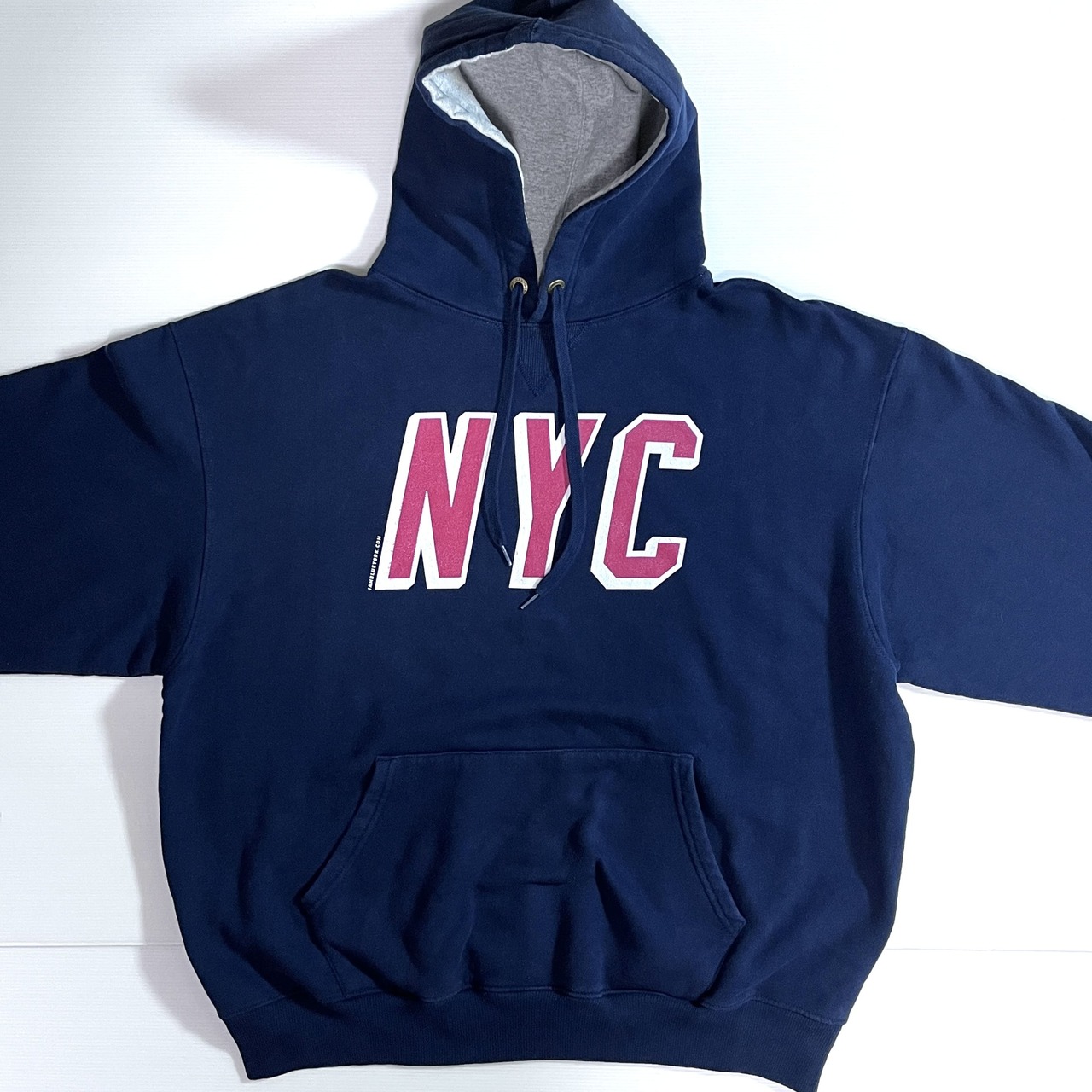 ・レッドにホワイトフレームのNYCプリントが濃いめのネイビーボディに映えるグラフィック、シンプルデザインのNYのスーベニアアイテム