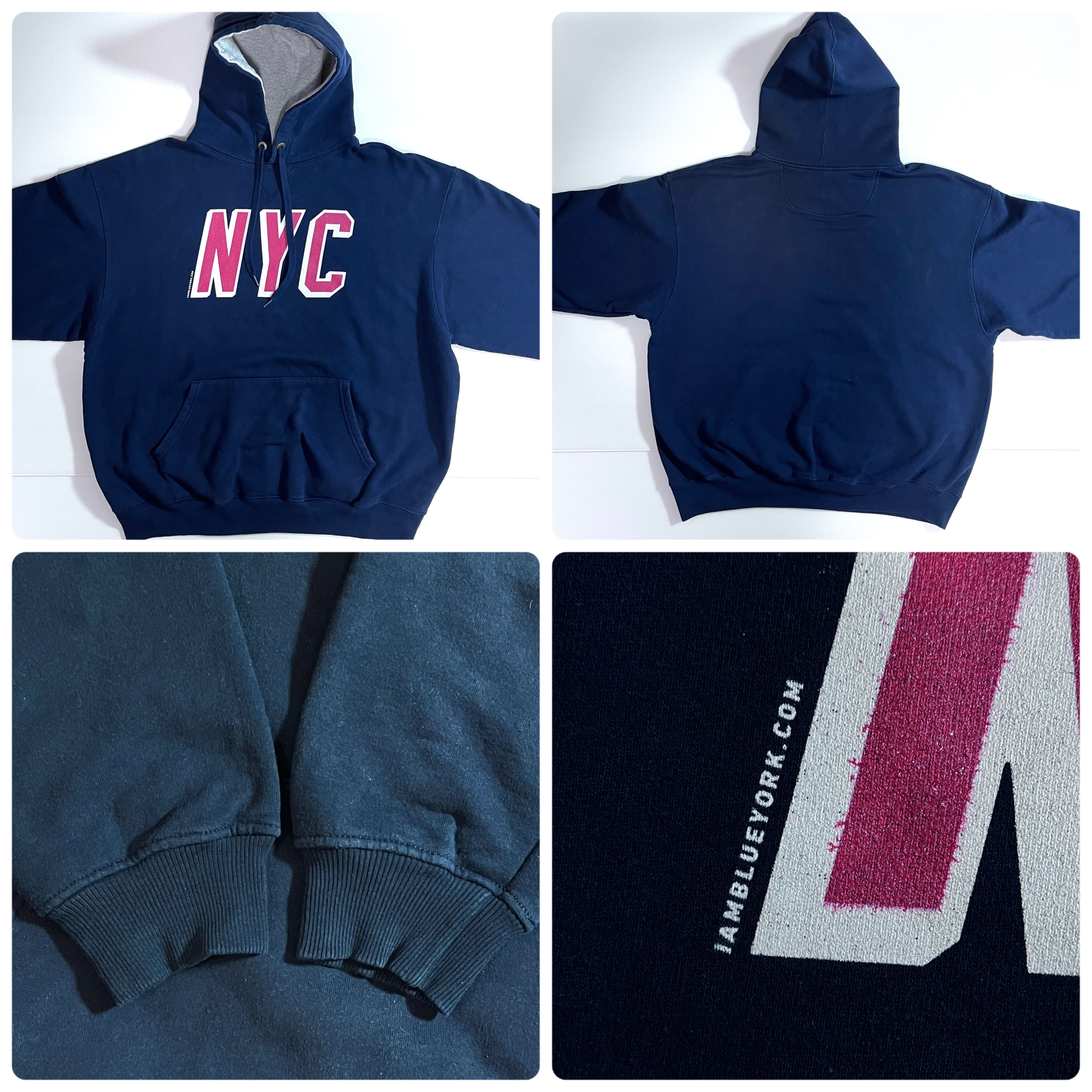 NHL NY New York Rangers ニューヨーク レンジャース iamblueyork NYC ラバープリント 肉厚 ヘビーウェイト 前V ガゼット 裏起毛 プルオーバー スウェット パーカー ツートン フード フーディー トップス ナショナルホッケーリーグ アイスホッケー チーム トリコロール