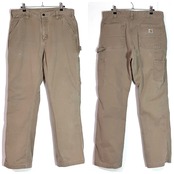 Carhartt カーハート W34 L32 DKH ダークカーキ ベージュ ワンポイント刺繍ロゴピスネーム ヘビーコットンツイル チノ ペインターパンツ ワークパンツ メンズ ボトムス Relaxed Fit リラックスドフィット リラックスフィット ワイドバギー B324 DKH 2019年 9月 10s メキシコ製 グッドフェード p25033160