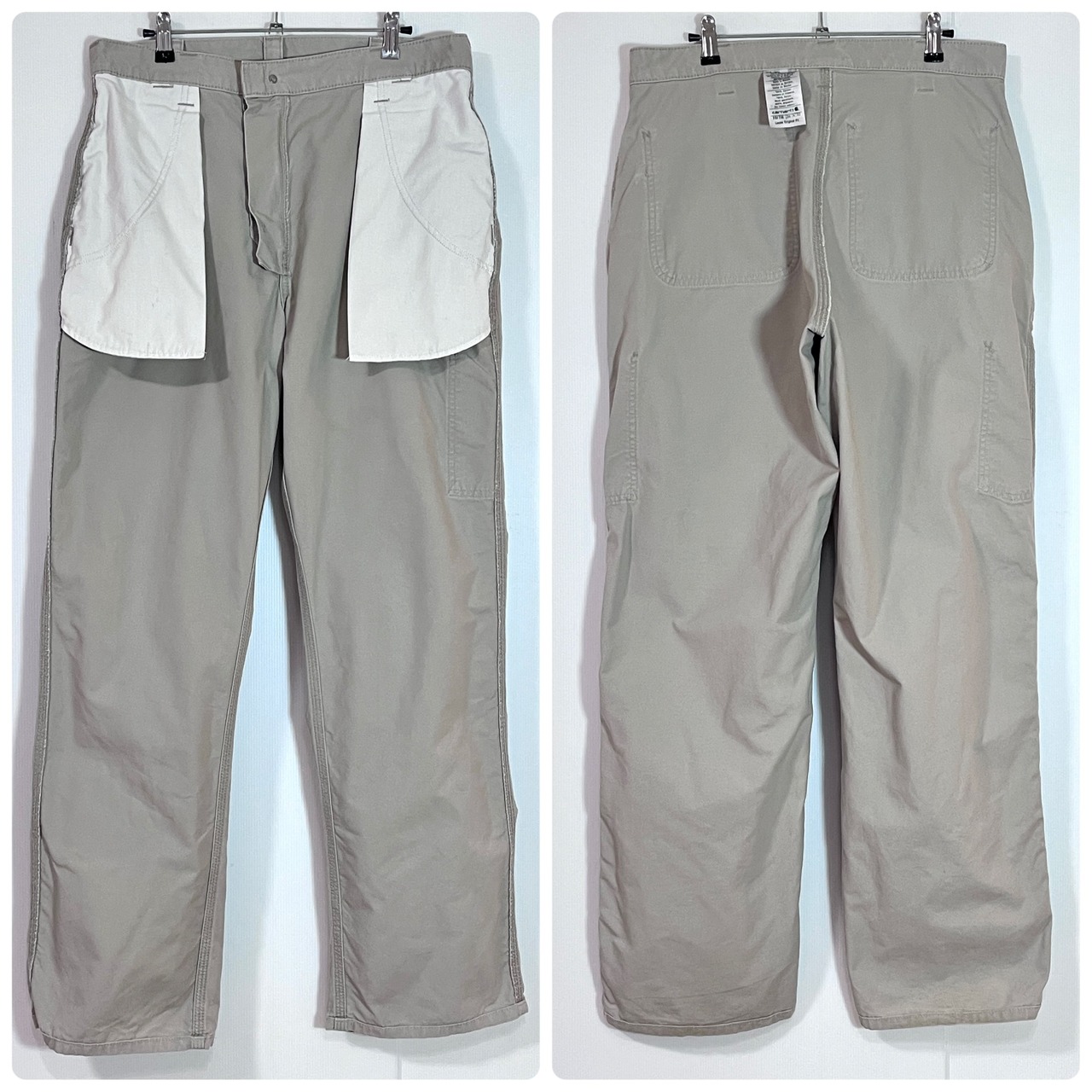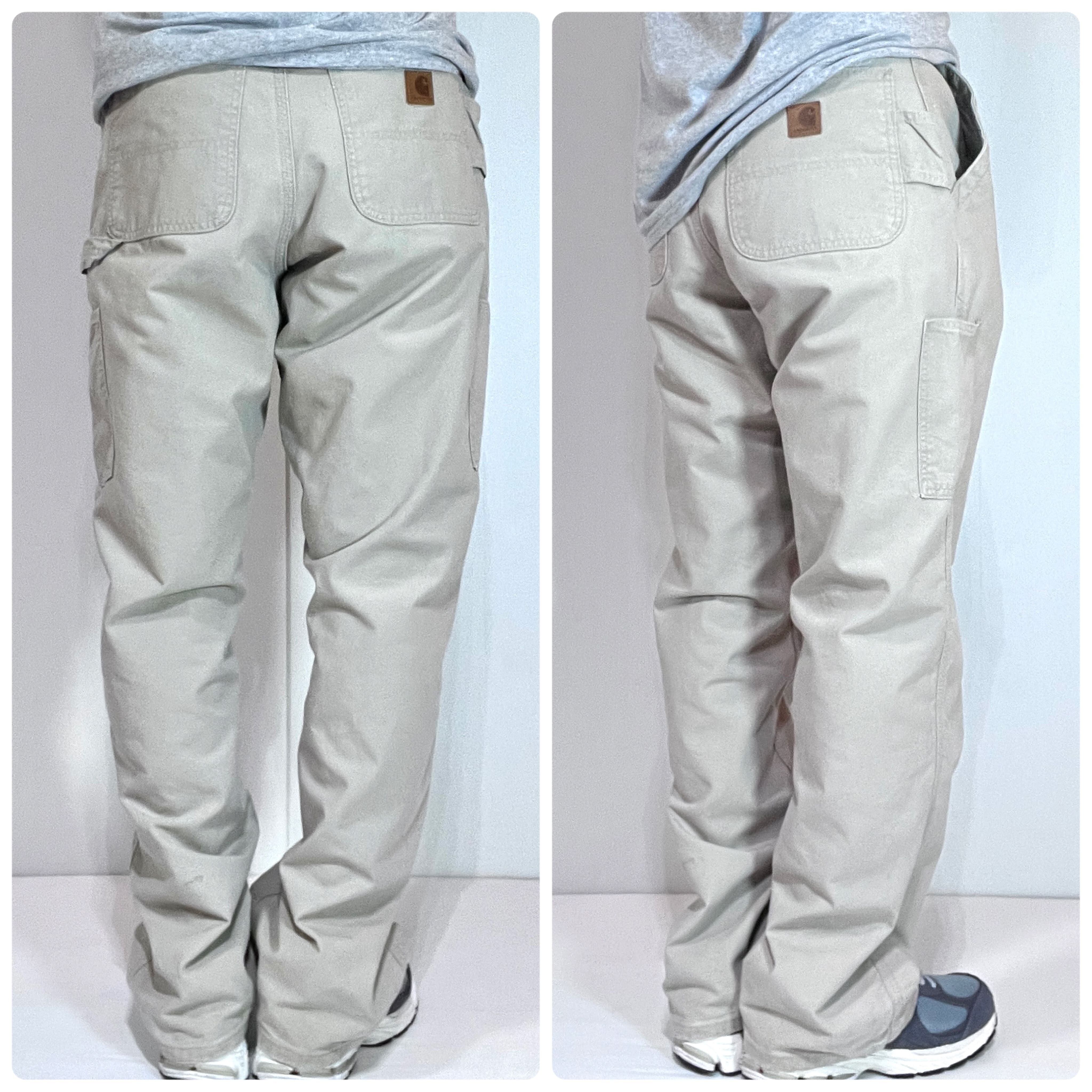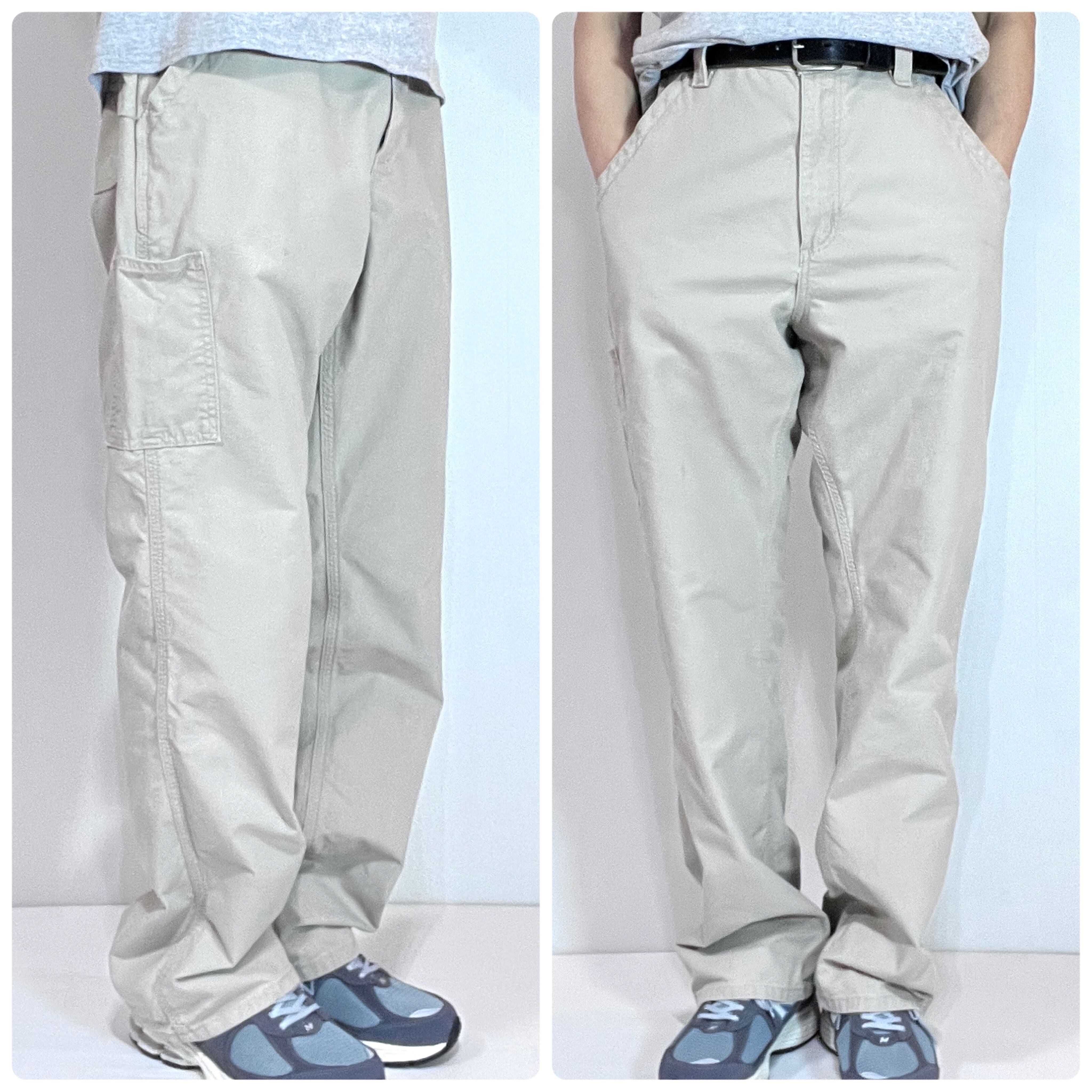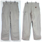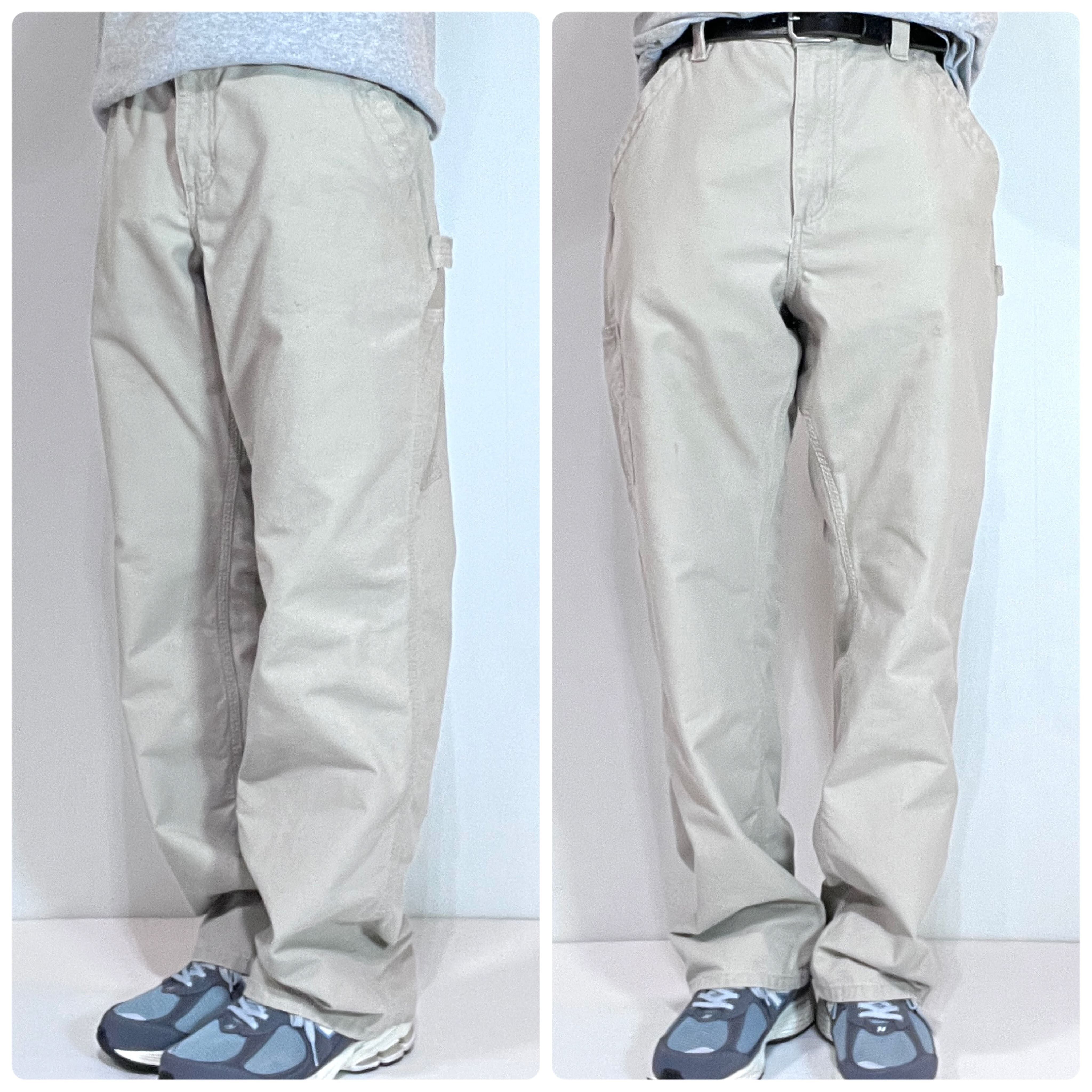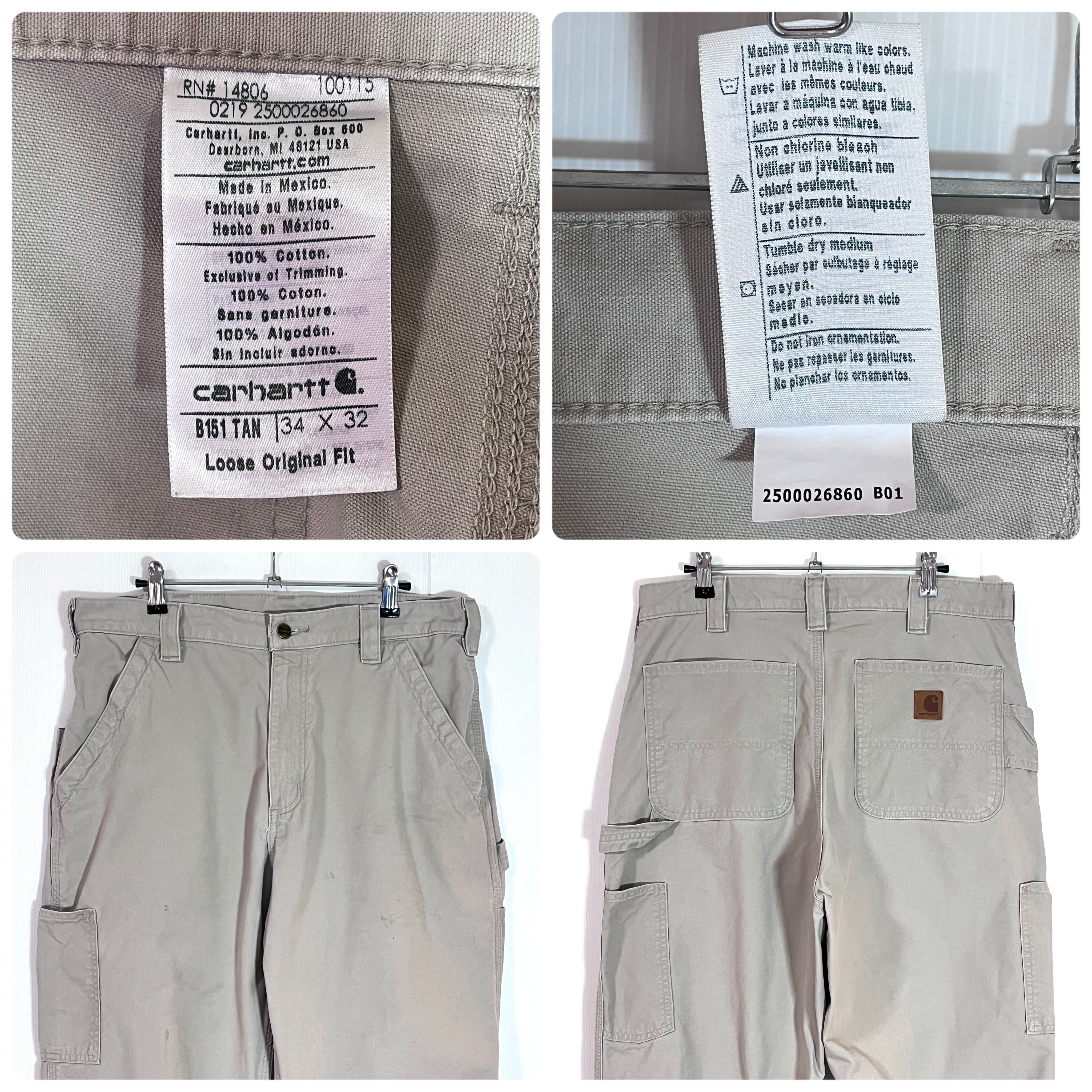 Carhartt カーハート W34 L32 TAN タン サンドベージュ レザーピスネーム ライトオンス ダック地 ペインターパンツ ワークパンツ メンズ ボトムス Loose Original Fit ルーズオリジナルフィット CANVAS WORK DUNGAREE PANTS B151 TAN 10s 2019年2月 メキシコ製 Mexico p25033155