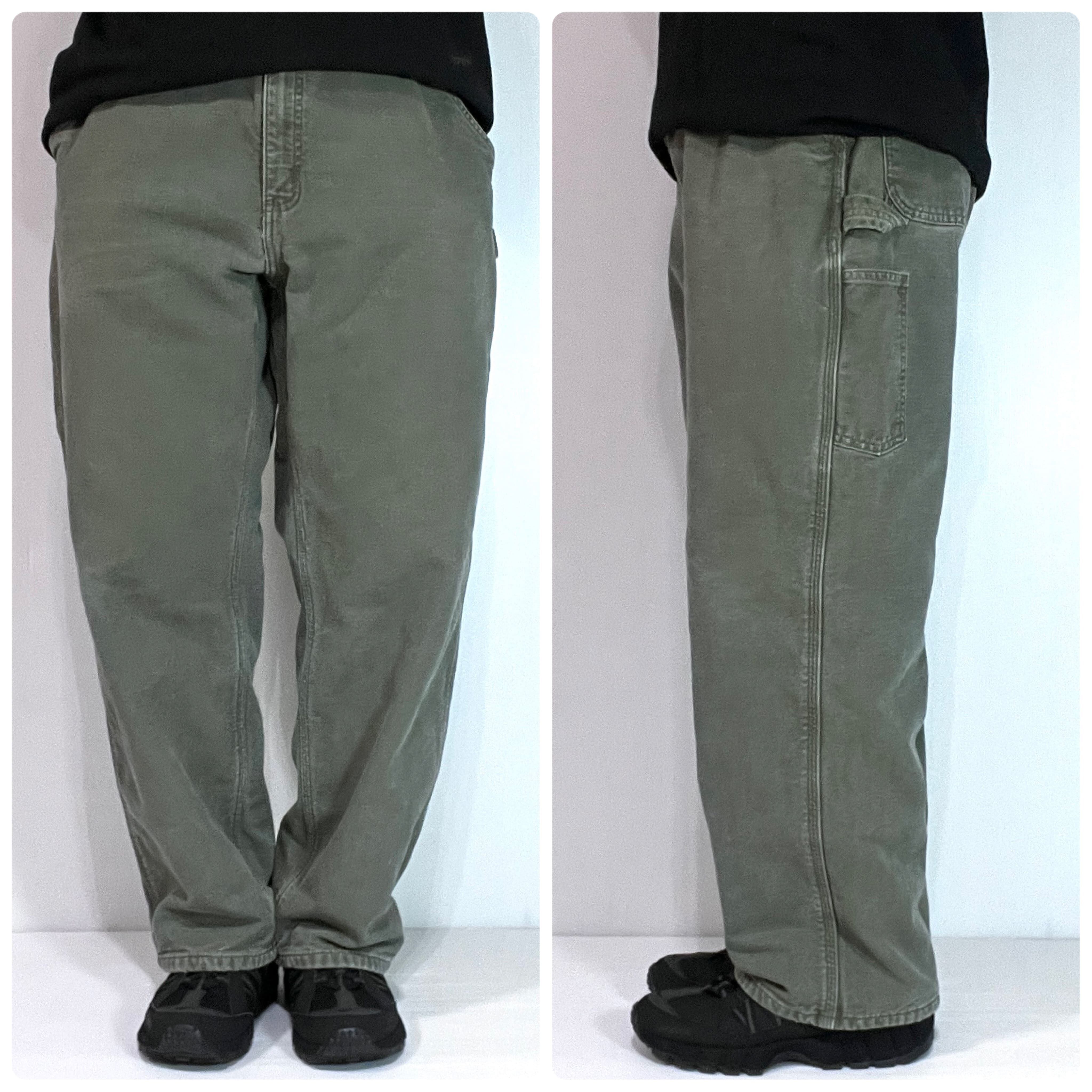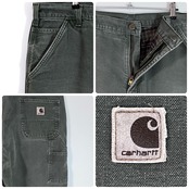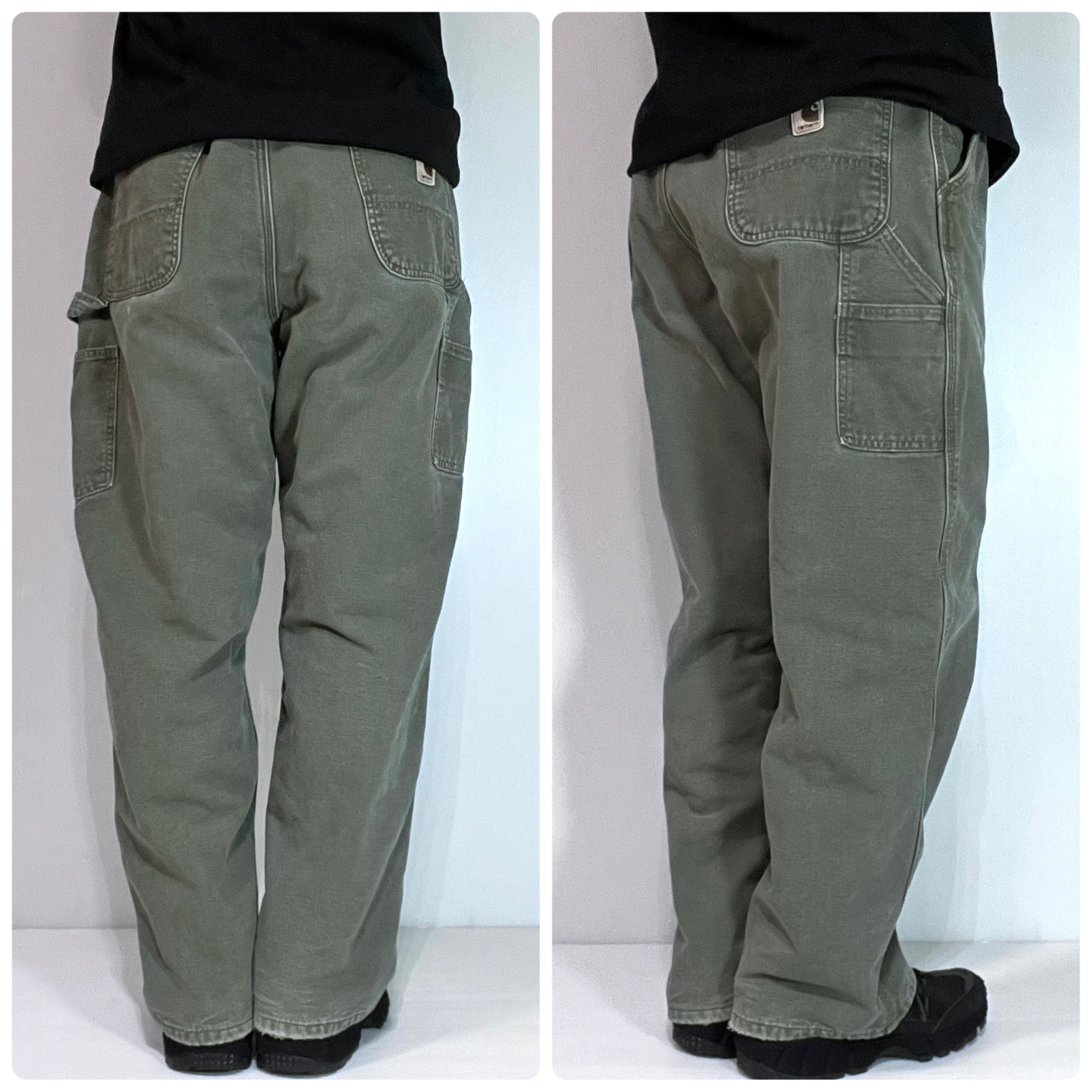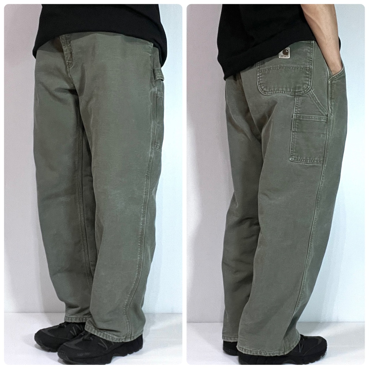 00s Carhartt カーハート W38 L30 MOS モスグリーン カーキ Flannel Liner Duck Painter Pants Dungaree Fit レザーピスネーム レザーパッチ ネルライナー ダック地 ペインターパンツ ダンガリーフィット B11 MOS 0508 2008年5月メキシコ製 made in Mexico グッドフェード リアルワーク レアカラー p25043201