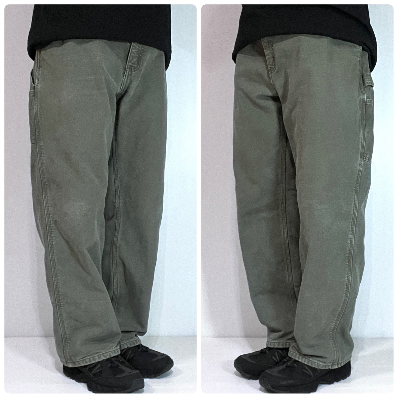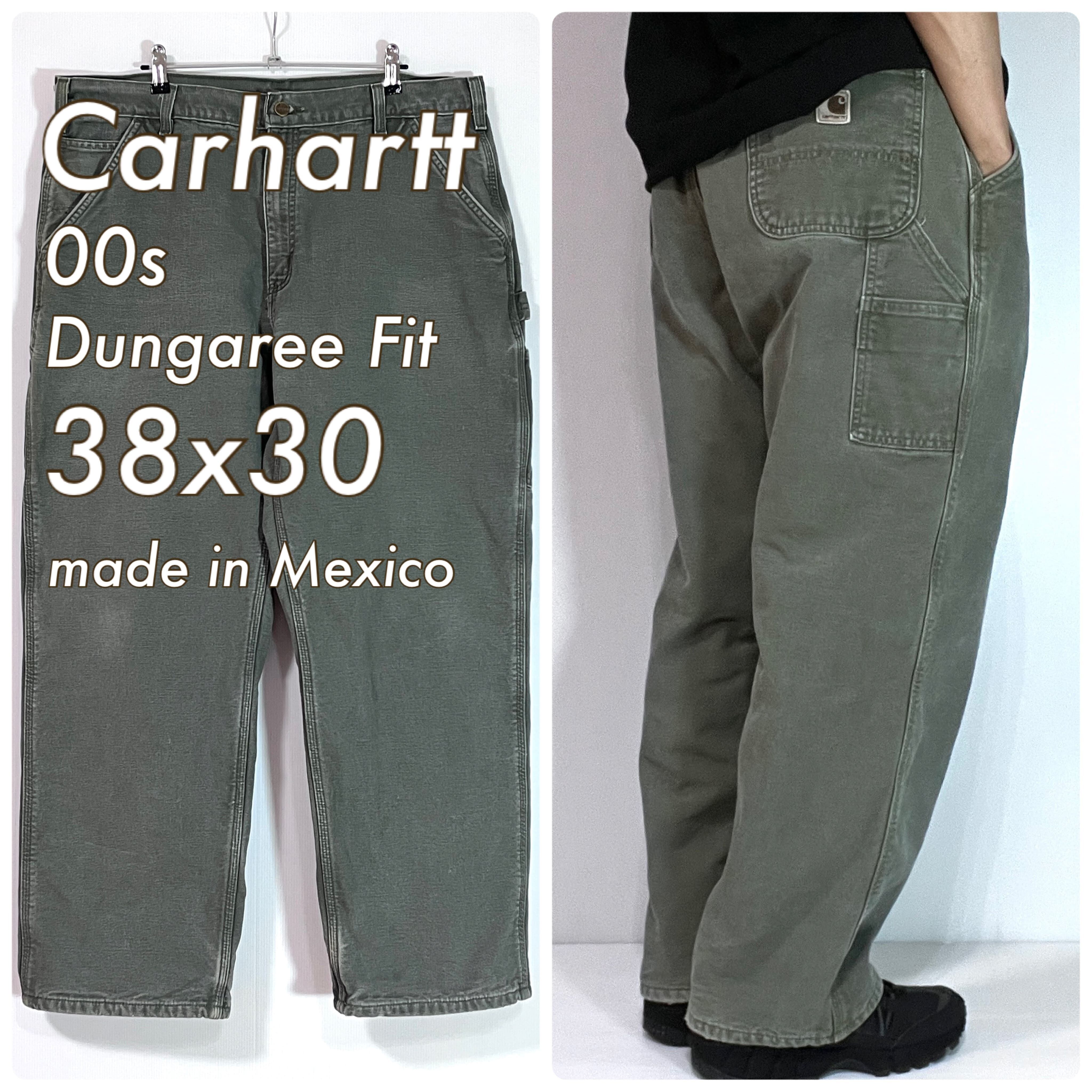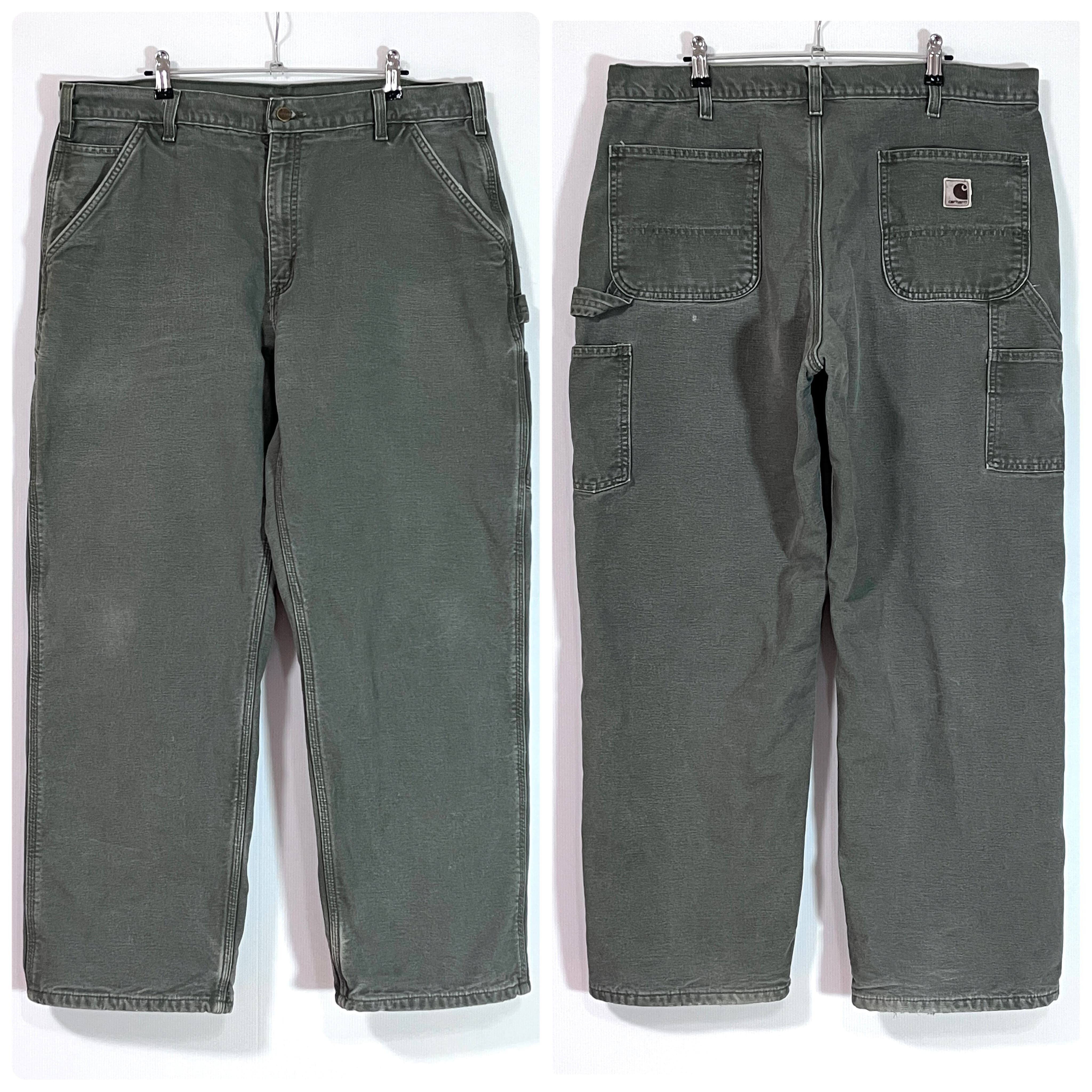 00s Carhartt カーハート W38 L30 MOS モスグリーン カーキ Flannel Liner Duck Painter Pants Dungaree Fit レザーピスネーム レザーパッチ ネルライナー ダック地 ペインターパンツ ダンガリーフィット B11 MOS 0508 2008年5月メキシコ製 made in Mexico グッドフェード リアルワーク レアカラー p25043201