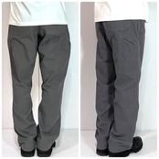 ・ストレッチの効いた柔らかいややライトオンスのダック地で厚手のチノパンくらいの厚みの生地感、通常のダック地よりも春夏に履きやすい生地感です