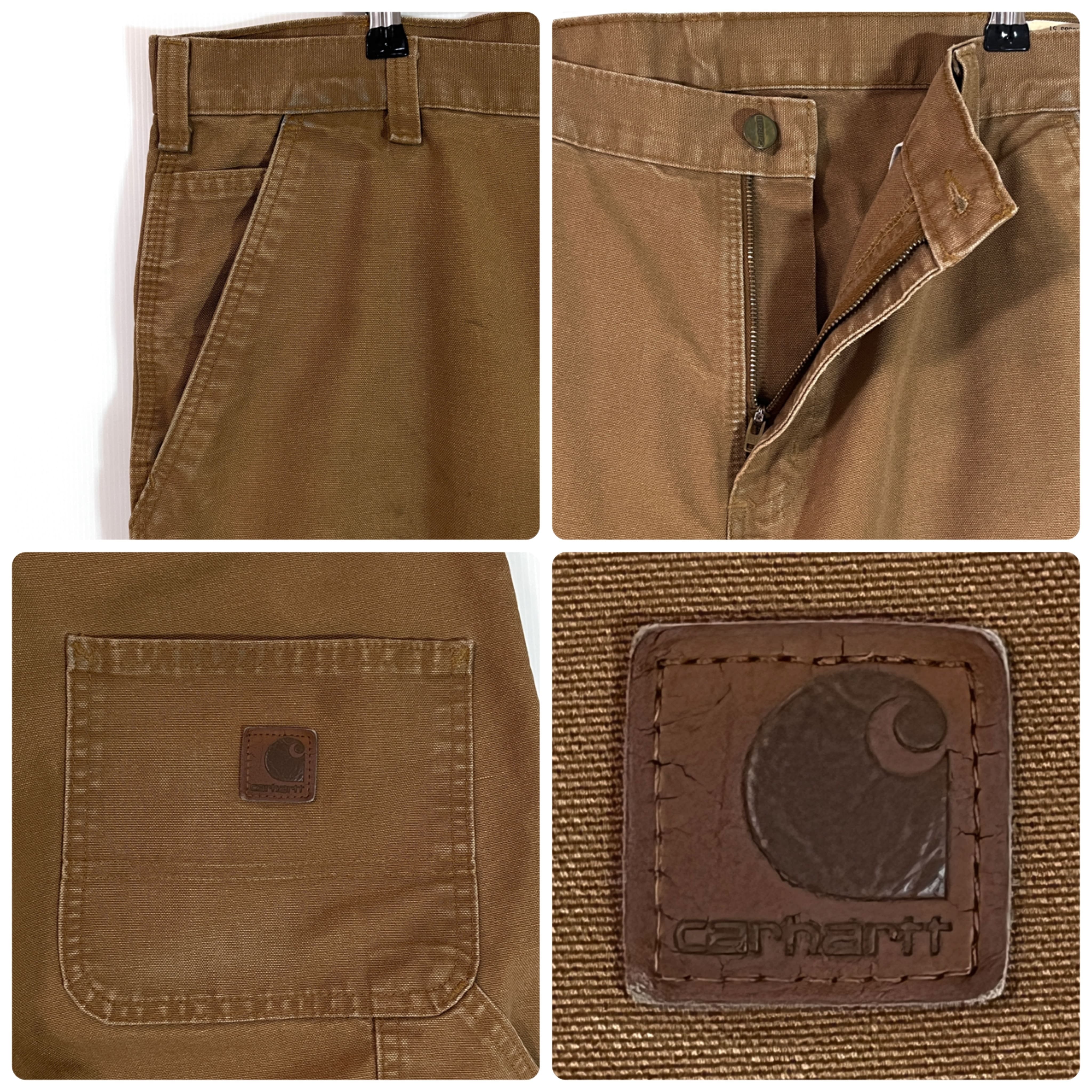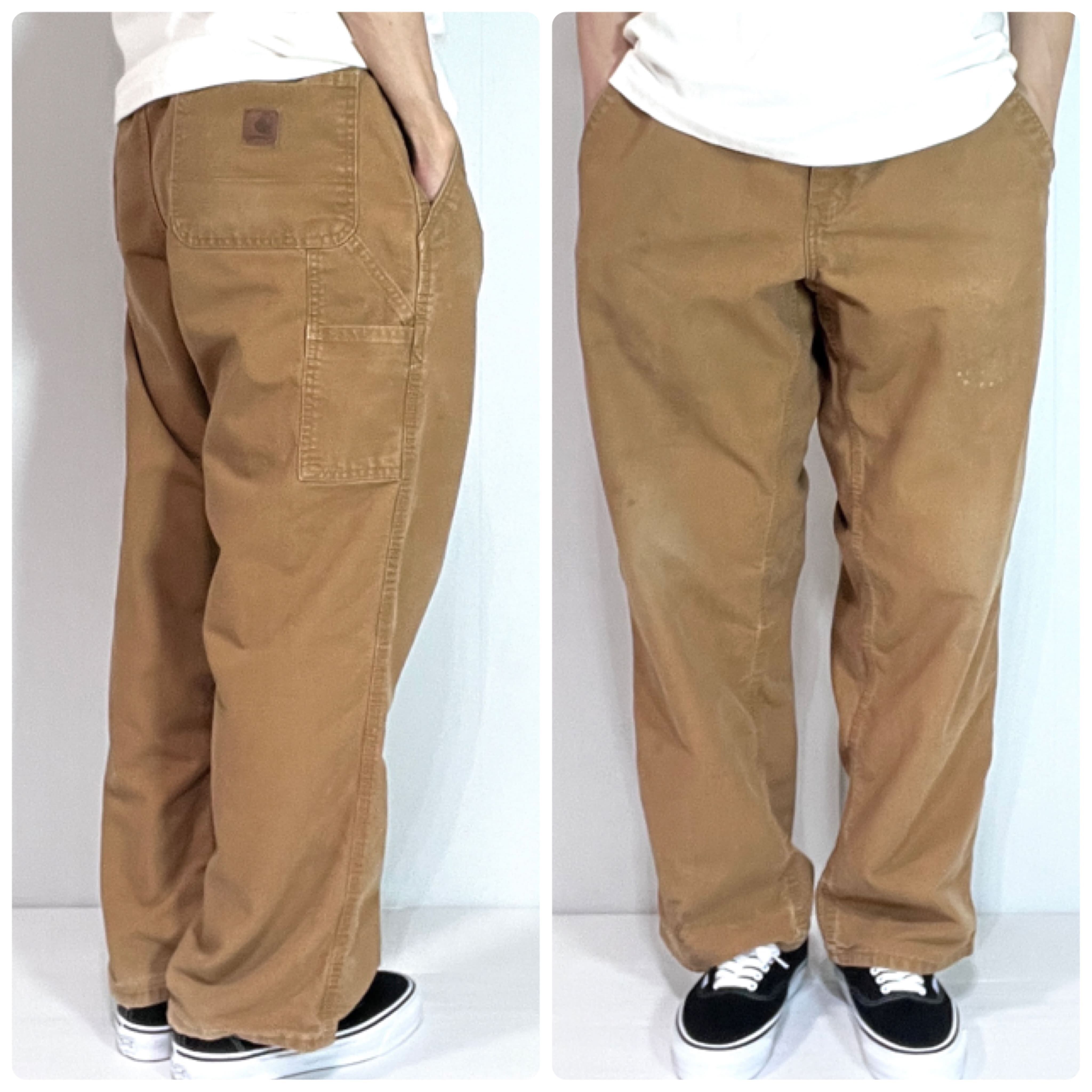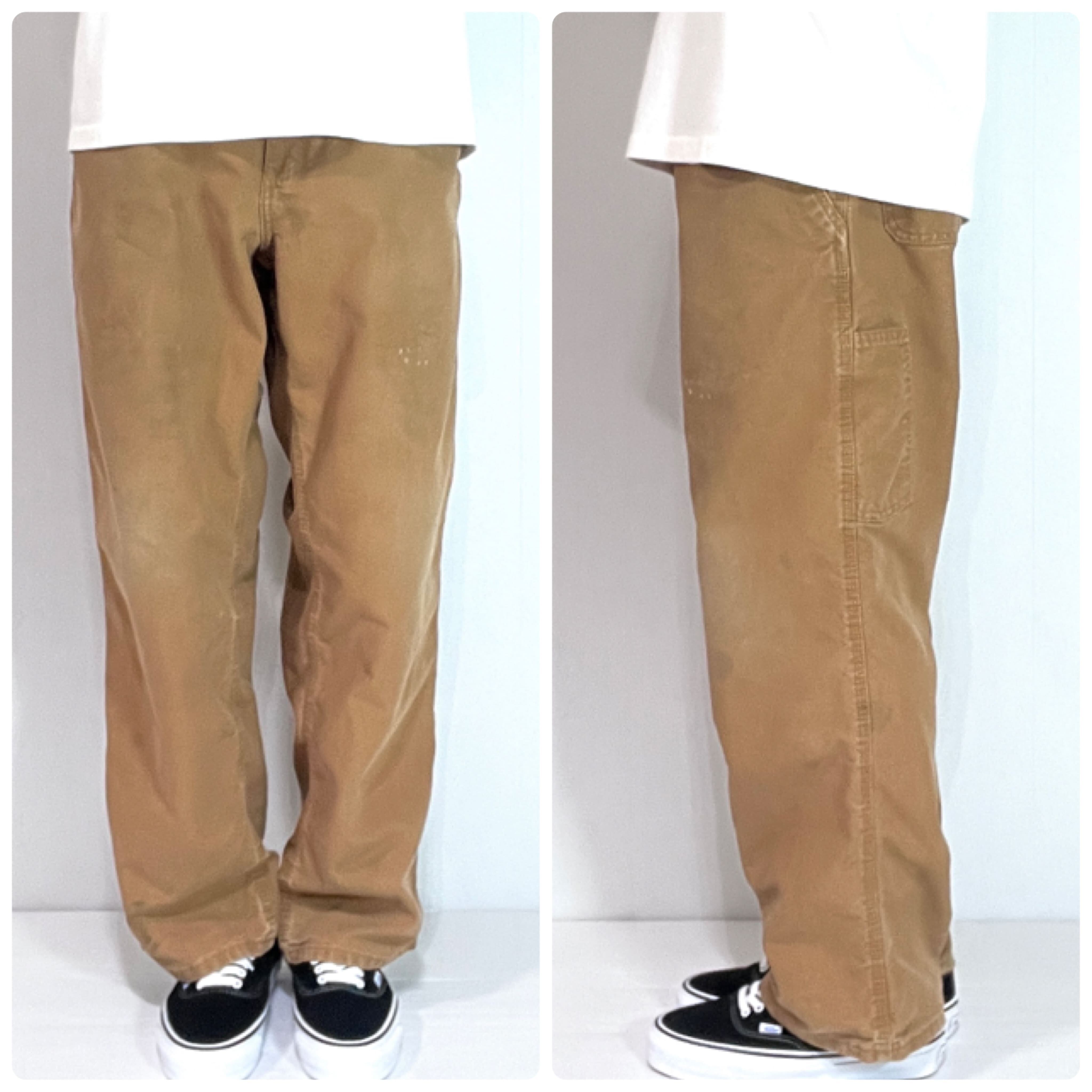 Carhartt カーハート W36 L30 ブラウン BROWN B-25-383-51 BRN COTTON POLYESTER DUCK PAINTER PANTS Dungaree Fit カーハート ワンポイントレザーパッチ レザーピスネーム ダック ペインターパンツ ダンガリーフィット ワークパンツ メンズ ボトムス リアルワーク 雰囲気系 グッドフェード p25073289