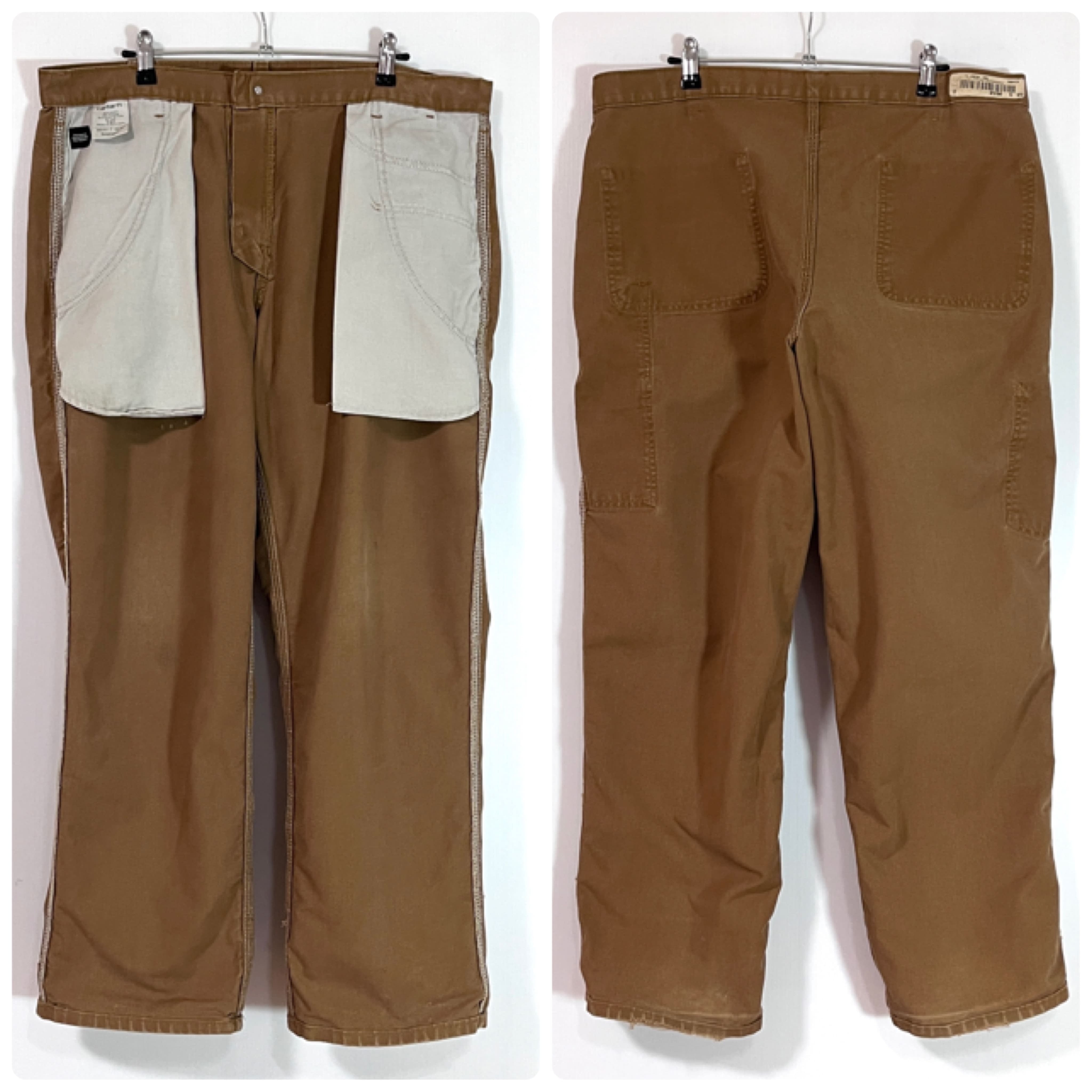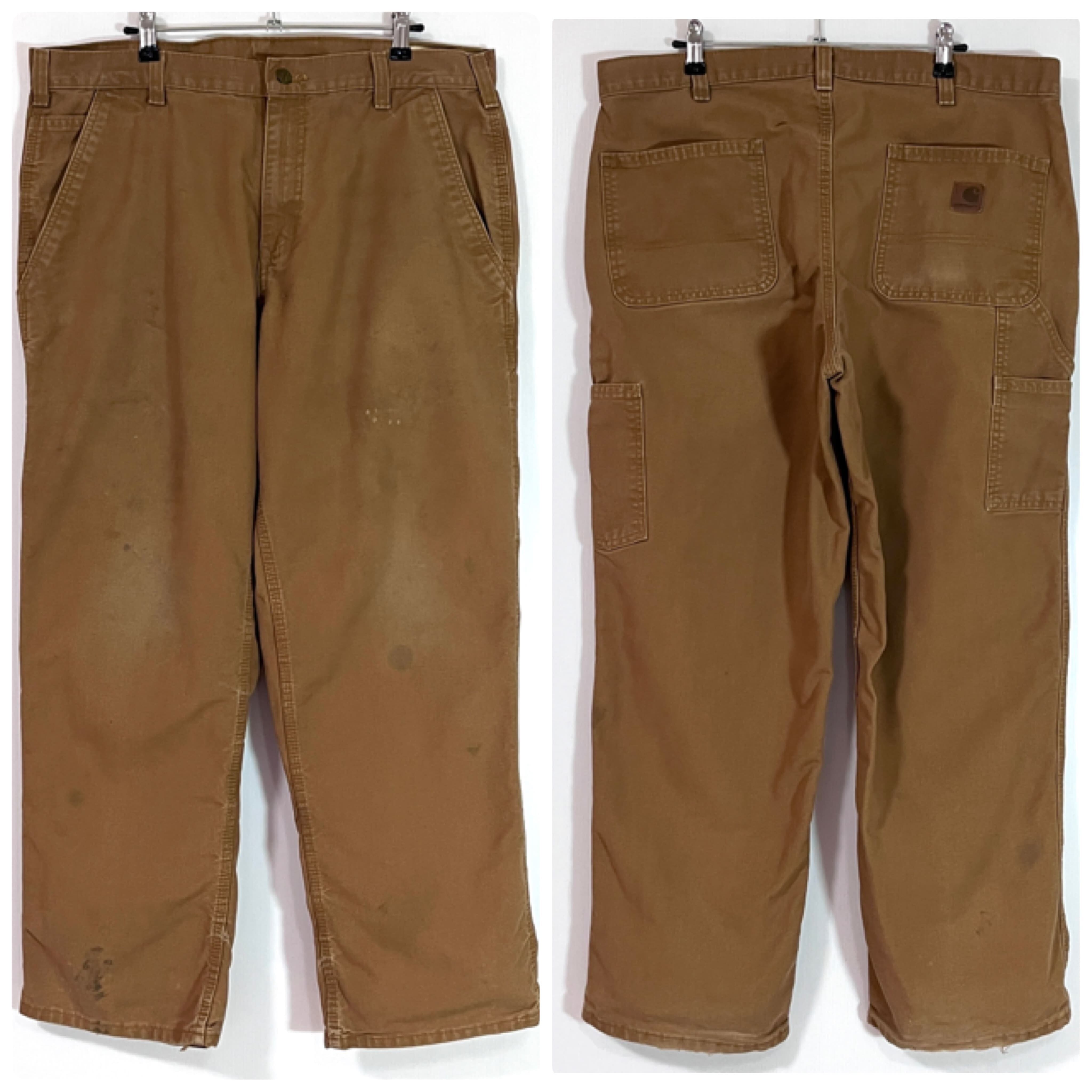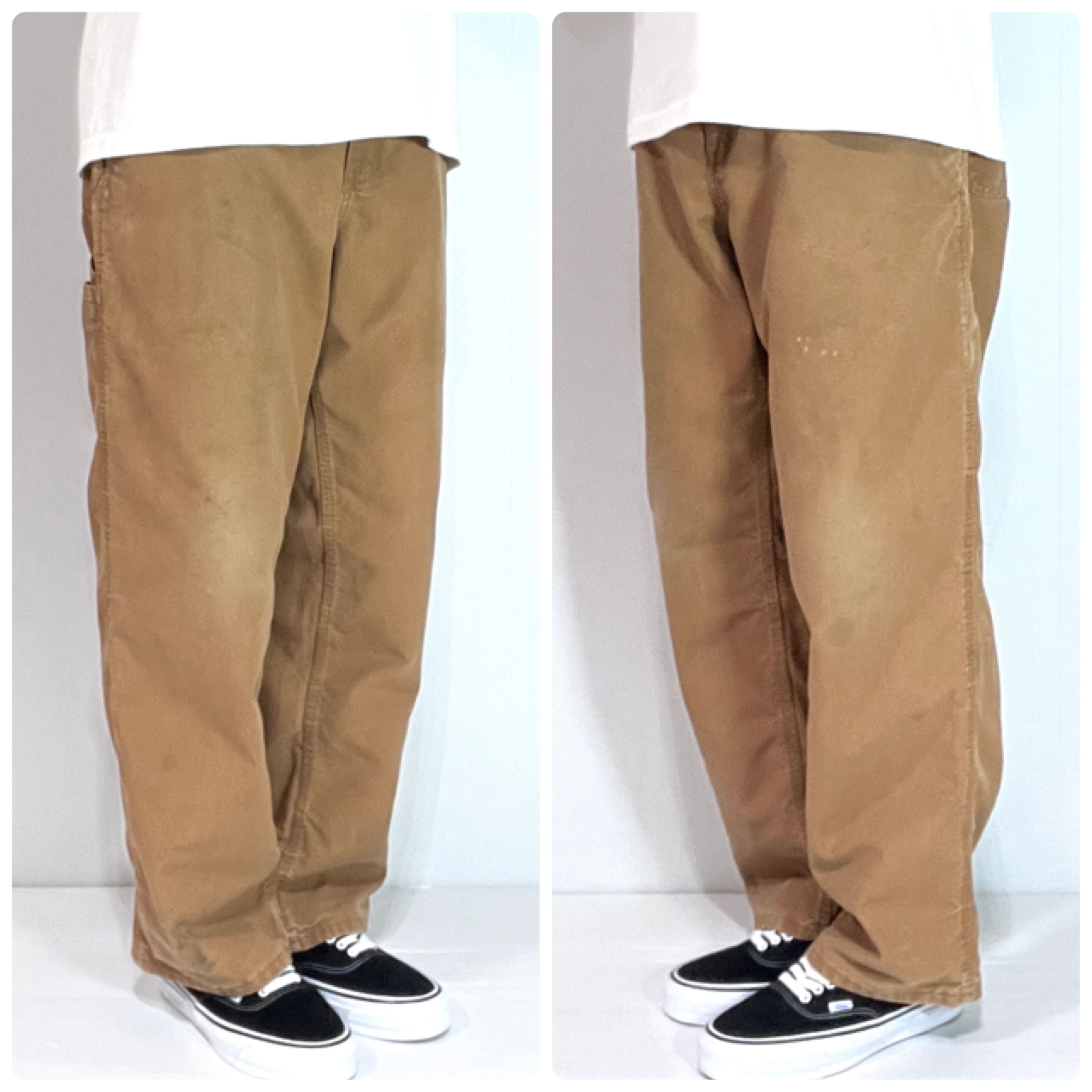 Carhartt カーハート W36 L30 ブラウン BROWN B-25-383-51 BRN COTTON POLYESTER DUCK PAINTER PANTS Dungaree Fit カーハート ワンポイントレザーパッチ レザーピスネーム ダック ペインターパンツ ダンガリーフィット ワークパンツ メンズ ボトムス リアルワーク 雰囲気系 グッドフェード p25073289