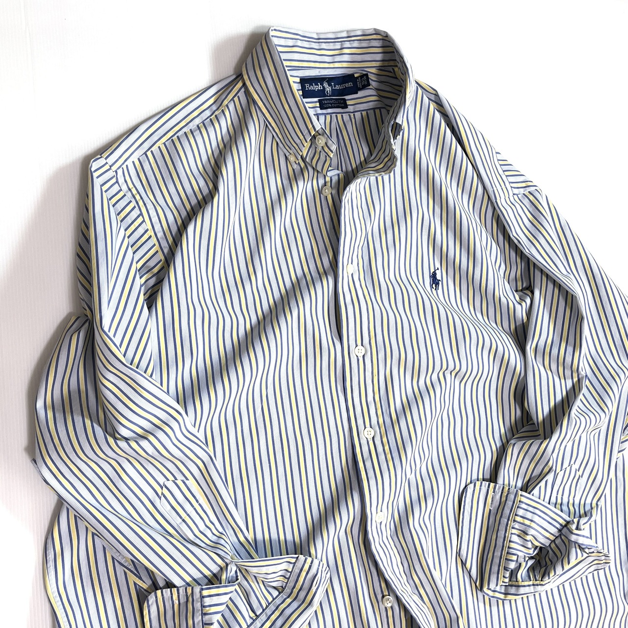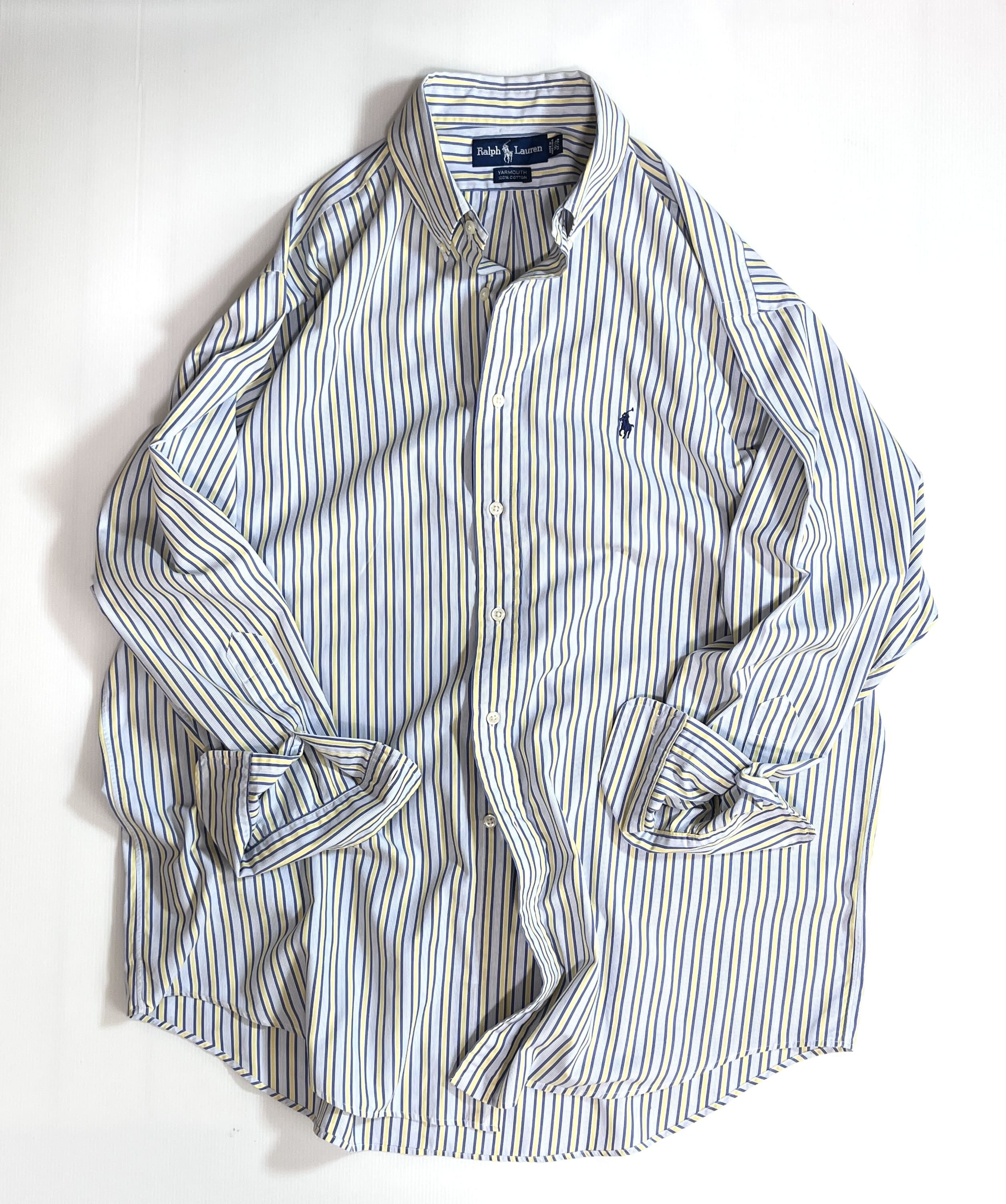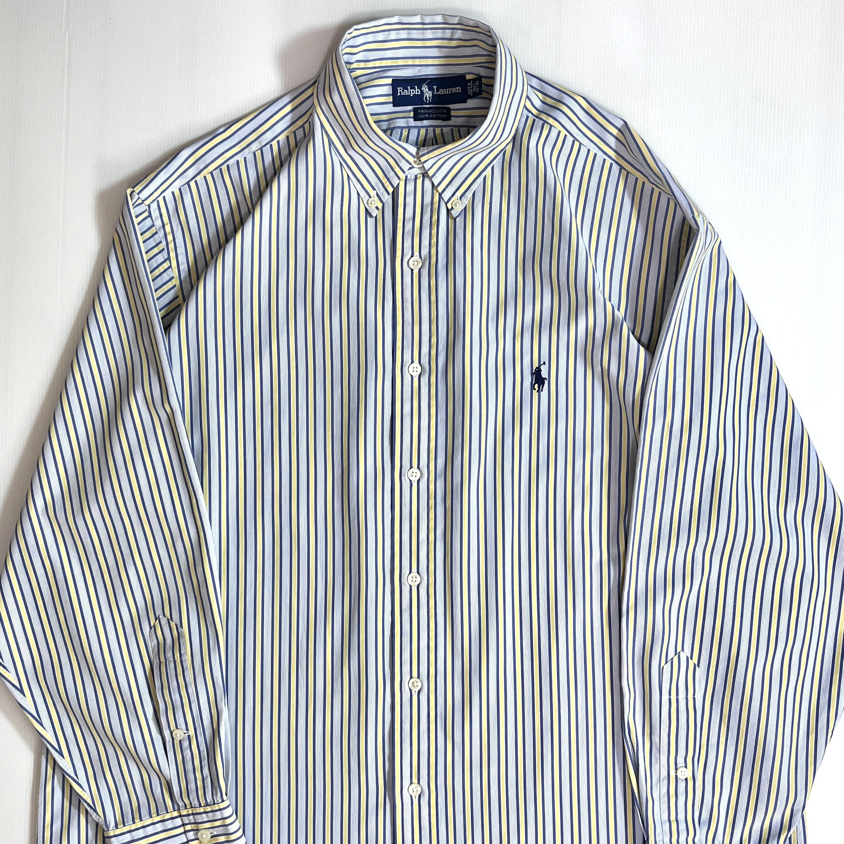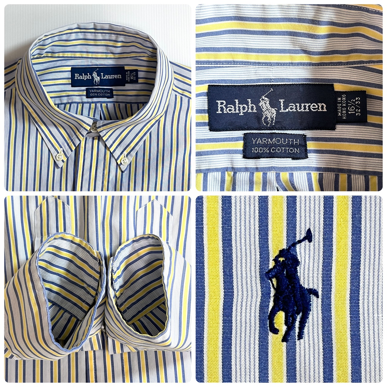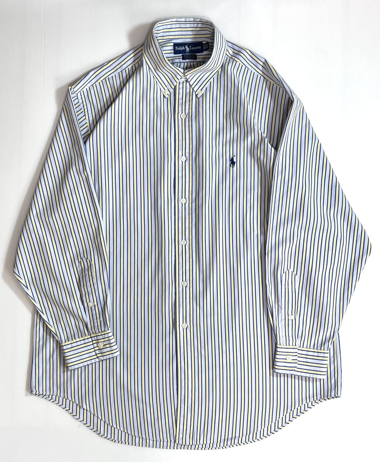 90s Polo Ralph Lauren 16 1/2 32/33 Lサイズ L/S MULTI STRIPE SHIRT YARMOUTH 100% COTTON ポロ ラルフローレン ワンポイント ポニー刺繍ロゴ マルチストライプ 長袖 ボタンダウンシャツ BDシャツ トップス カットソー メンズ トップス オックスフォード 長袖シャツ 香港製 神サイズ 好配色 ライトブルー レモンイエロー ホワイト p25073311 | June