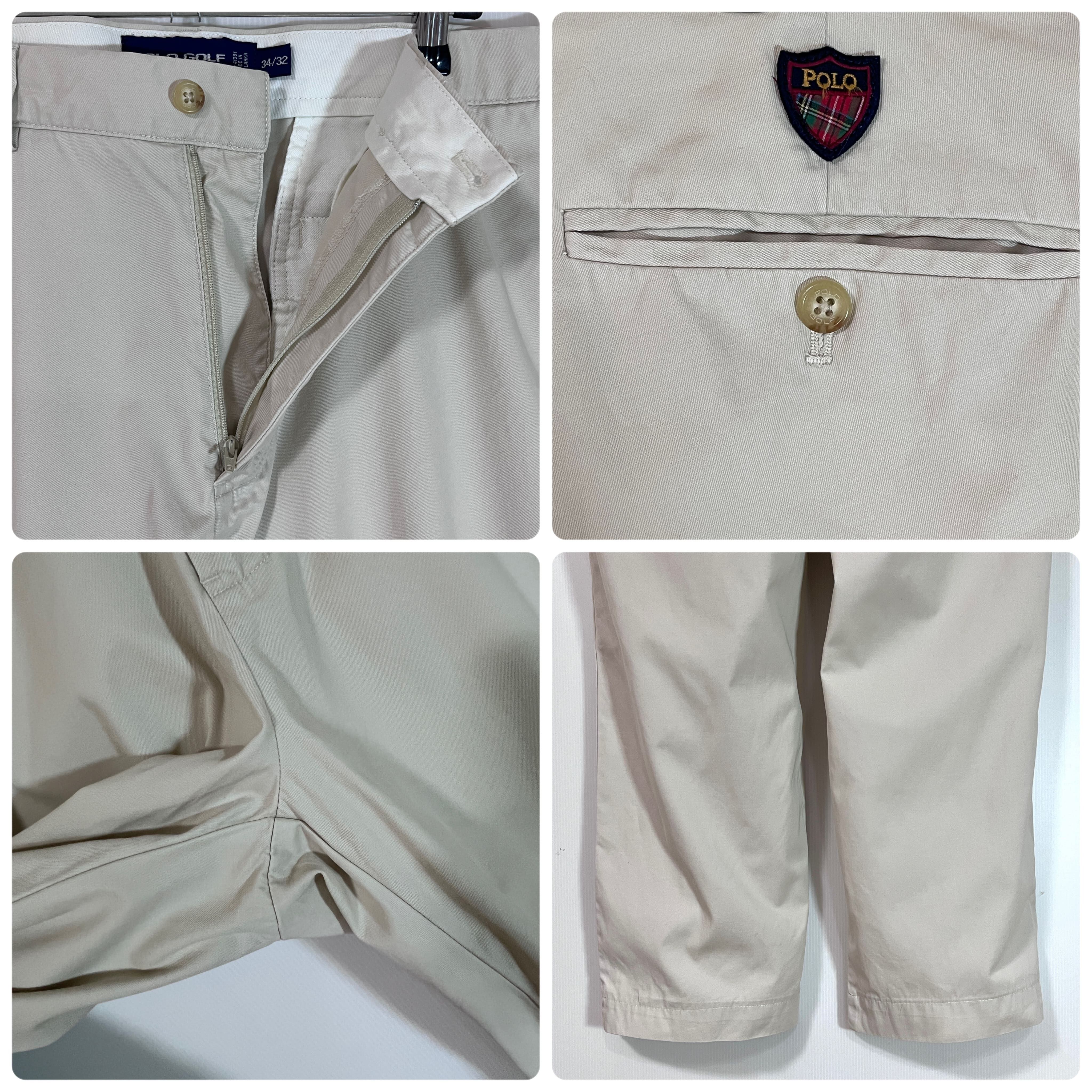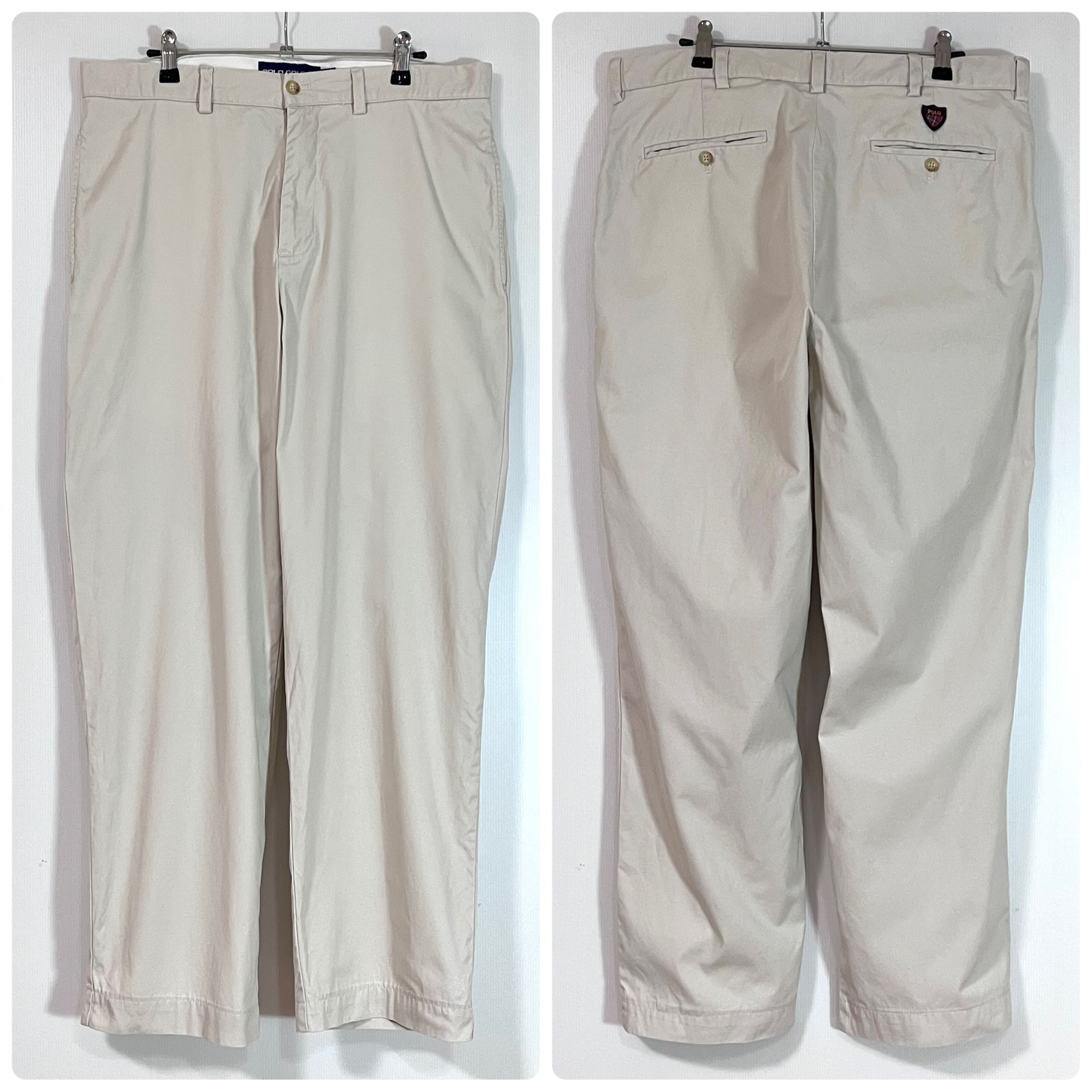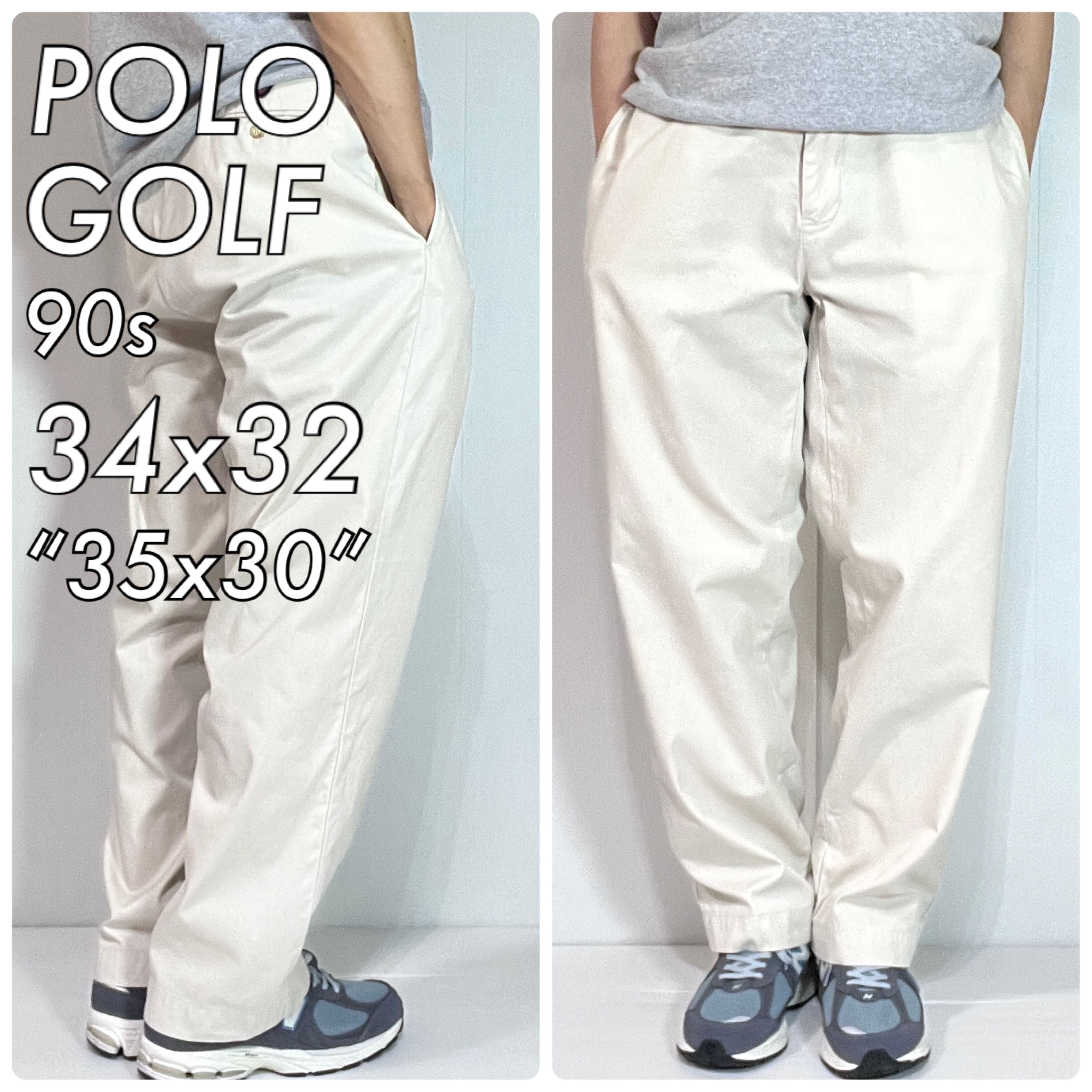 90s POLO GOLF W34 L32 実寸W35 L30 Ralph Lauren WALKER GOLF PANT ポロゴルフ ラルフローレン エンブレムワッペン刺繡ロゴ ノータック チノパン スラックス パンツ ウォーカーゴルフパンツ ワイドパンツ メンズ ボトムス ポロチノ クラシックチノ アイボリー ライトベージュ ゴールデンサイズ p25073294