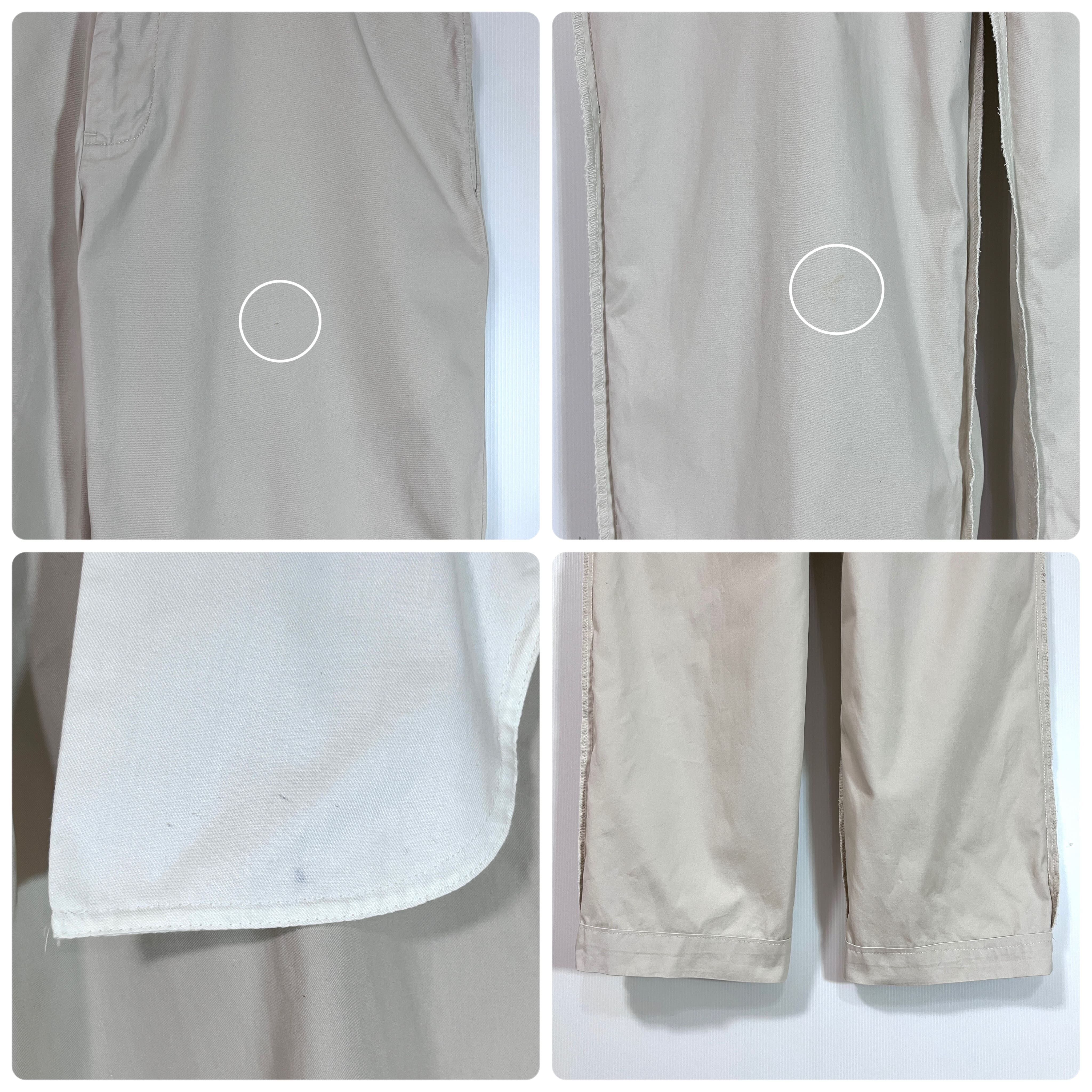 ・YKKフロントジップ、ワッペン刺繍ロゴ、玉縁のバックポケットのヴィンテージディテール、オフホワイトに近いナチュラルカラーのアイボリー