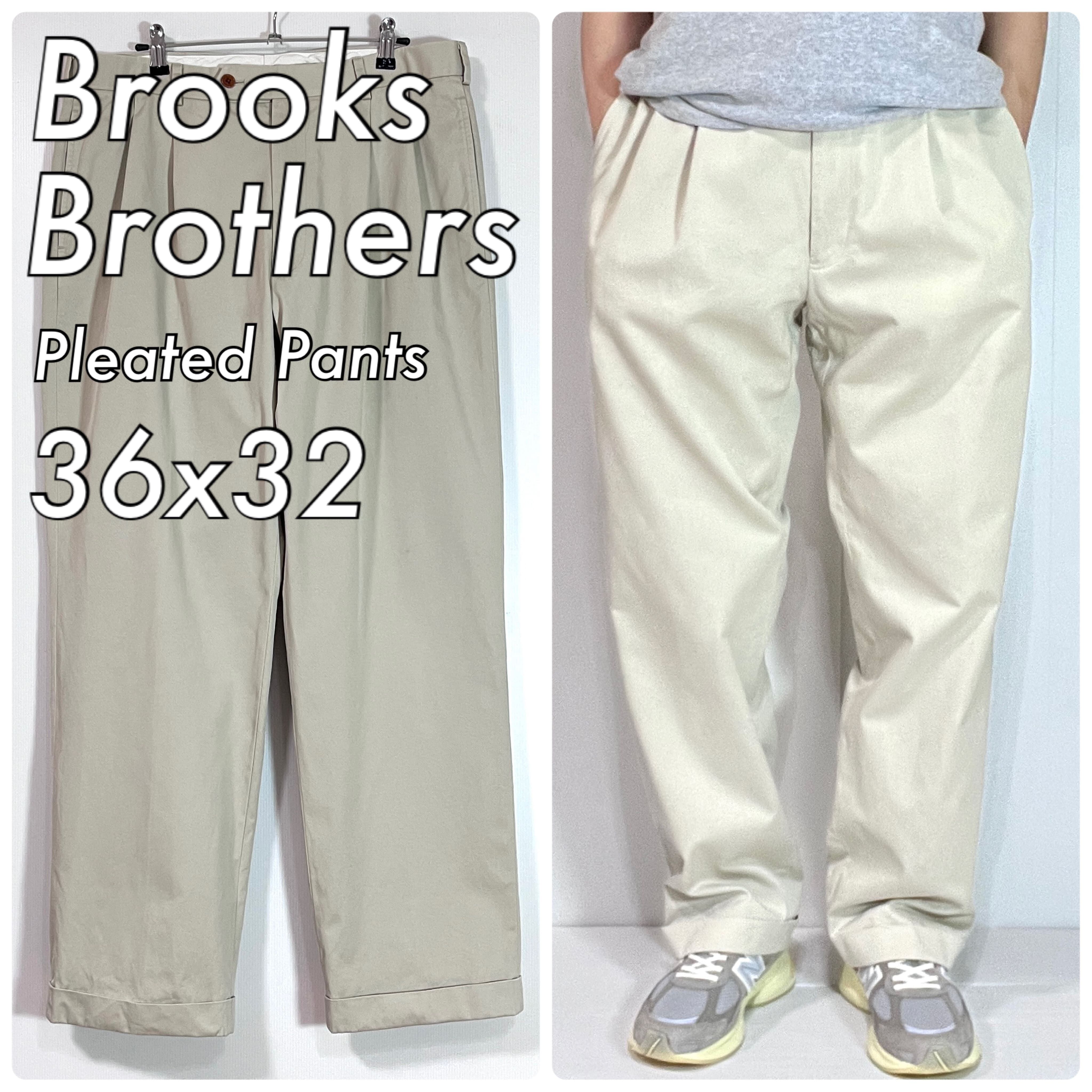 Brooks Brothers W36 L32 ライトベージュ LIGHT BIEGE ブルックスブラザーズ COTTON PLEATED PANTS アウトプリーツ プリーテッド ツータック チノパン スラックス メンズ ボトムス ワイドパンツ ワイドスラックス p25073293