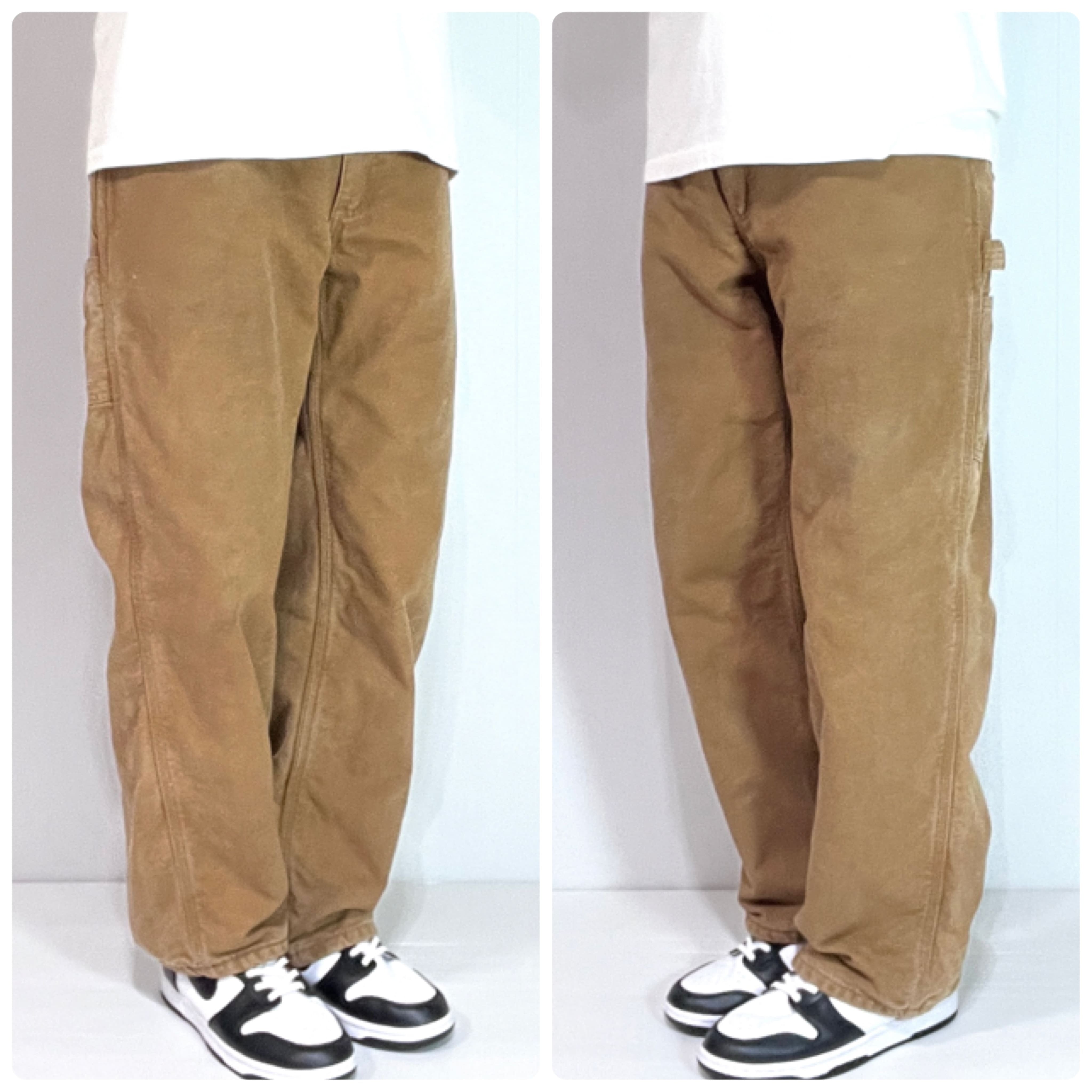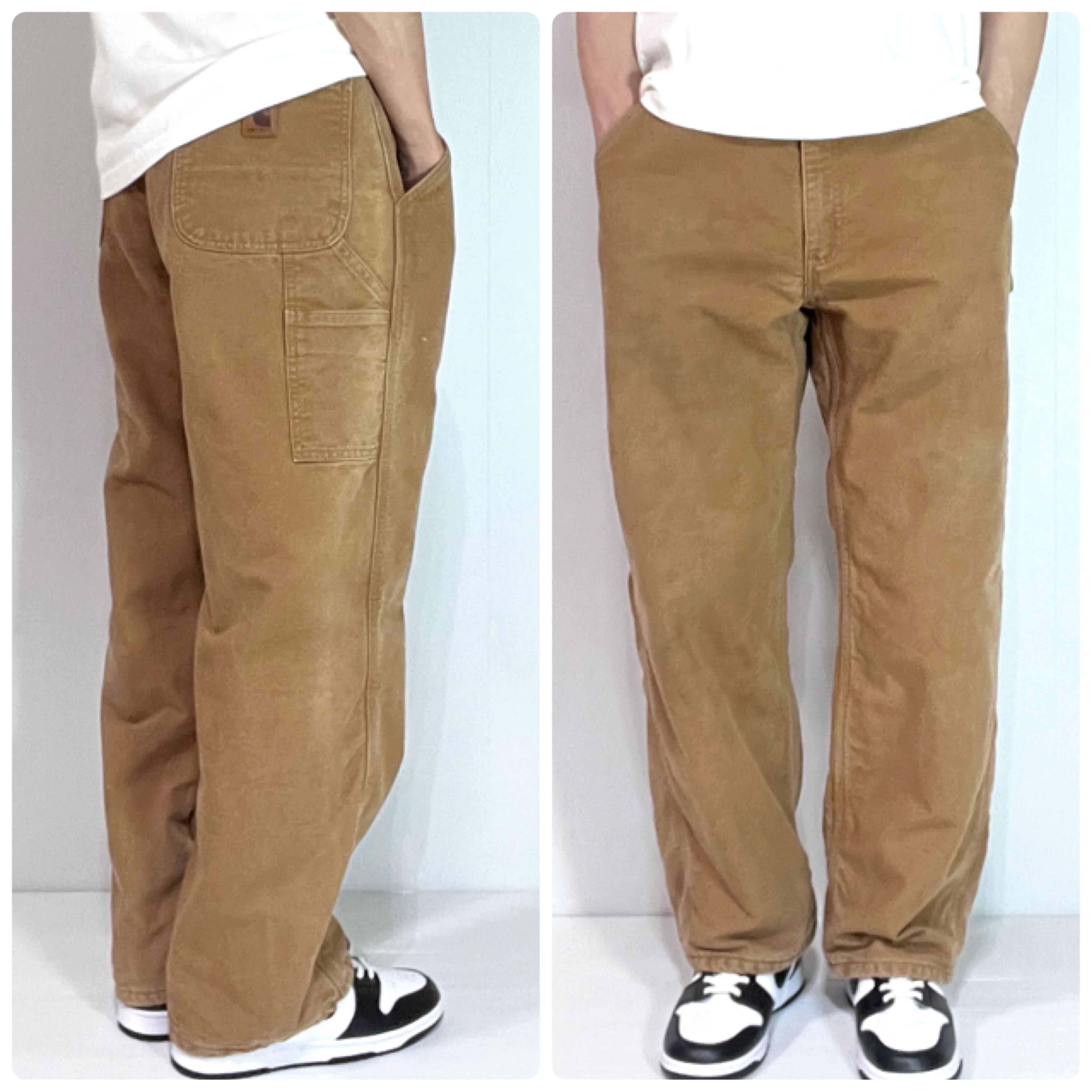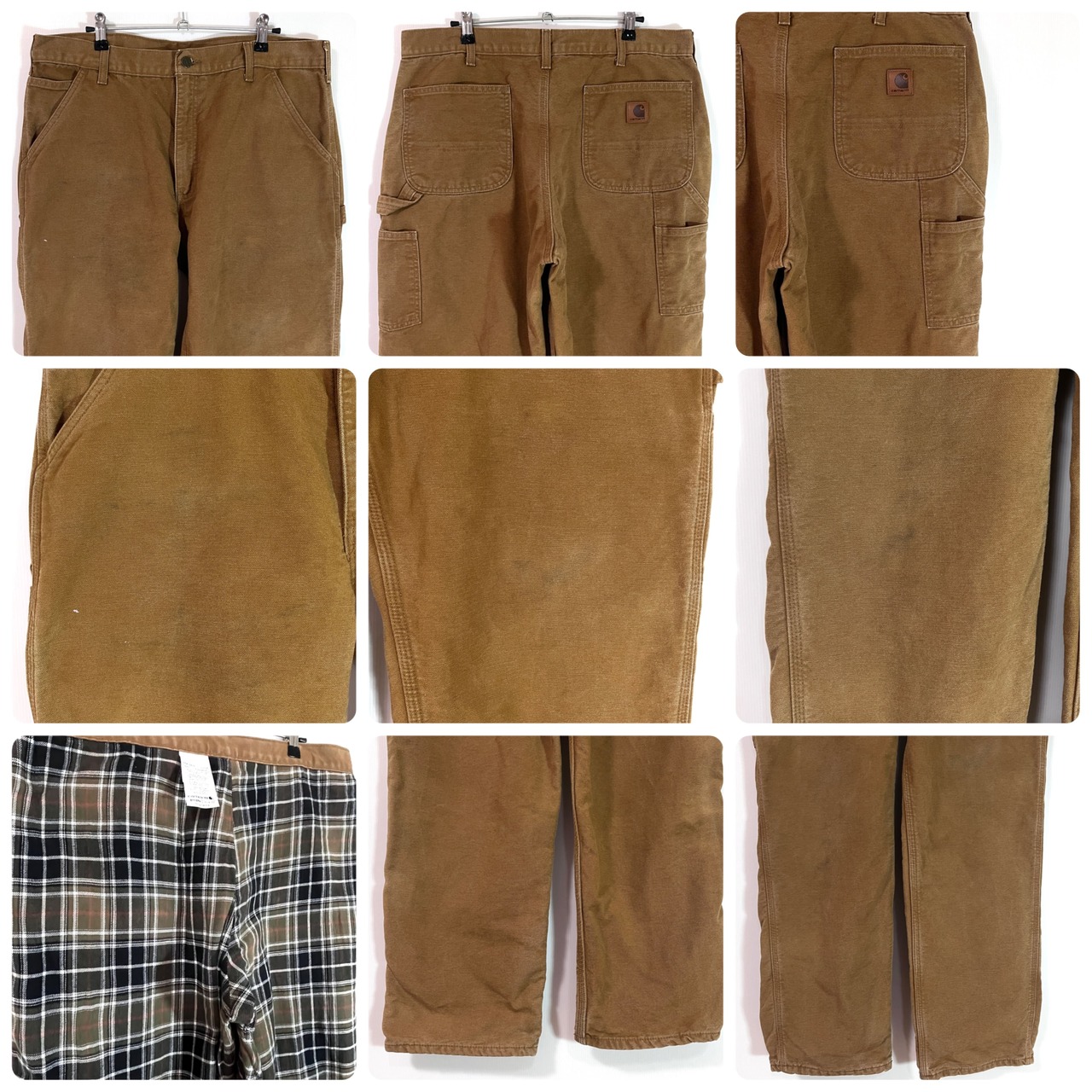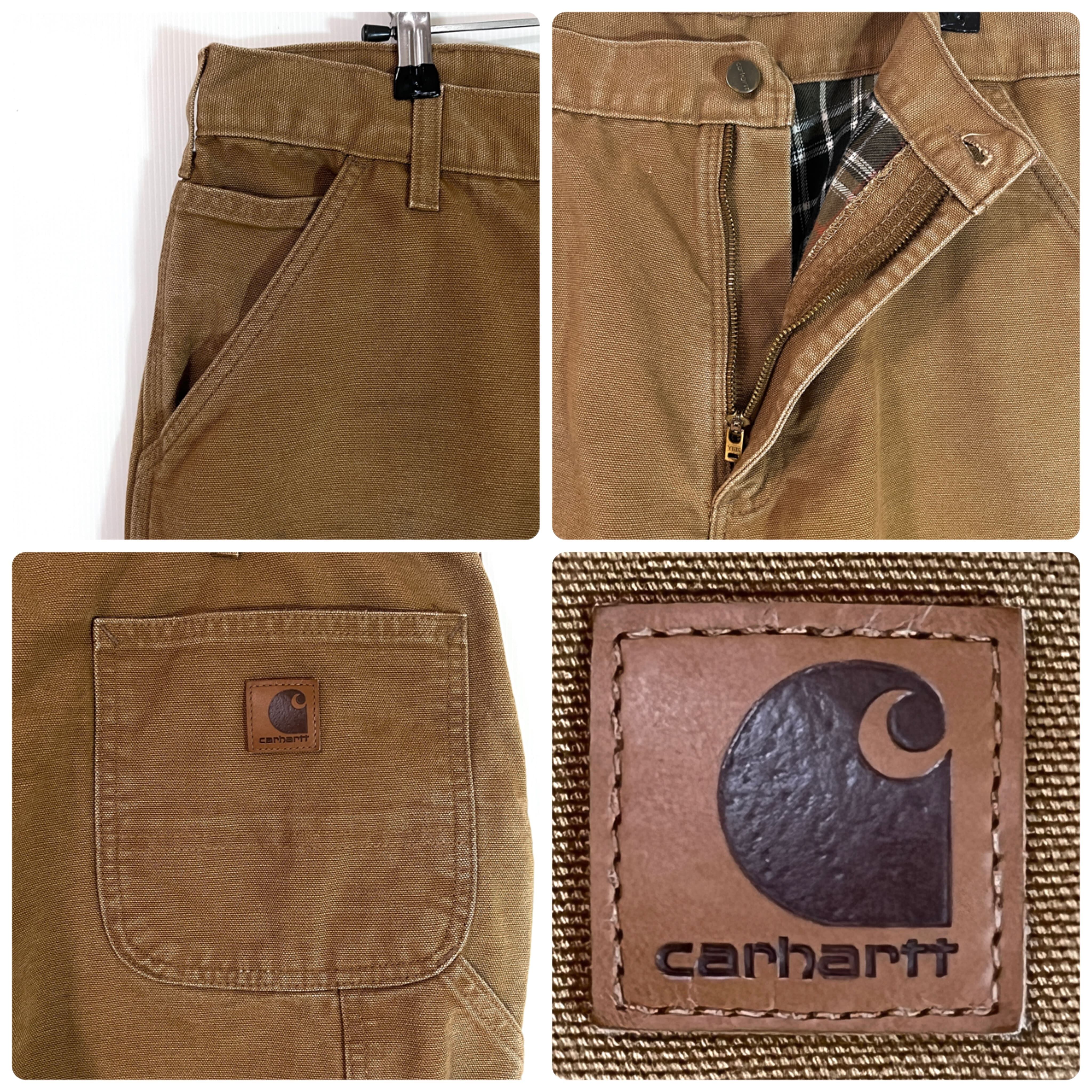 Carhartt カーハート W36 L30 B111-BRN 1017 HEAVY COTTON CANVAS DUCK FLANNEL LINED PAINTER PANTS ORIGINAL FIT ヘビー ダック地 チェック フランネル ネルライナー ペインターパンツ オリジナルフィット ワークパンツ ゴールデンサイズ ネル裏地付き 36x30 ブラウン p25073288