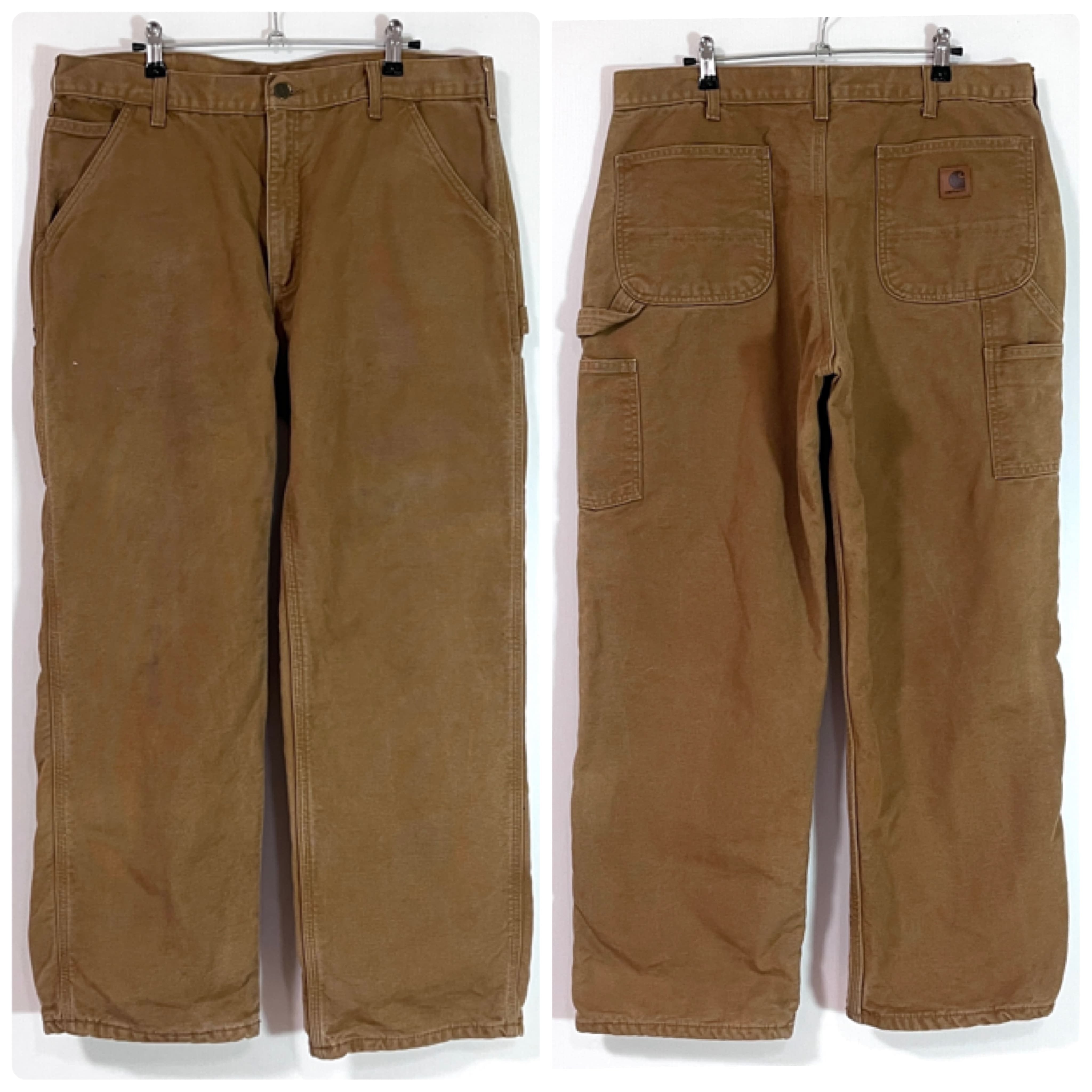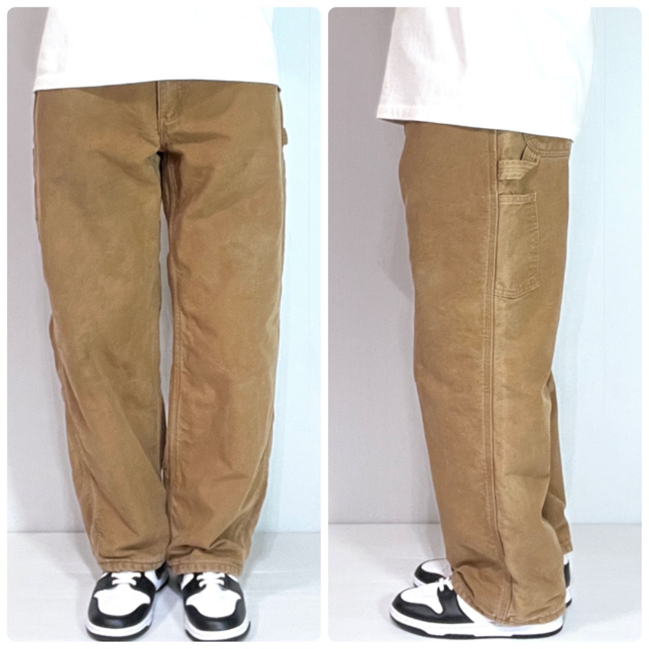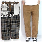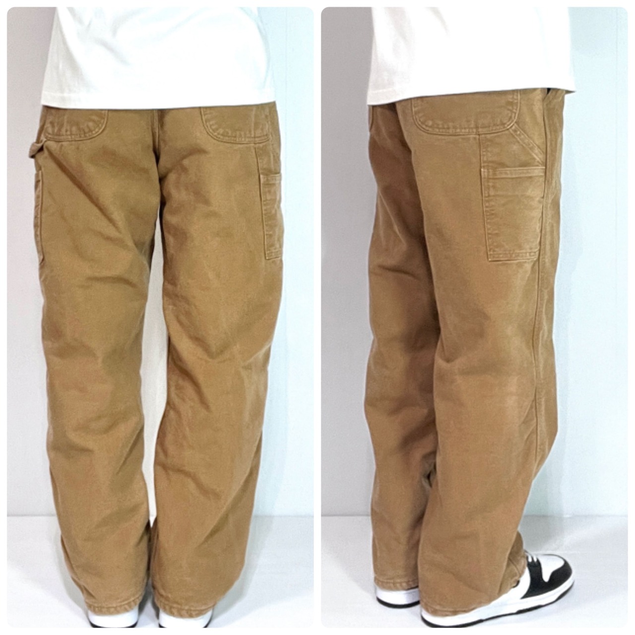 Carhartt カーハート W36 L30 B111-BRN 1017 HEAVY COTTON CANVAS DUCK FLANNEL LINED PAINTER PANTS ORIGINAL FIT ヘビー ダック地 チェック フランネル ネルライナー ペインターパンツ オリジナルフィット ワークパンツ ゴールデンサイズ ネル裏地付き 36x30 ブラウン p25073288