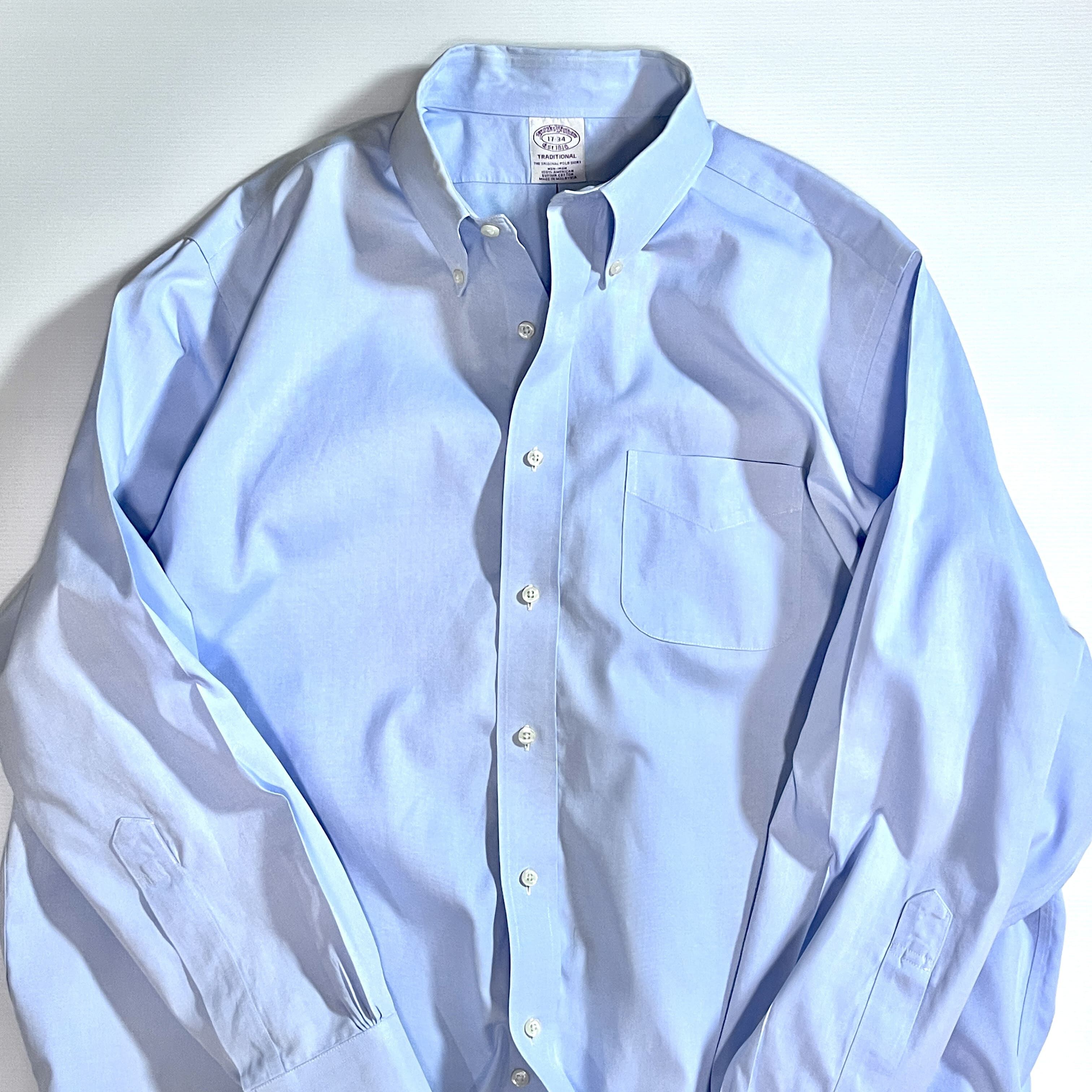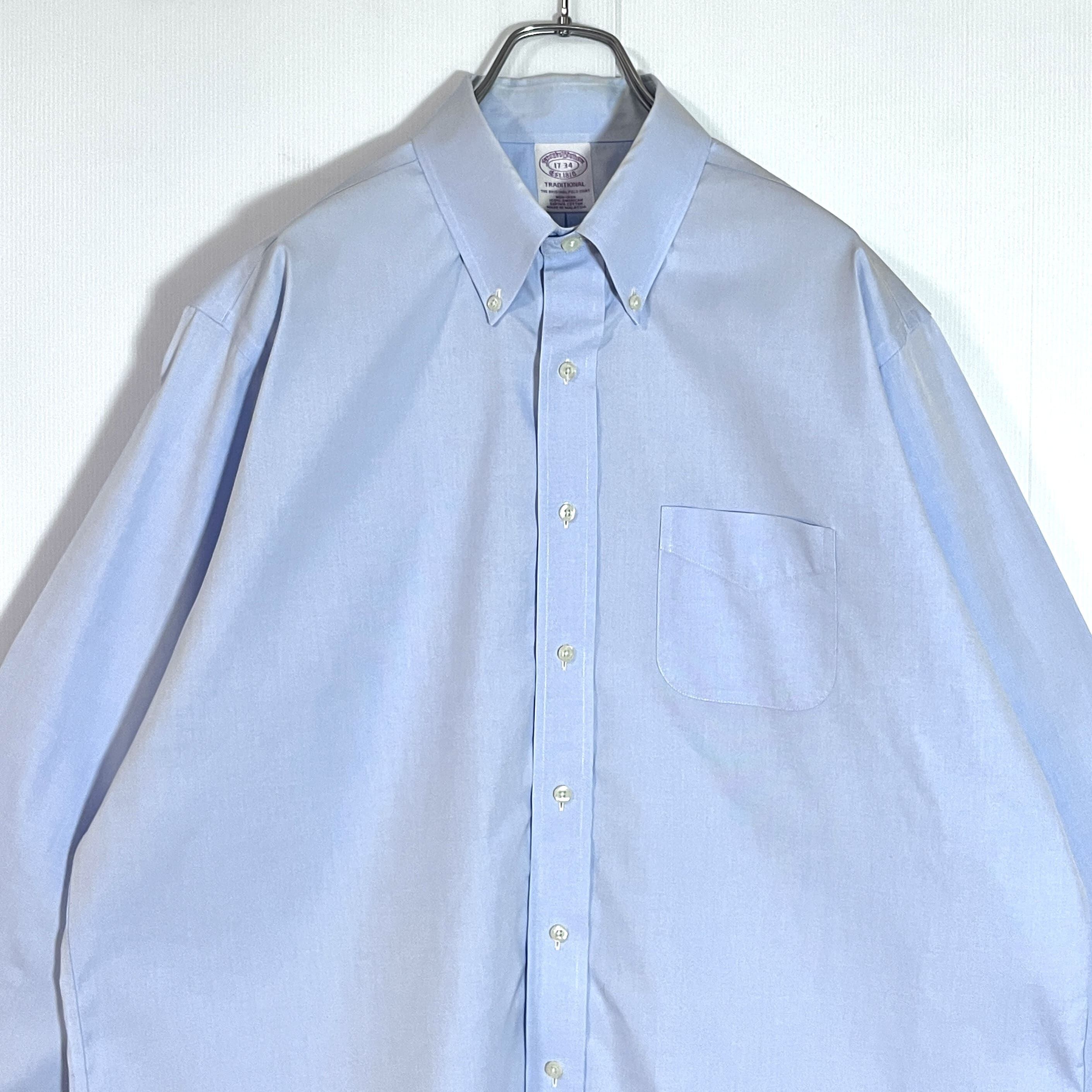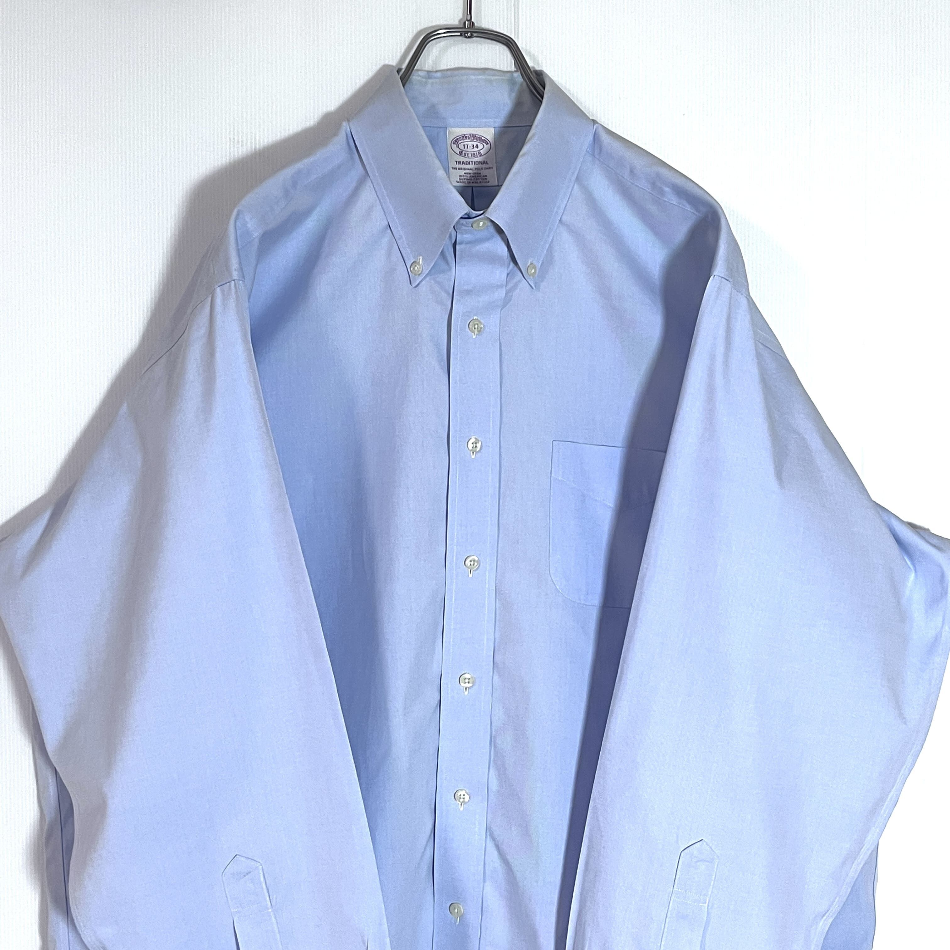 Brooks Brothers ブルックスブラザーズ 17 34 XL 水色 サックスブルー TRADITIONAL THE ORIGINAL ノンアイロン アメリカン スーピマコットン 無地 ポケット 長袖ボタンダウンシャツ BDシャツ v24063313