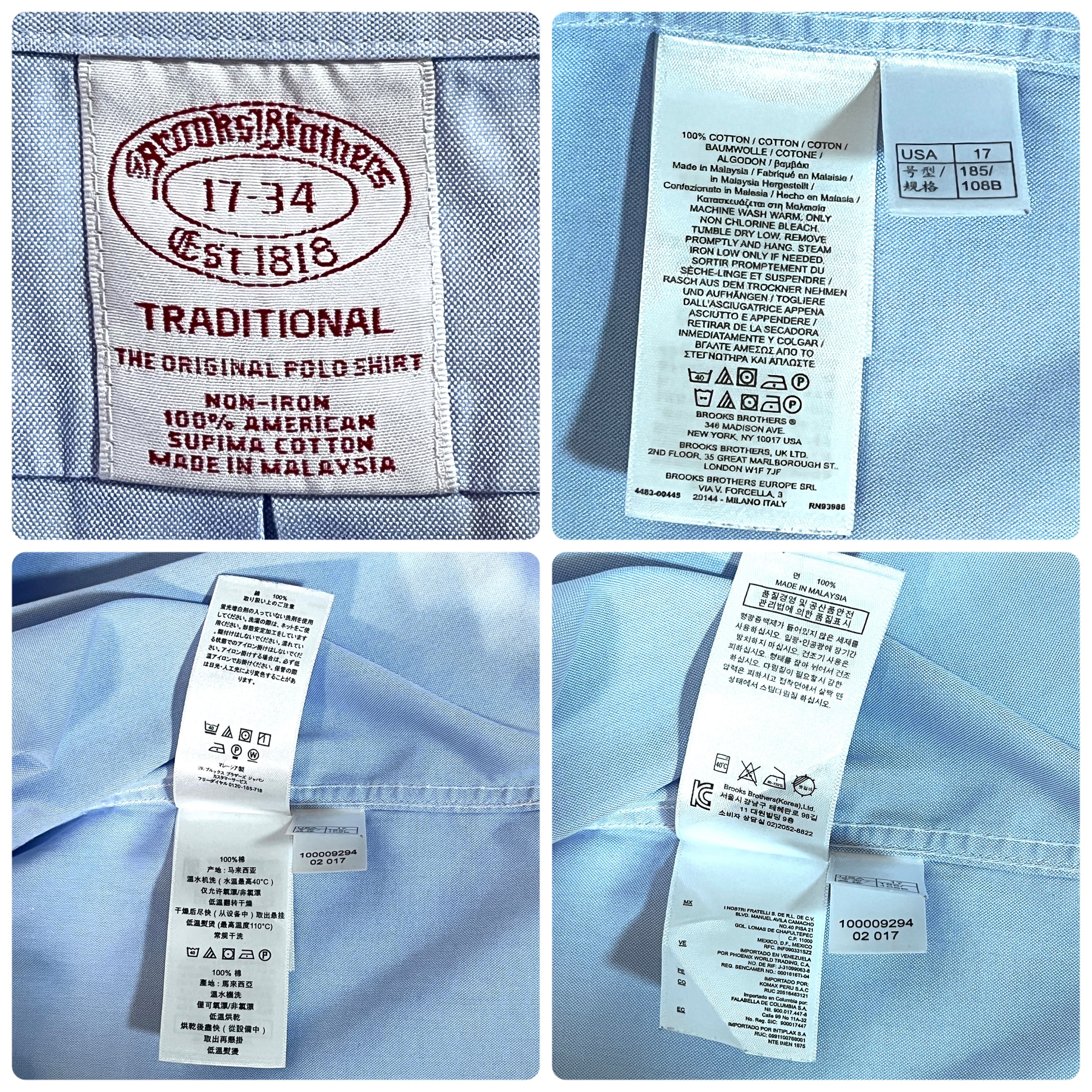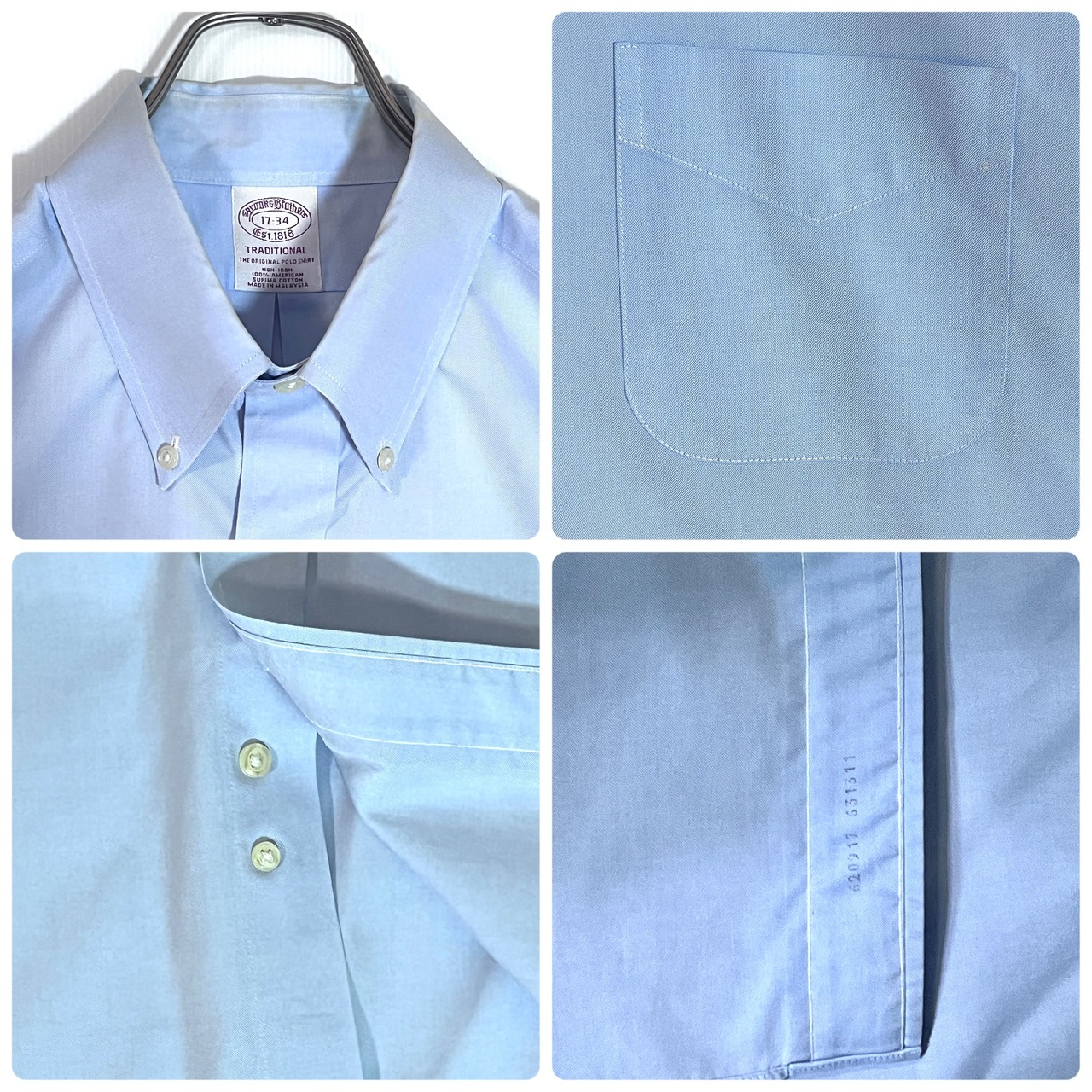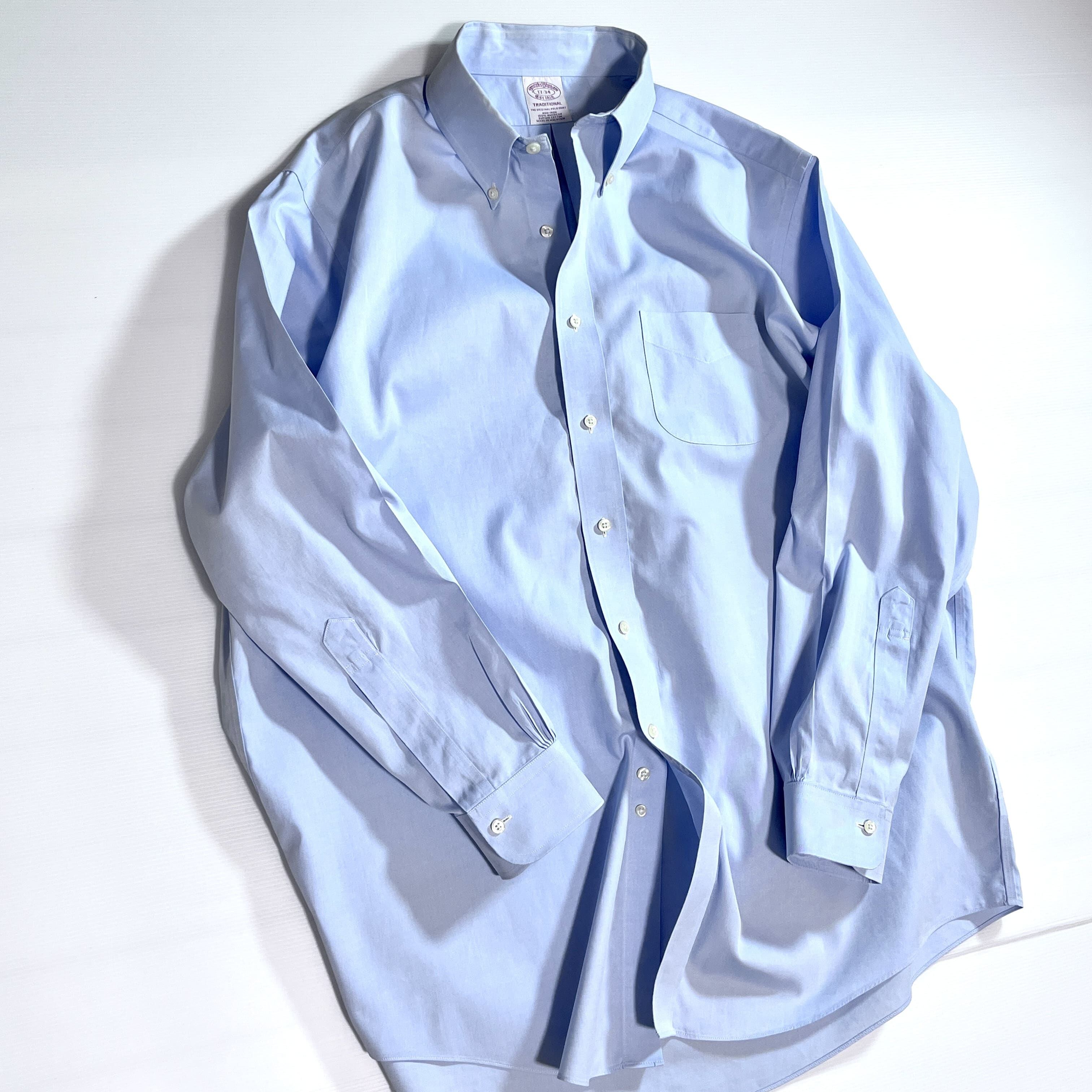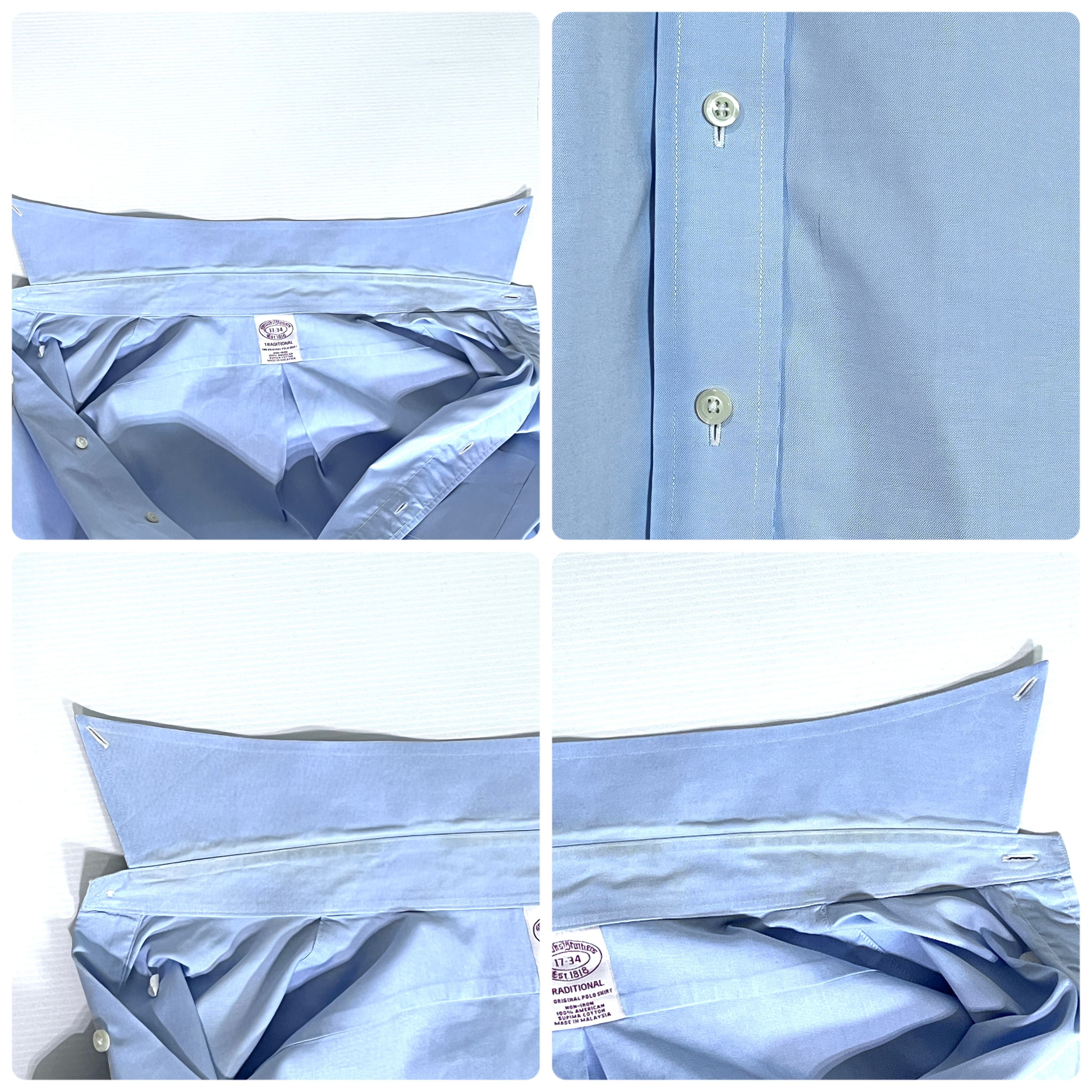 Brooks Brothers ブルックスブラザーズ 17 34 XL 水色 サックスブルー TRADITIONAL THE ORIGINAL ノンアイロン アメリカン スーピマコットン 無地 ポケット 長袖ボタンダウンシャツ BDシャツ v24063313