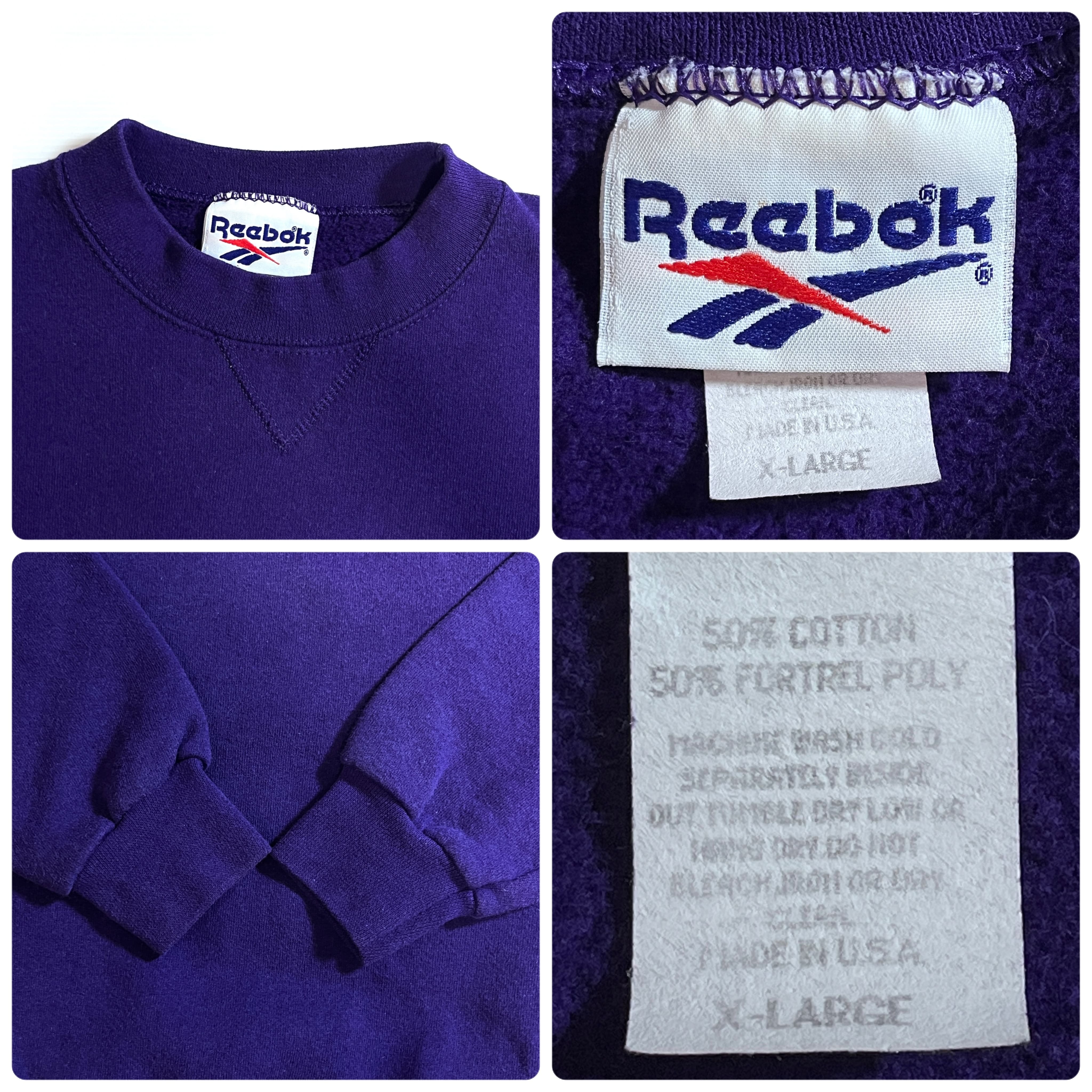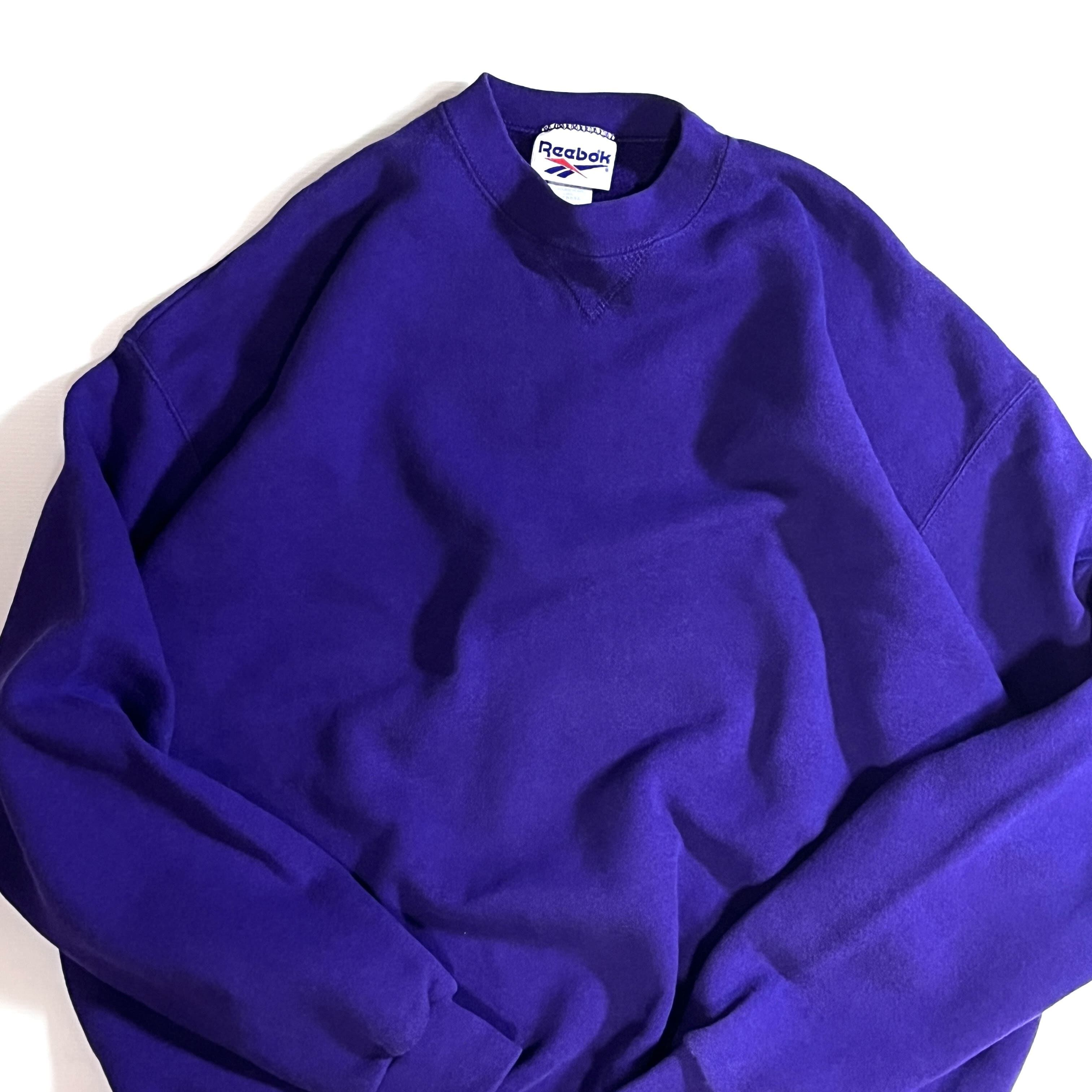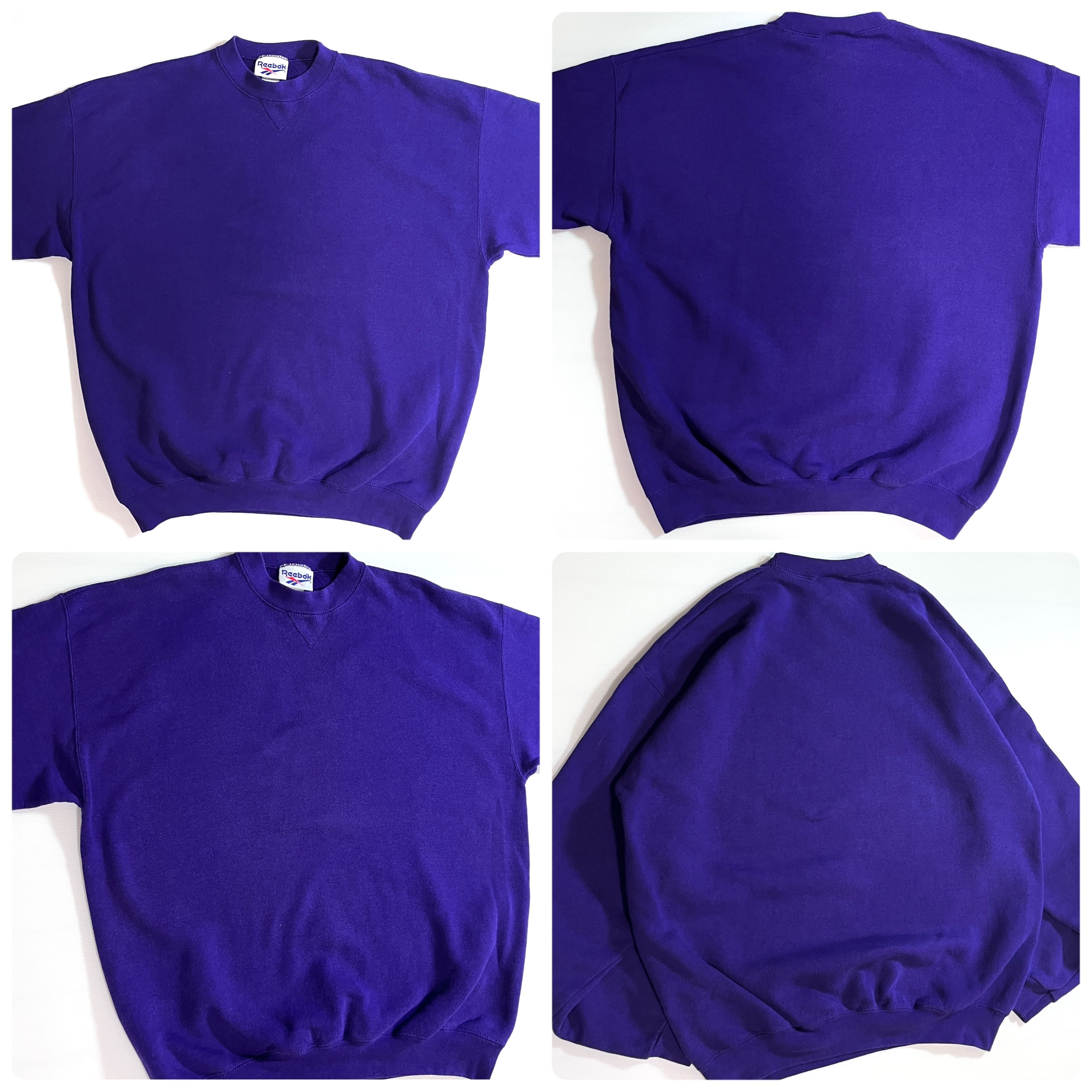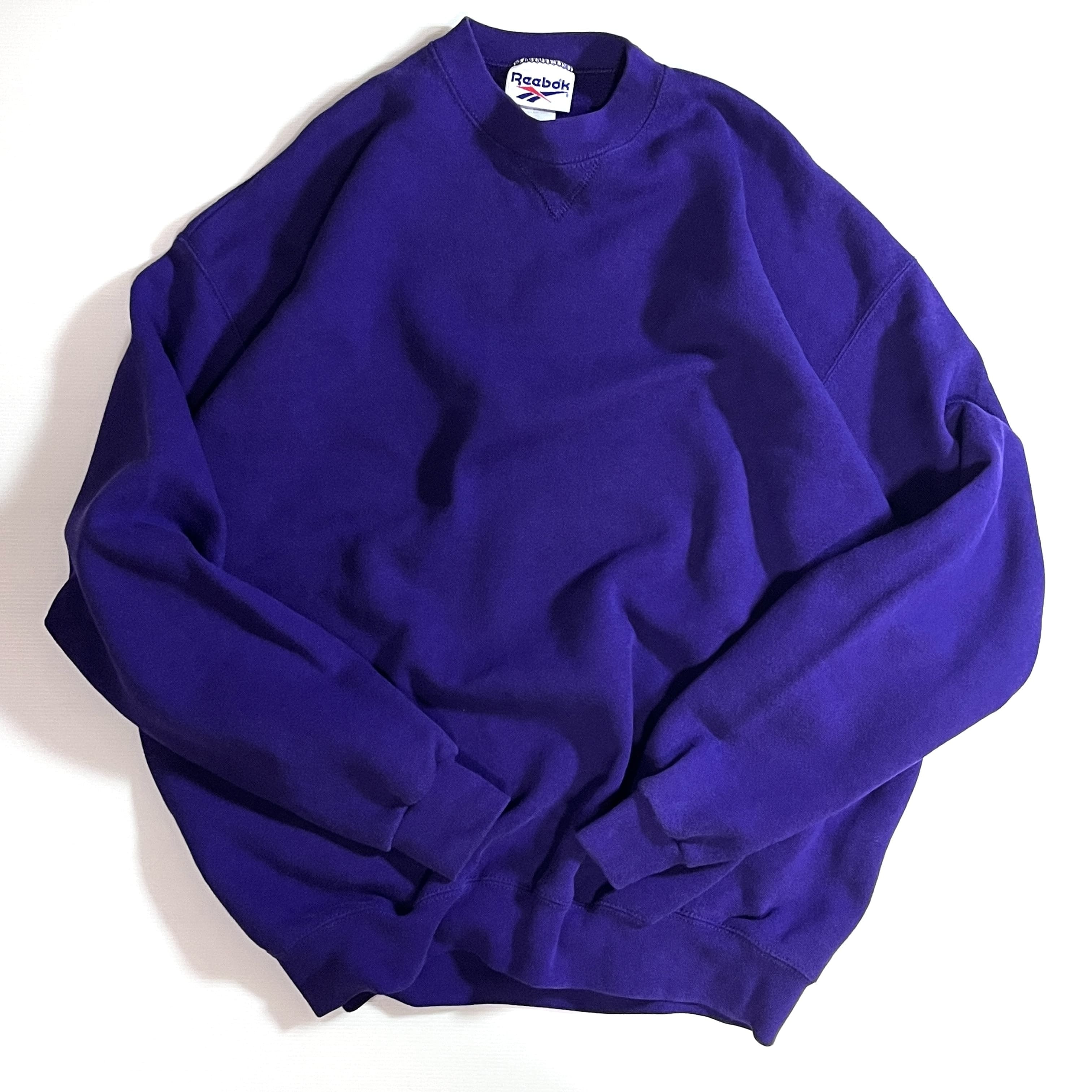 90s USA製 XL Reebok VINTAGE HEAVYWEIGHT PLAIN BLANK SWEAT リーボック 無地 肉厚 ヘビーウエイト 前Vガゼット ブランク 裏起毛 プルオーバー クルーネック スウェット トレーナー パープル 紫 メンズ トップス ソリッド ノームコア レアカラー p25053224