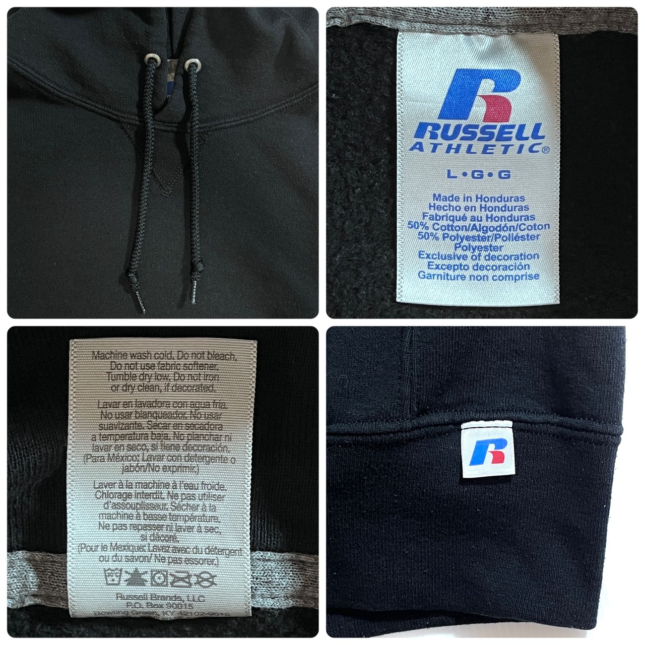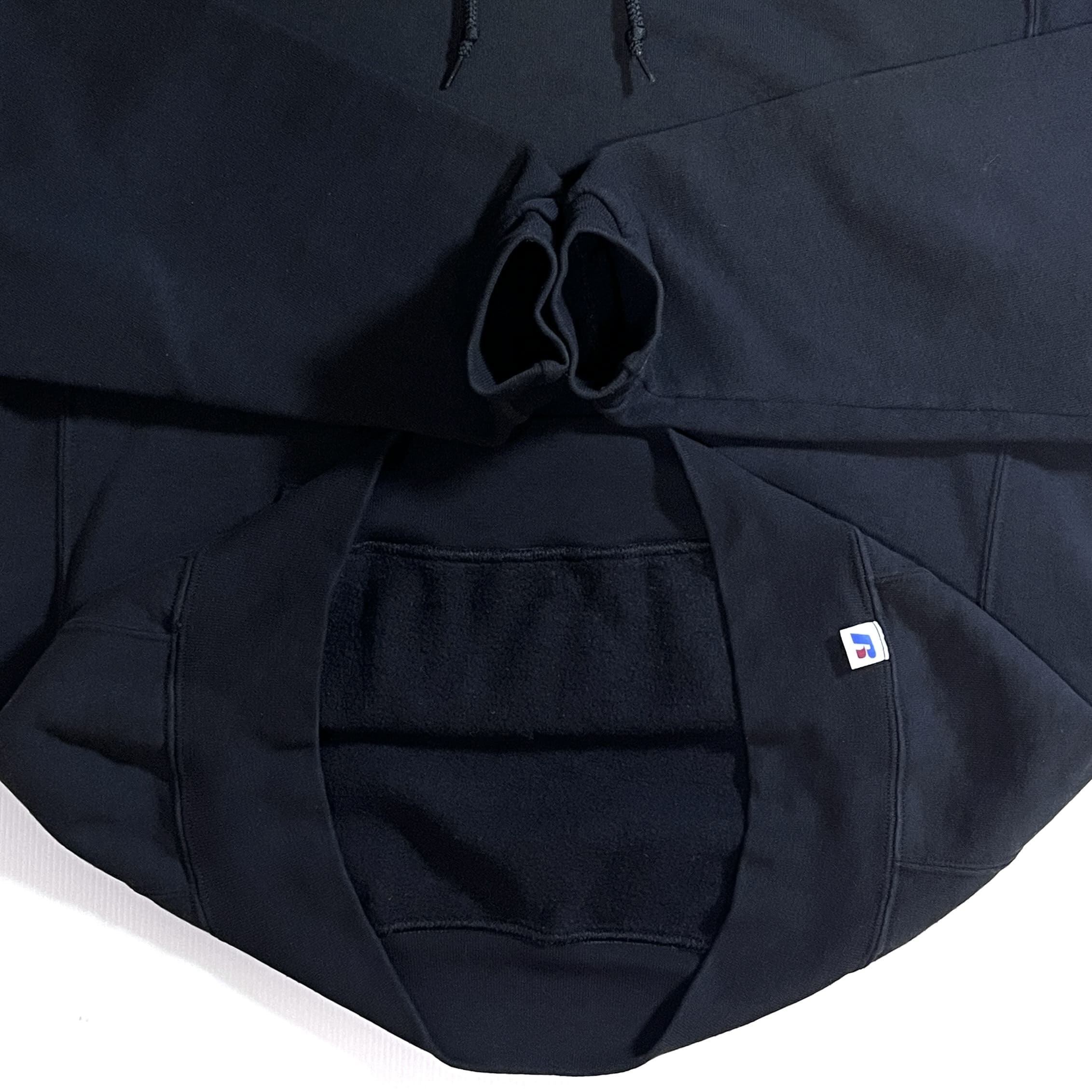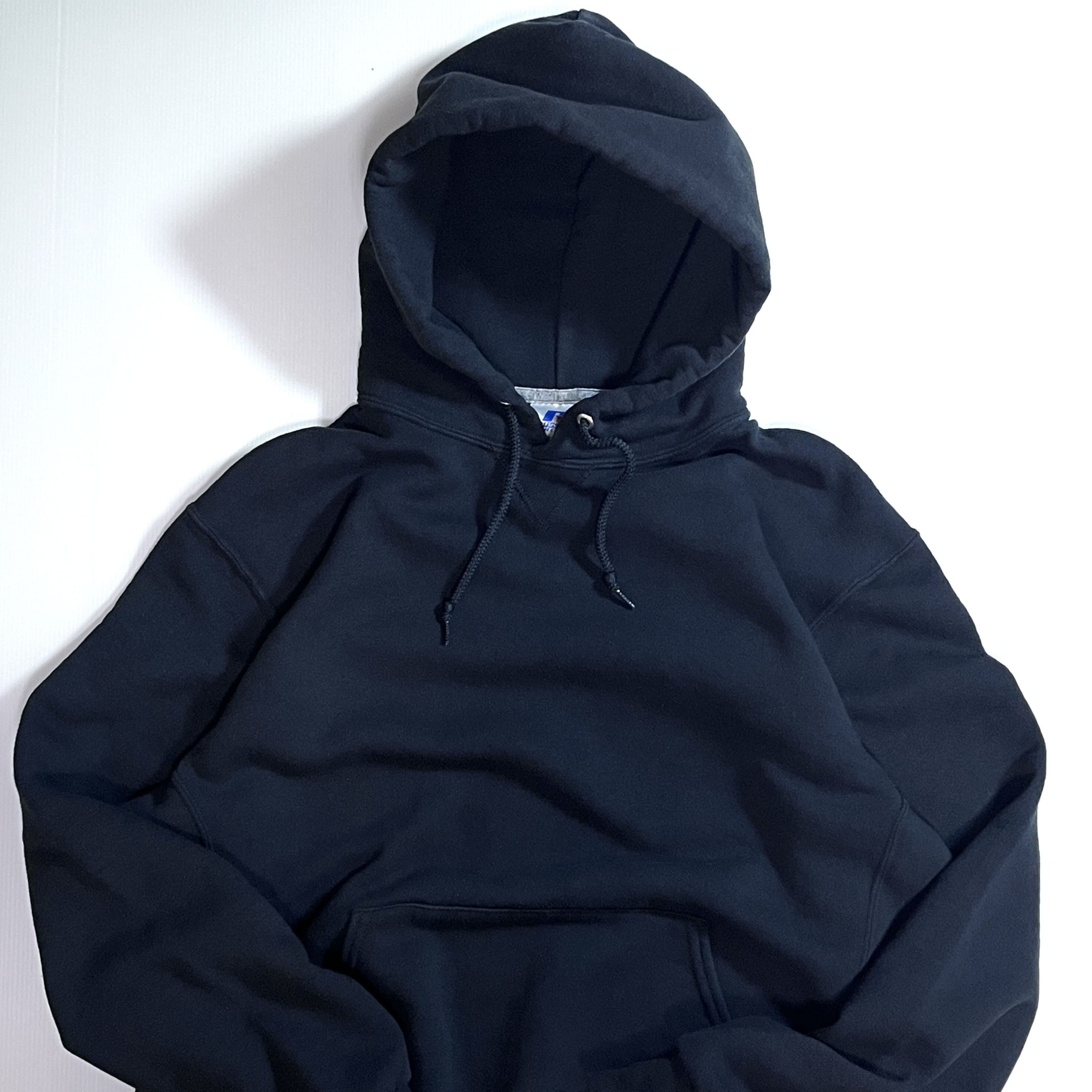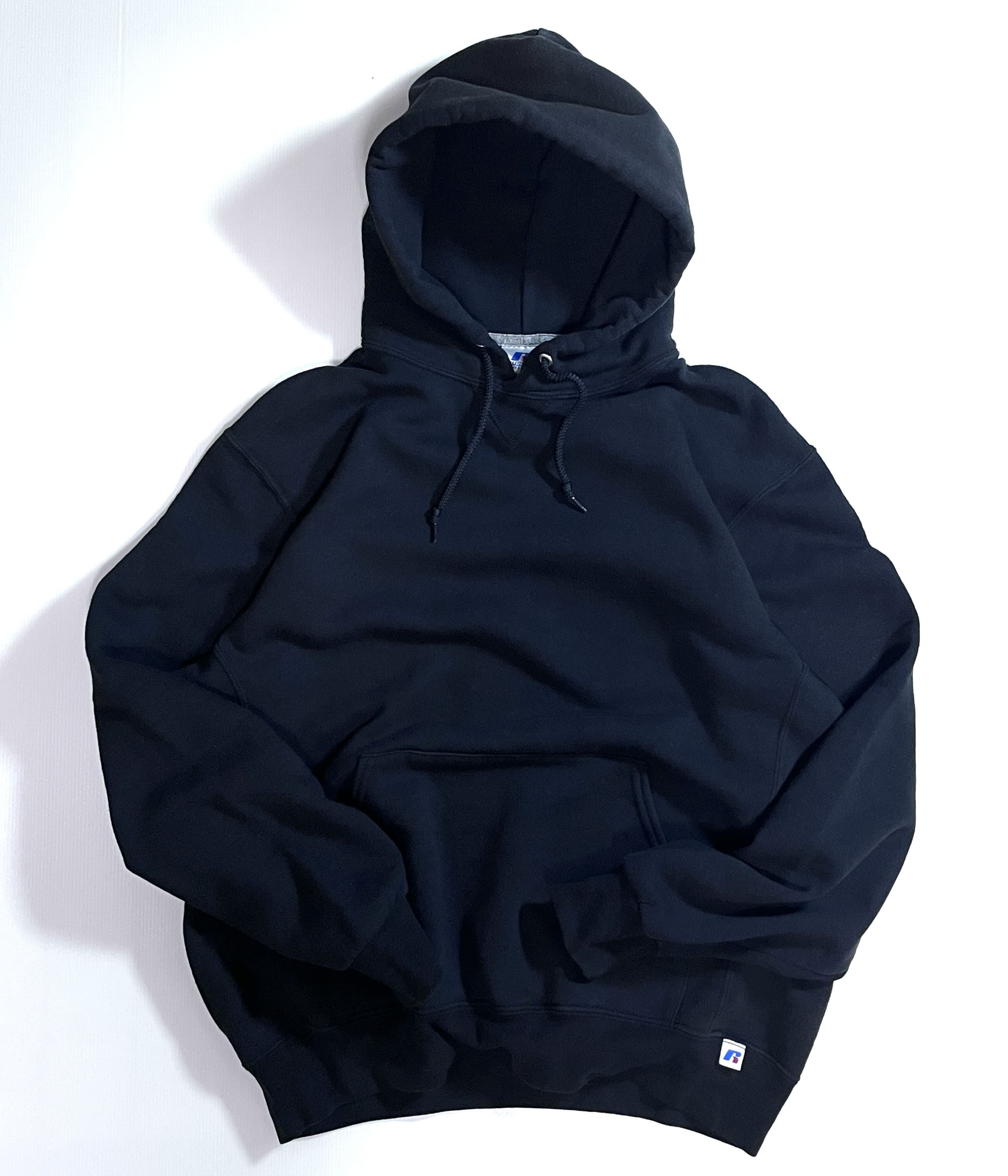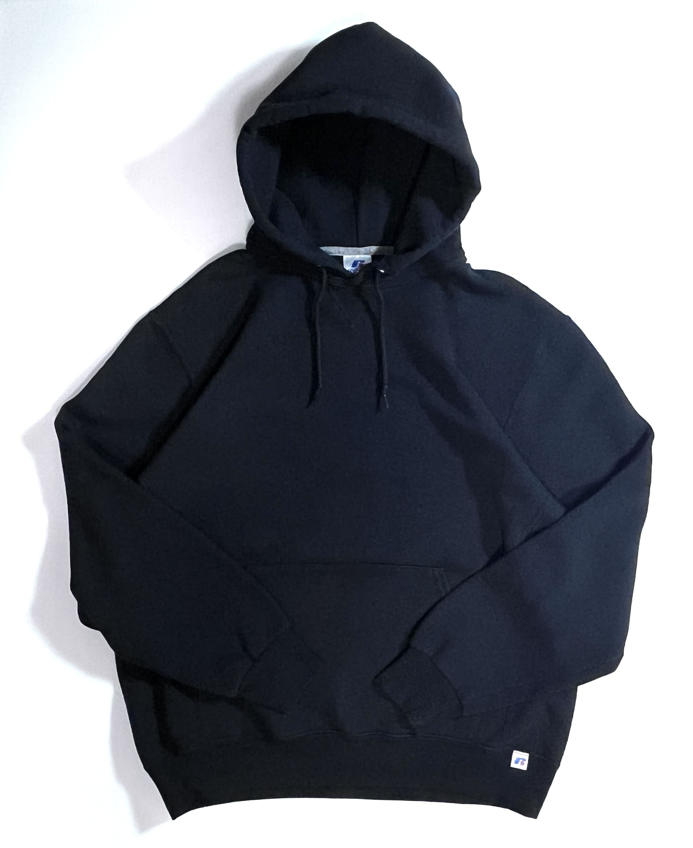 00s RUSSELL ATHLETIC BLACK L PLAIN BLANK PULLOVER SWEAT HOODIE ラッセル アスレチック 完全無地 ワンポイント刺繍ロゴピスネーム 前V ガゼット 裏起毛 プルオーバー スウェット パーカー フード フーディー メンズ トップス ソリッド ノームコア ブラック 黒p25053220 | June