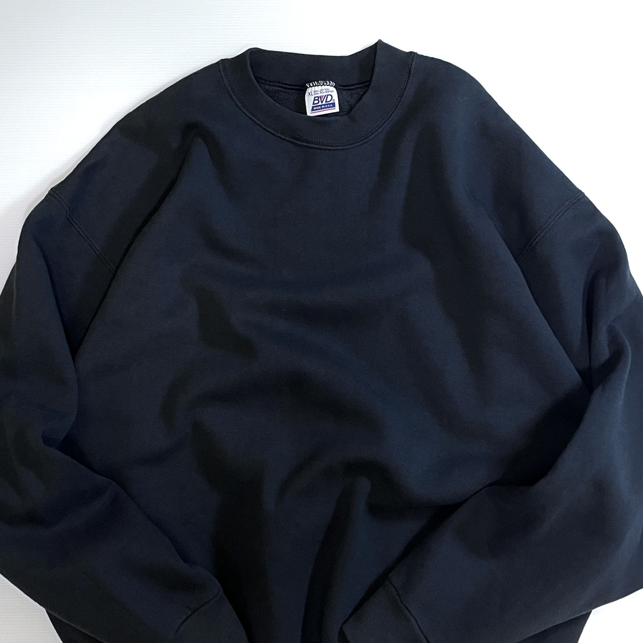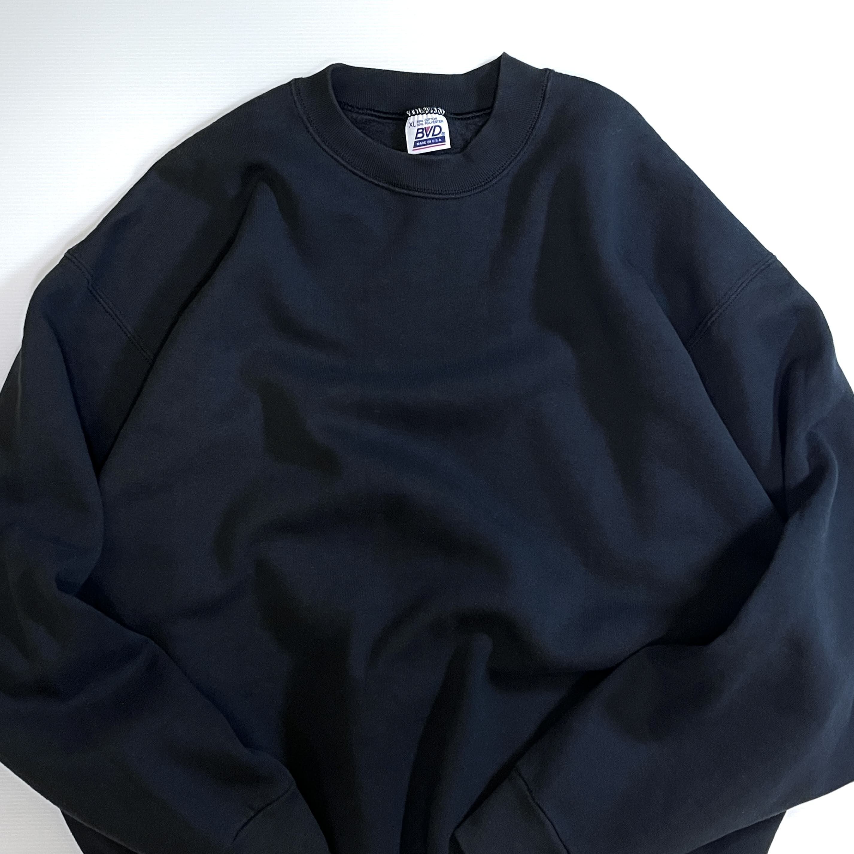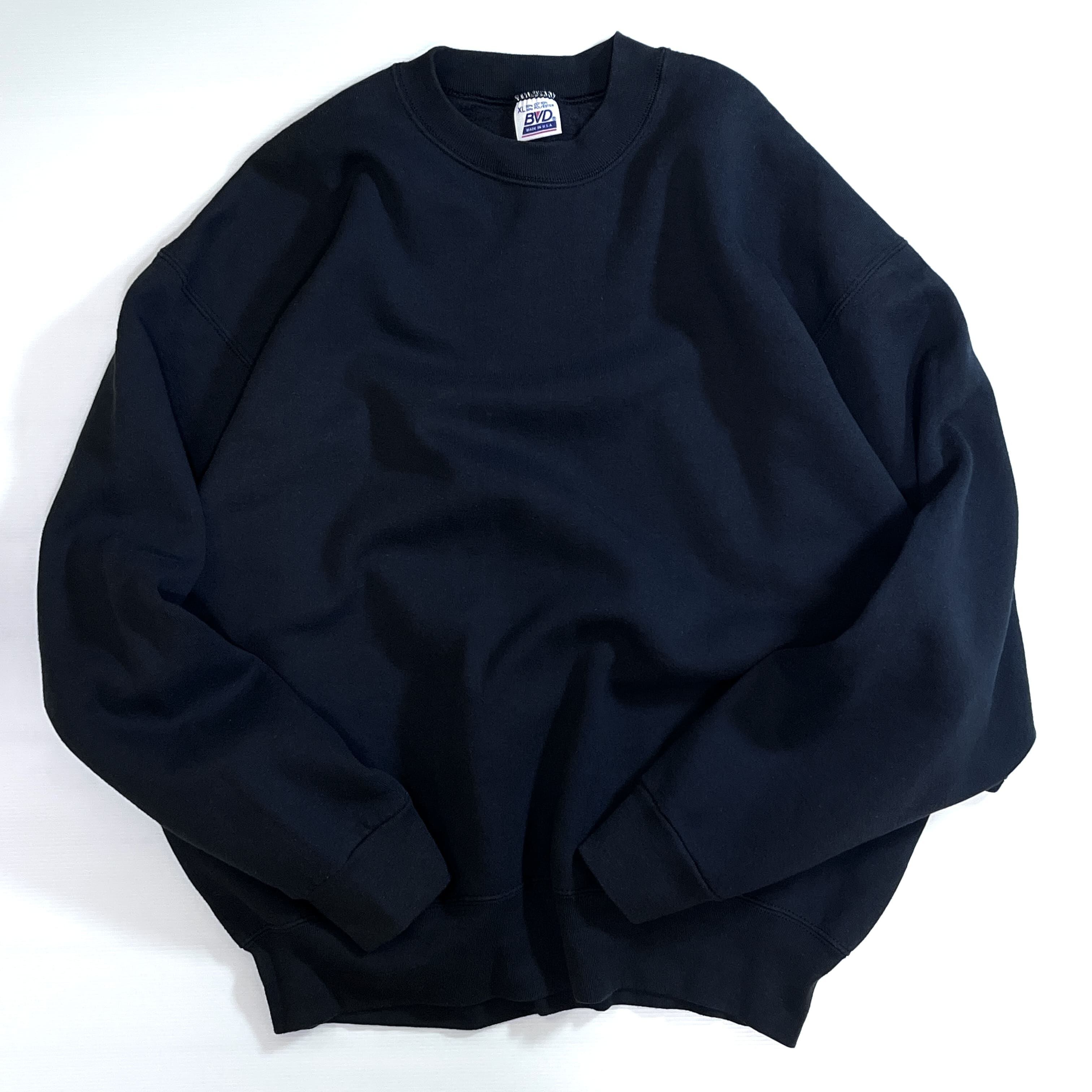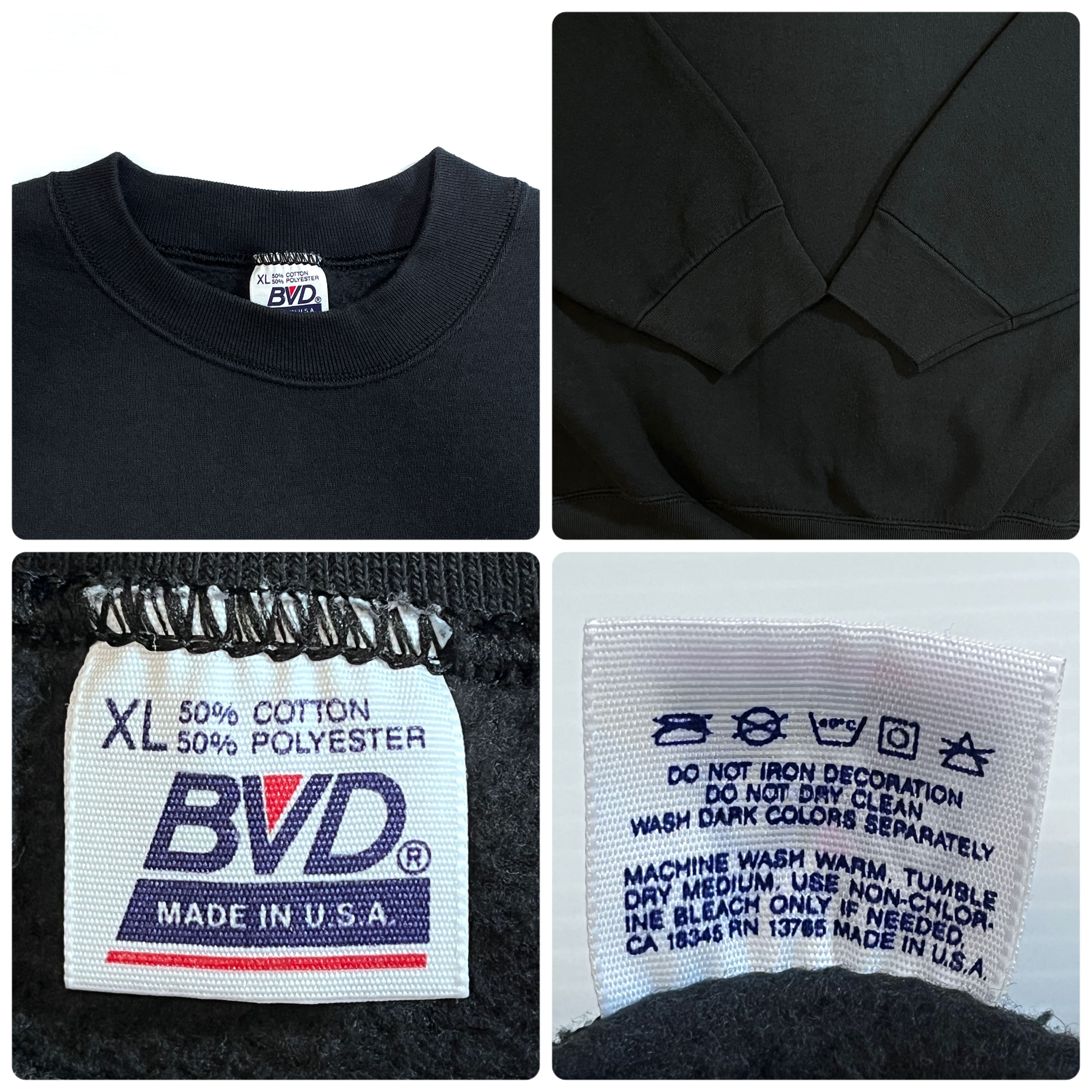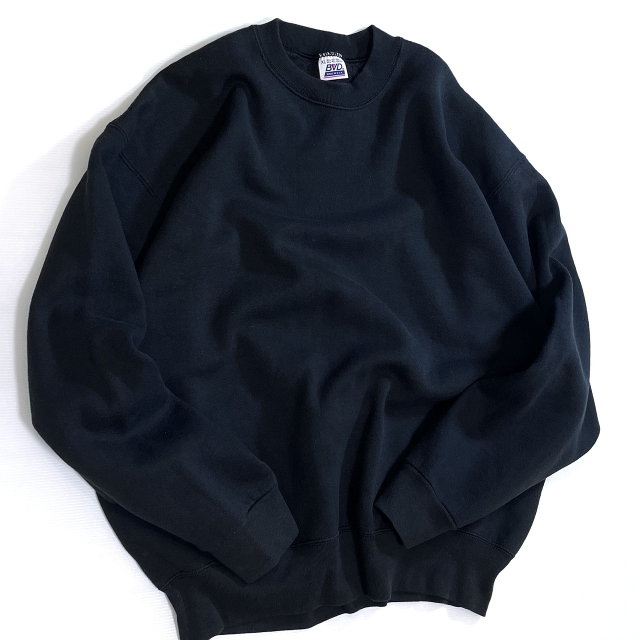 美品 90s USA製 B.V.D. XL BLACK BVD VINTAGE HEAVYWEIGHT PLAIN BLANK SWEAT SHIRT ブラック 黒 肉厚 無地 ブランク 裏起毛 プルオーバー クルーネック スウェット トレーナー ブランクスウェットシャツ プレーン ヴィンテージスウェット ソリッド 神シルエット p25043175