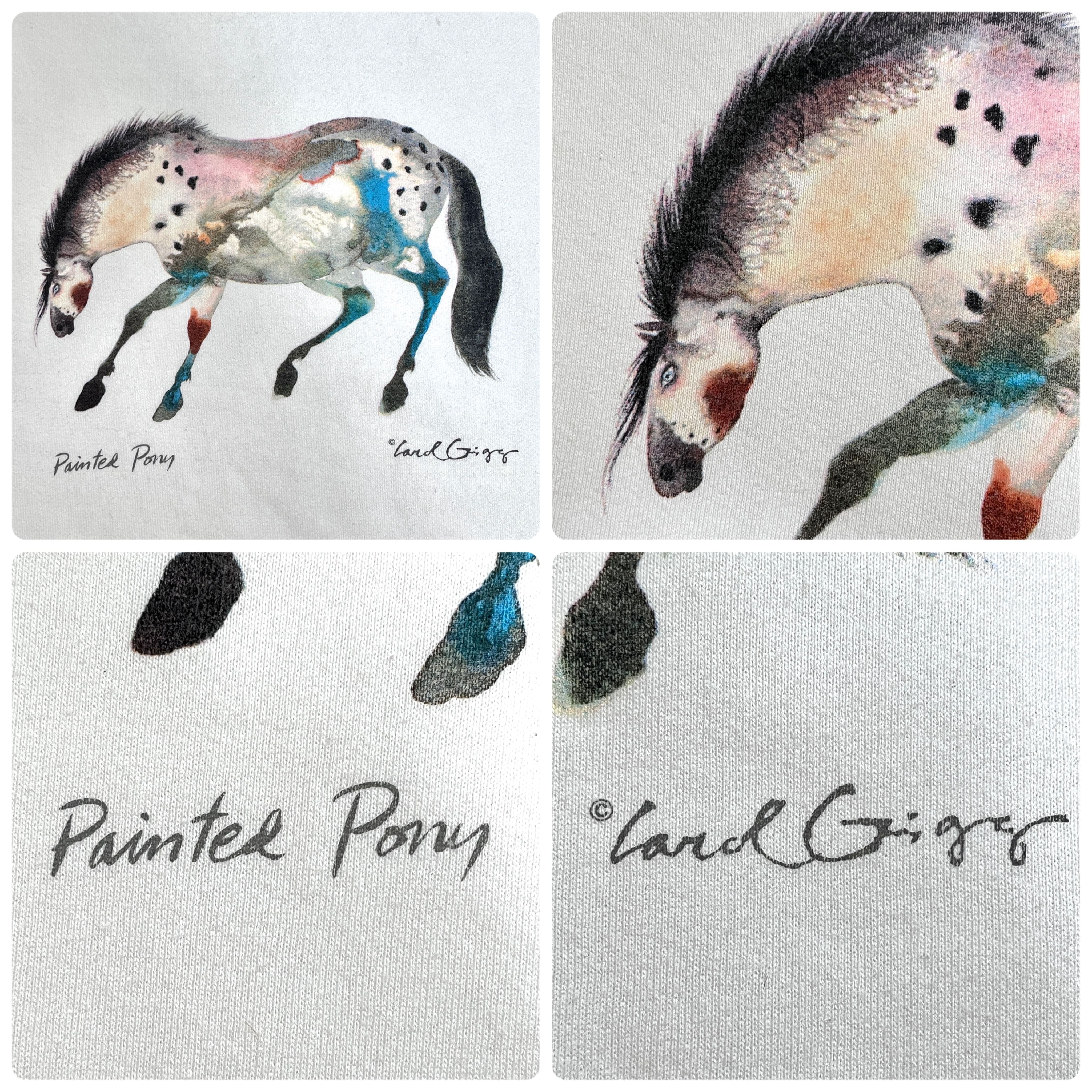 ・馬を専門に描くアメリカの女性画家「Carol Grigg (キャロル・グリッグ)」の代表作品「Painted Pony」のアートプリントスウェットです