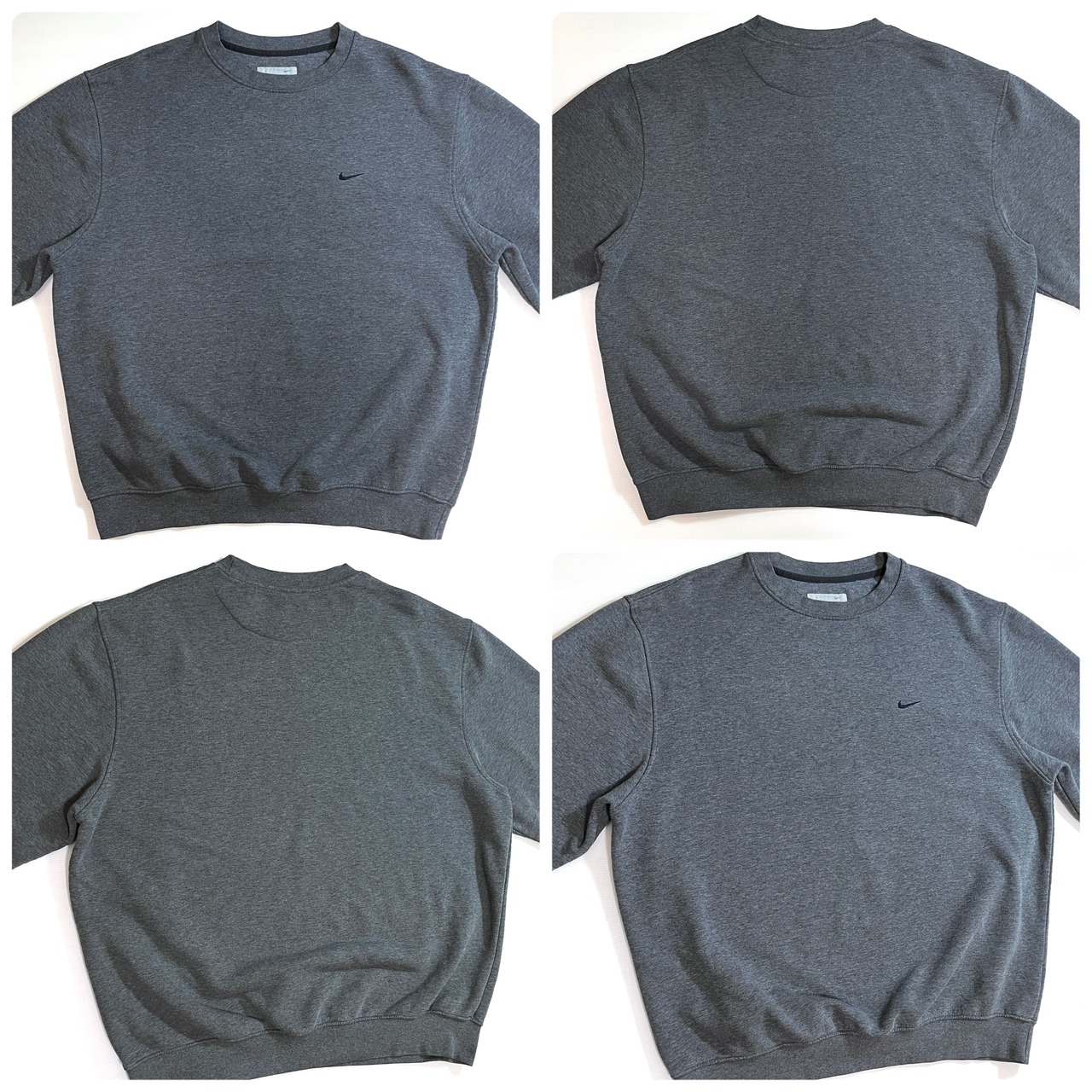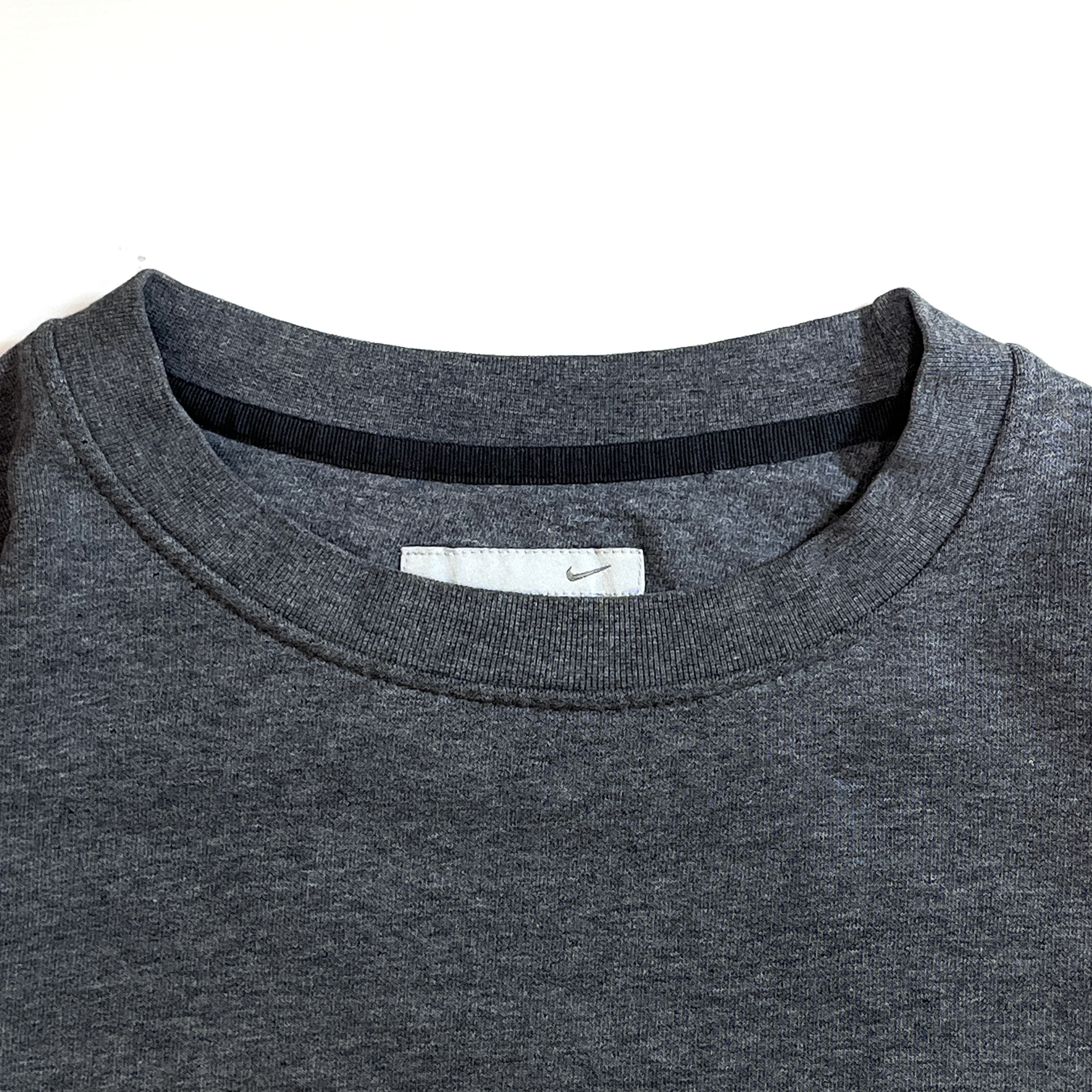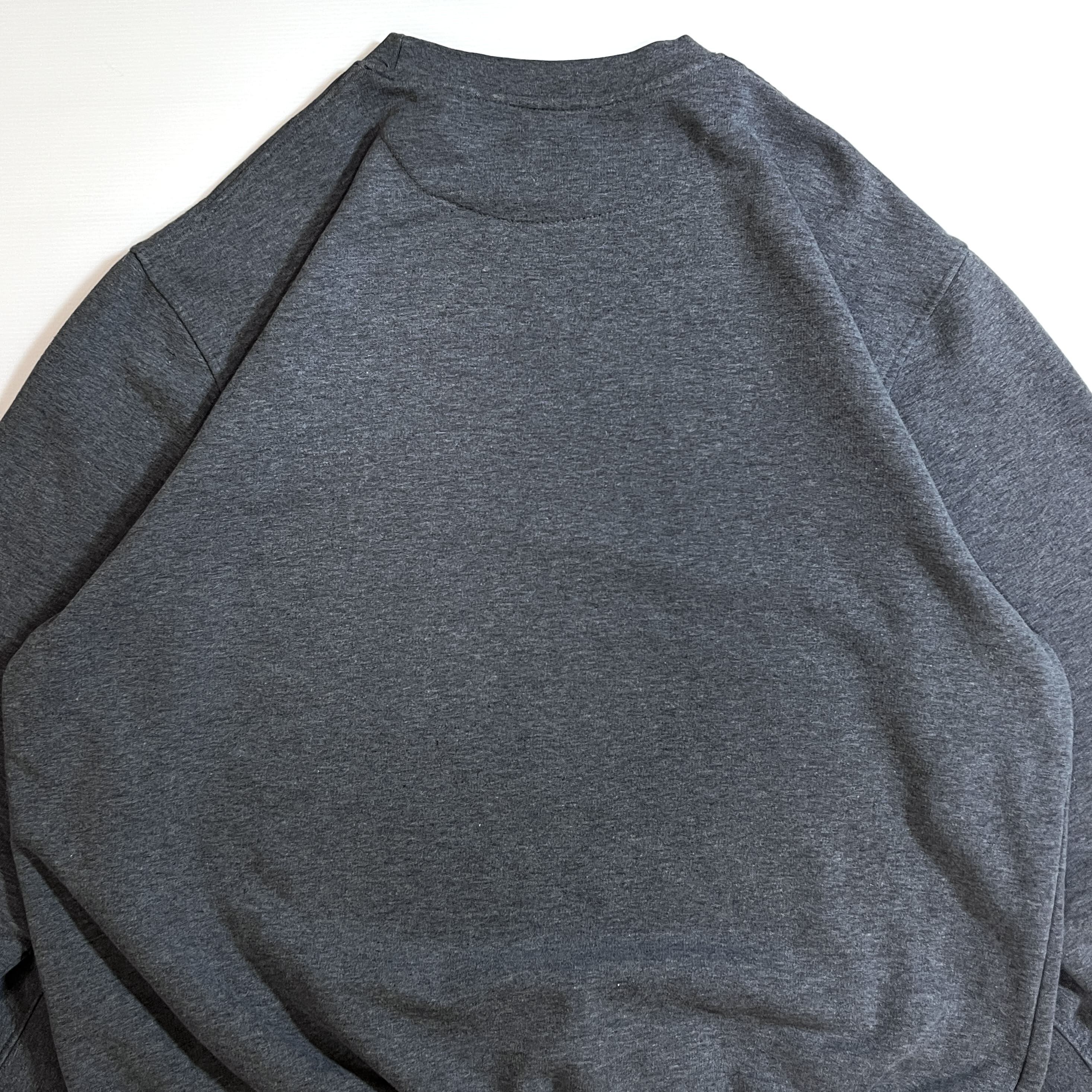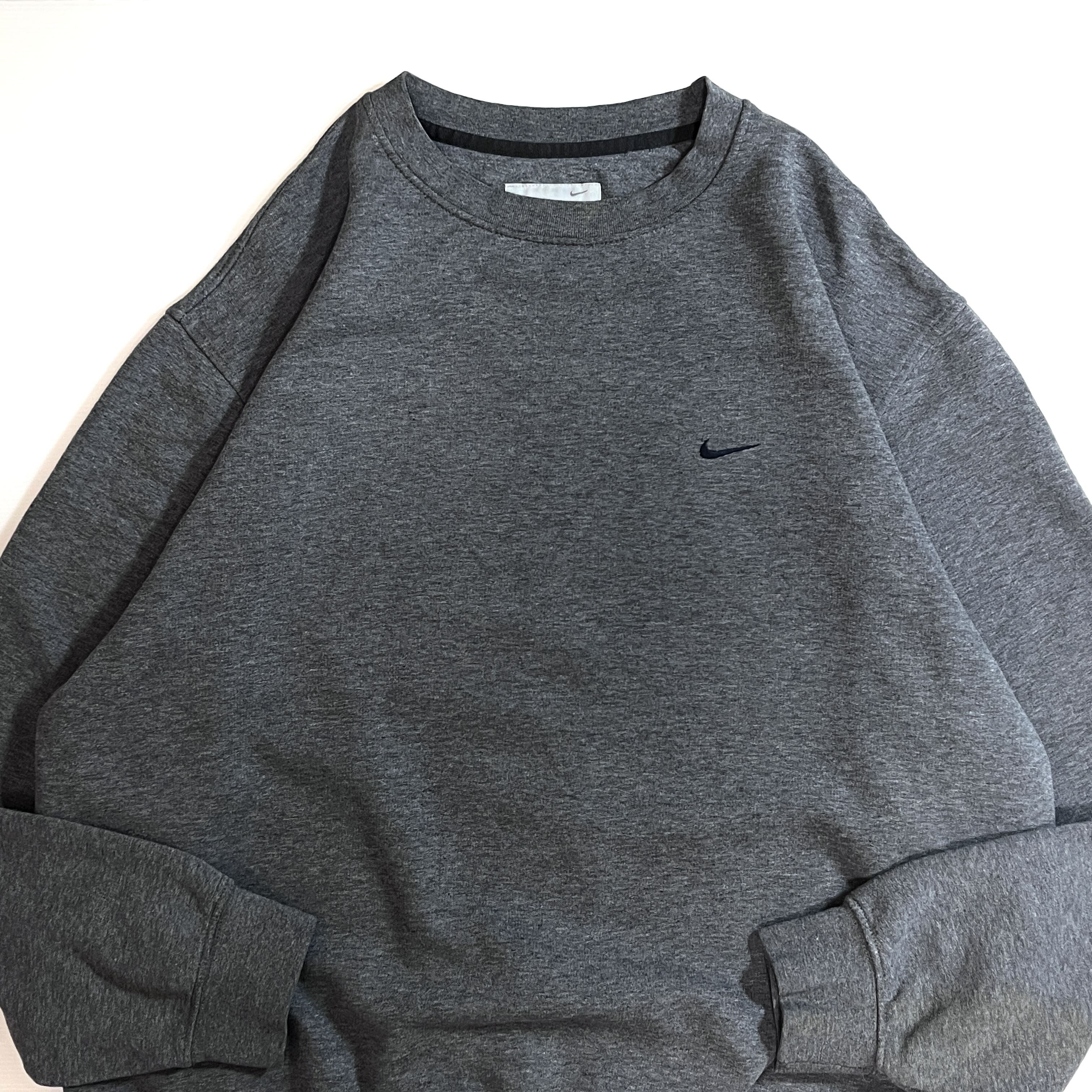 00s NIKE XL charcoal gray navy swoosh logo Fleece-lined crew neck sweat shirt ナイキ ワンポイント スウッシュ刺繍ロゴ 裏起毛 クルーネック スウェット メンズ トップス スウォッシュ刺繍 霜降りチャコールグレー トルコ製 p25073276 | June