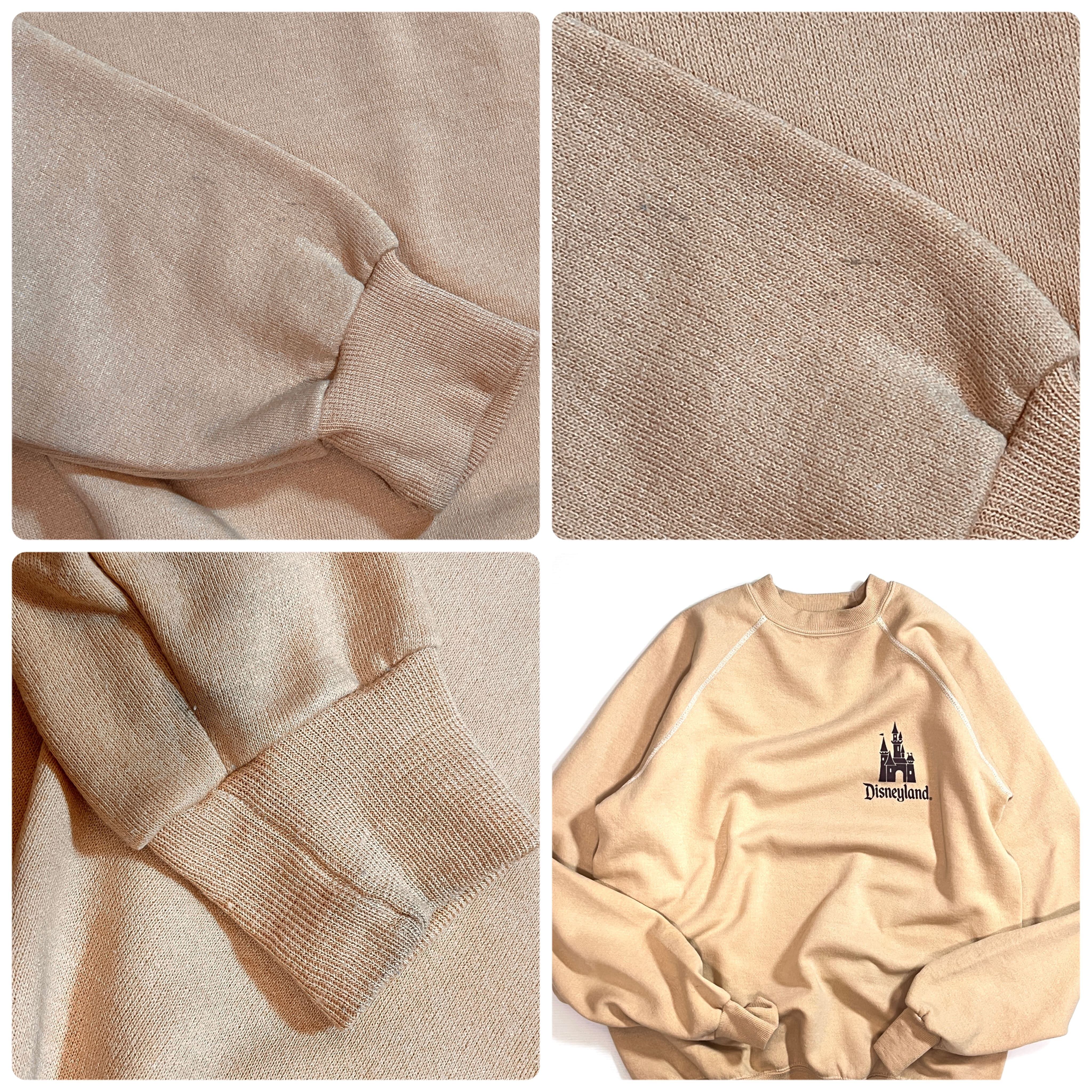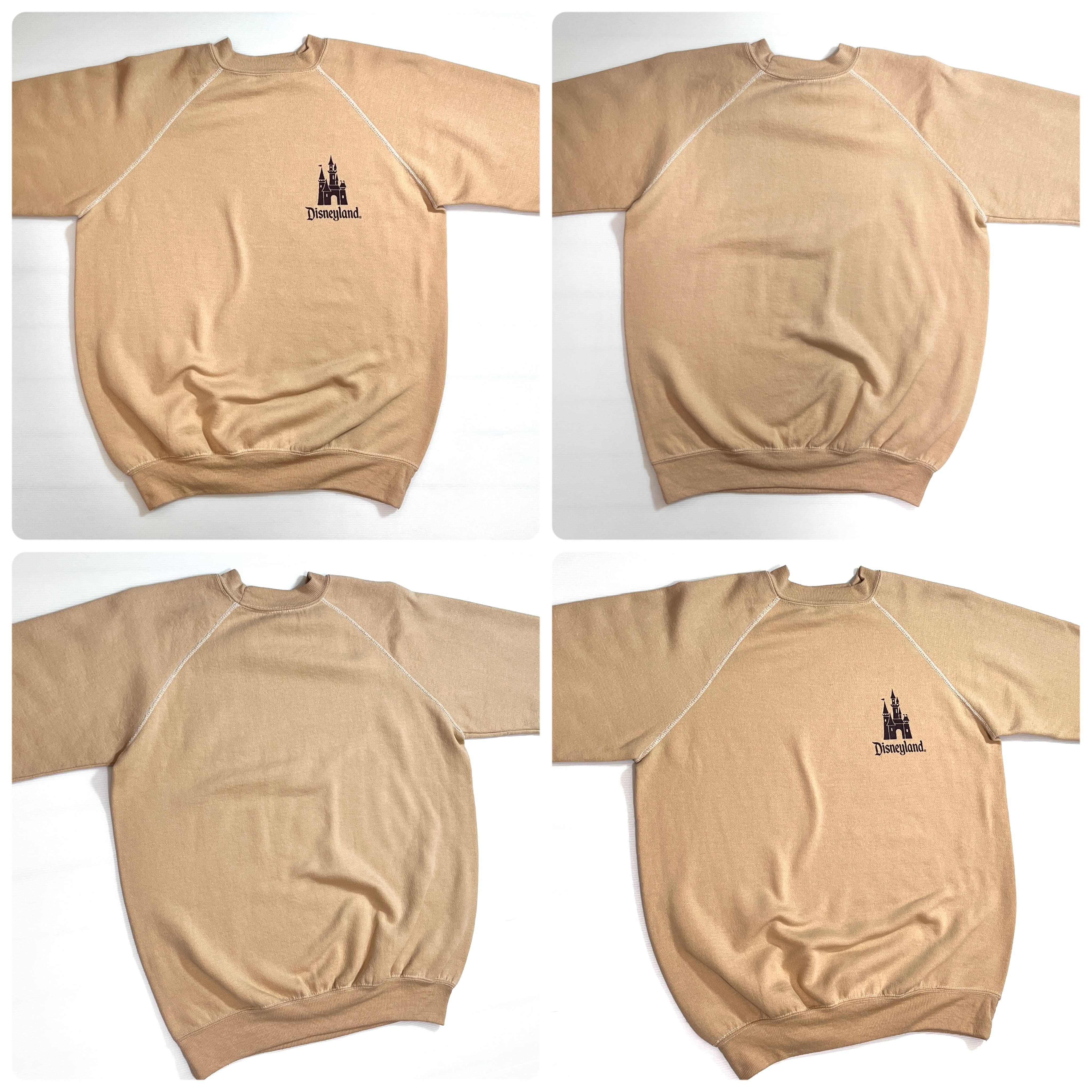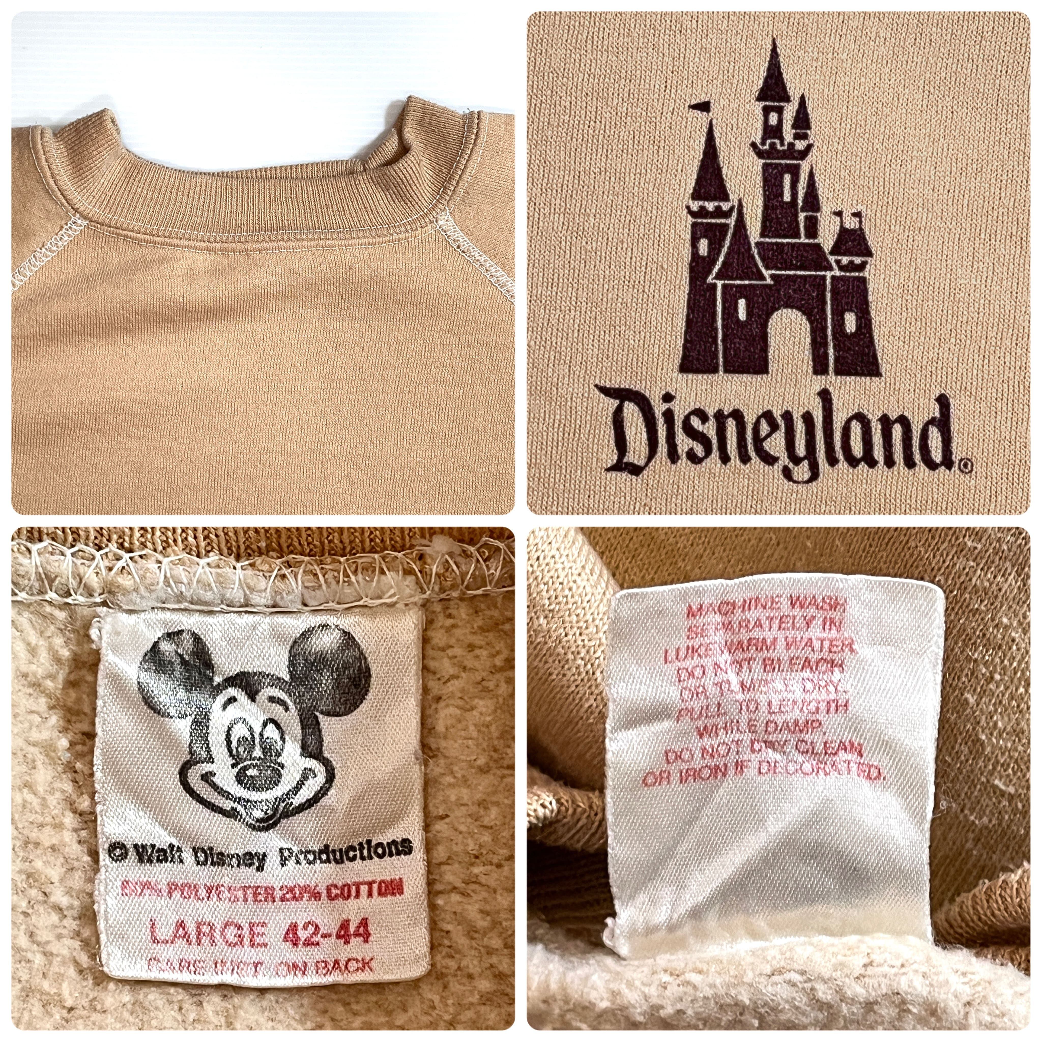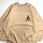 70s Disneyland ©Walt Disney Productions LARGE 42-44 Cinderella Castle print Old English logo print sweatshirt ウォルトディズニー ディズニーランド ヴィンテージ シンデレラ城 ワンポイント胸プリント オールドイングリッシュロゴプリント 裏起毛 ラグランスリーブ クルーネック スウェット ベージュ ブラウン トレーナー ビンテージ p25043177 | June