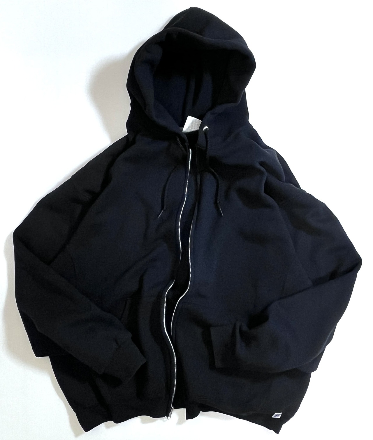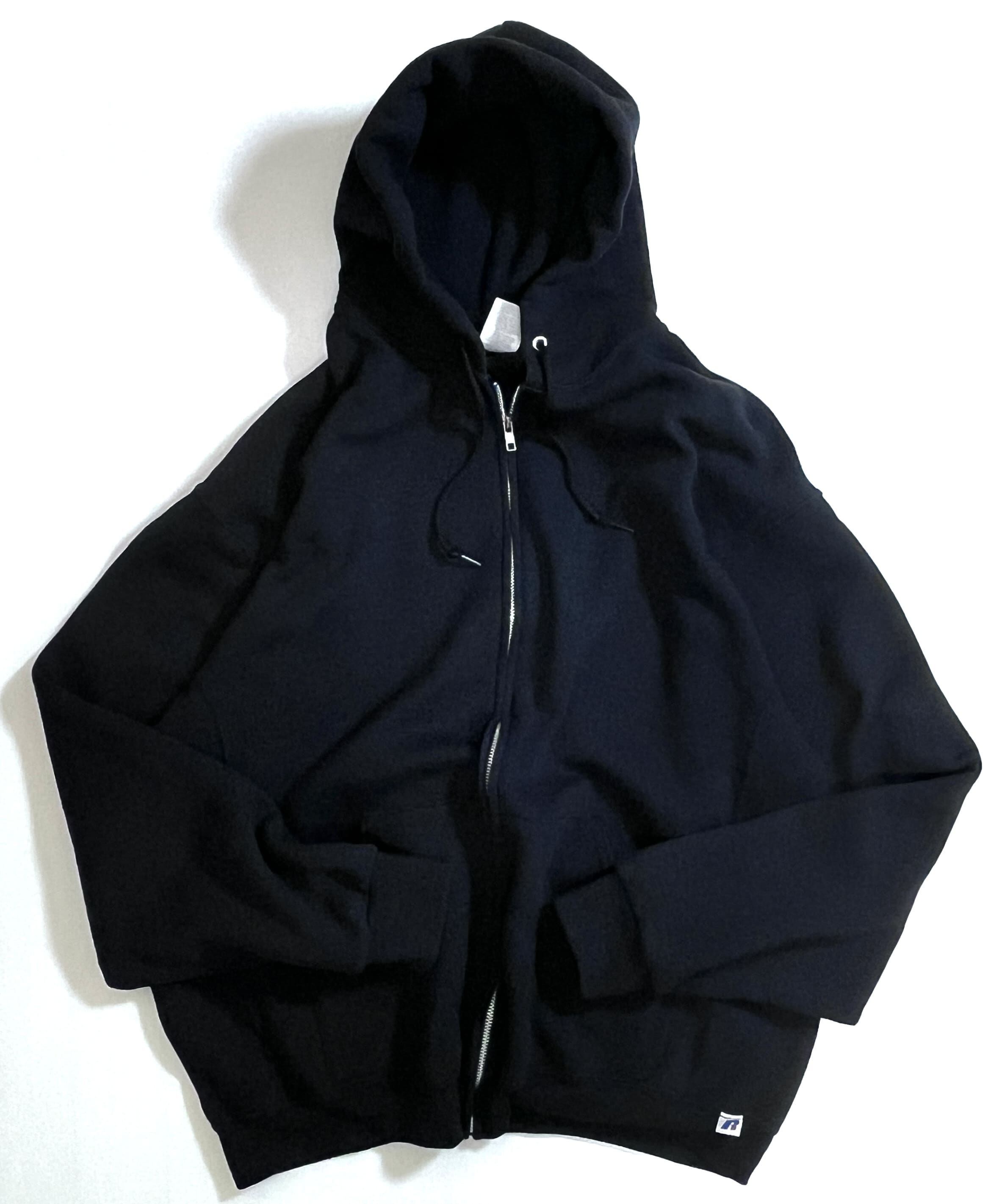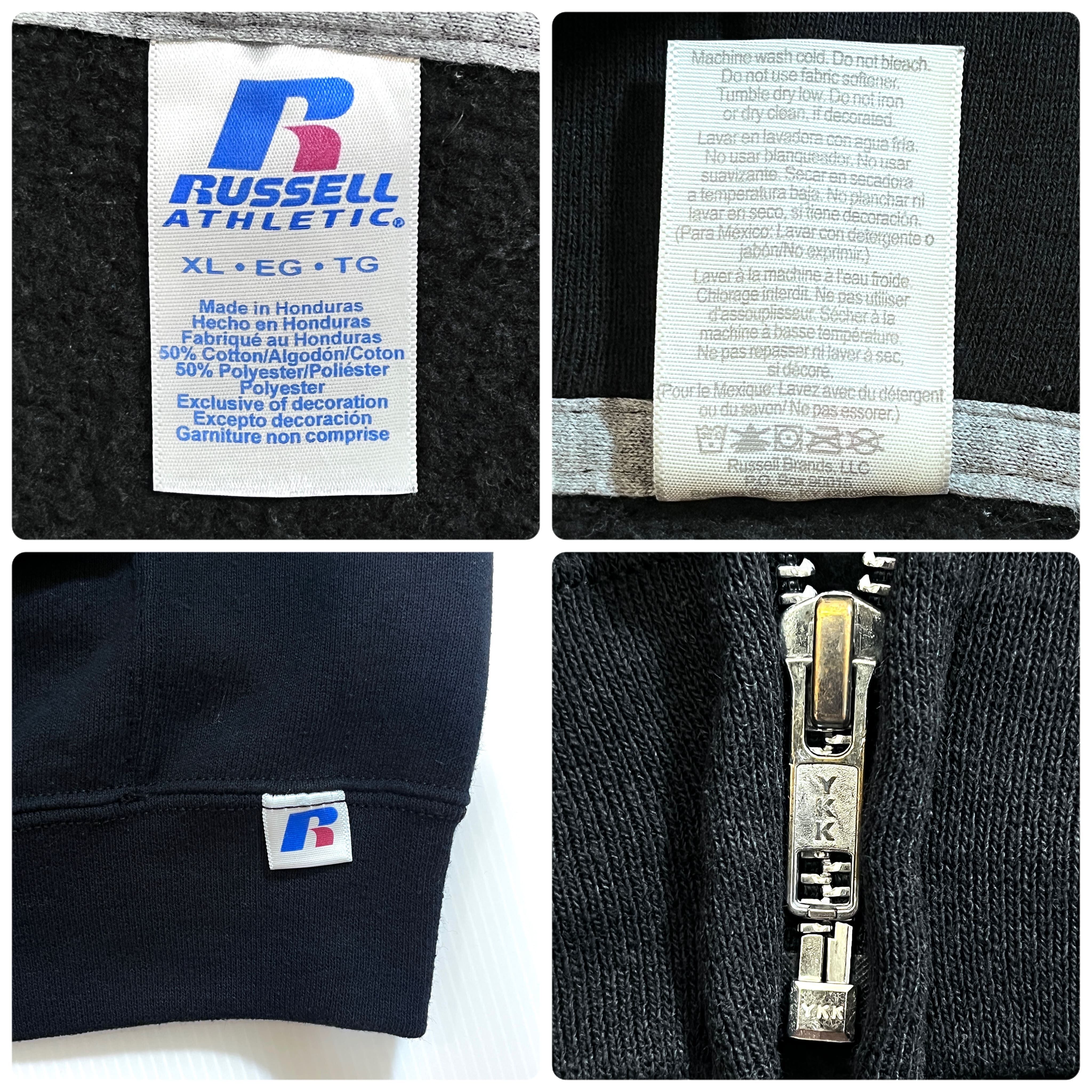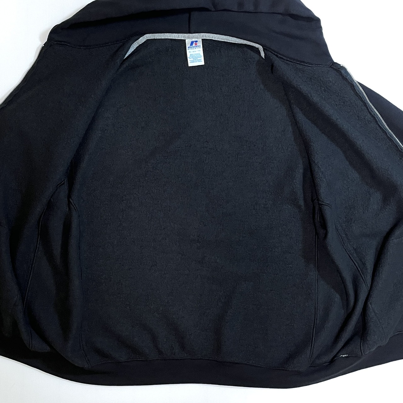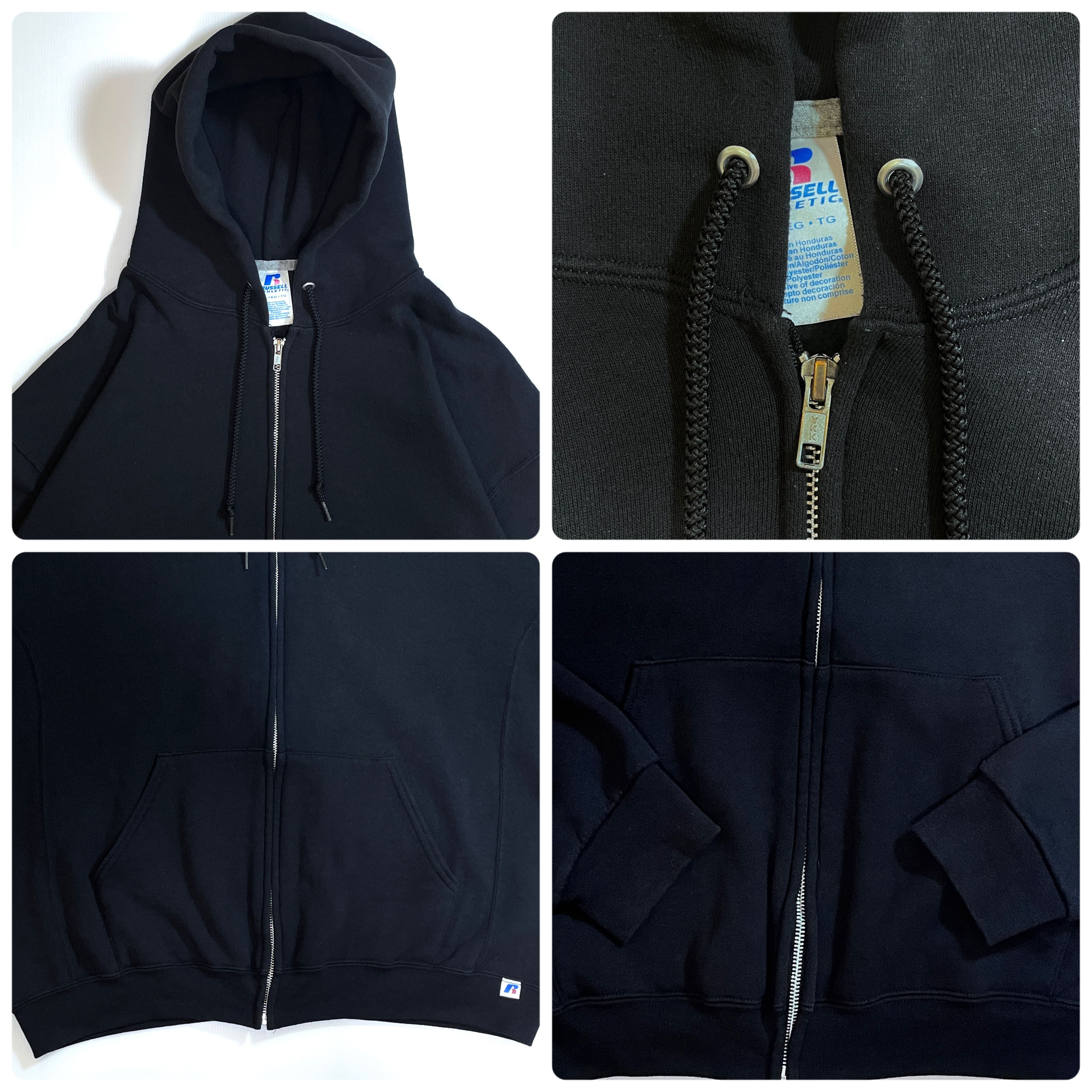 美品 00s XL BLACK RUSSELL ATHLETIC PLAIN BLANK ZIP-UP SWEAT HOODIE ラッセル アスレチック 無地 ワンポイント刺繍ロゴピスネーム 裏起毛 ジップアップ フルジップ スウェット パーカー フード フーディー ブラック メンズ トップス ソリッド ノームコア p25043172
