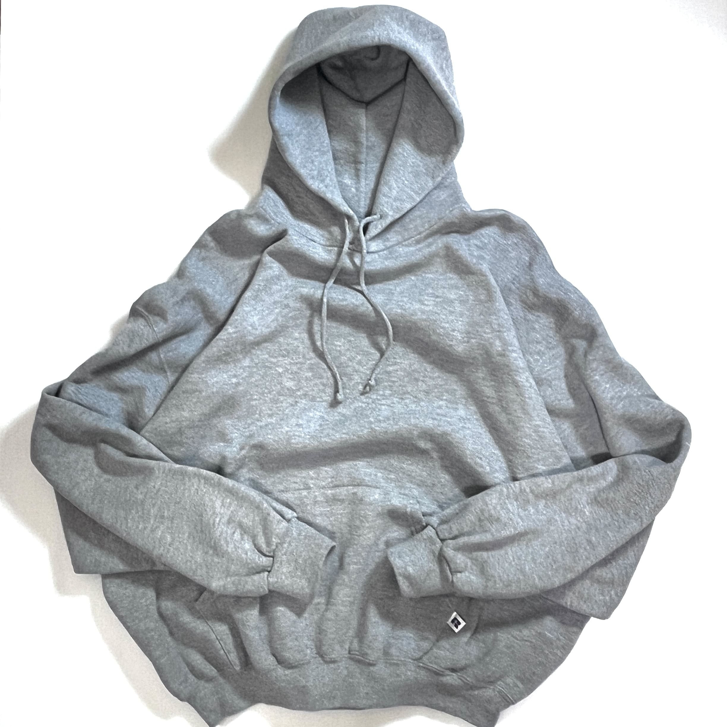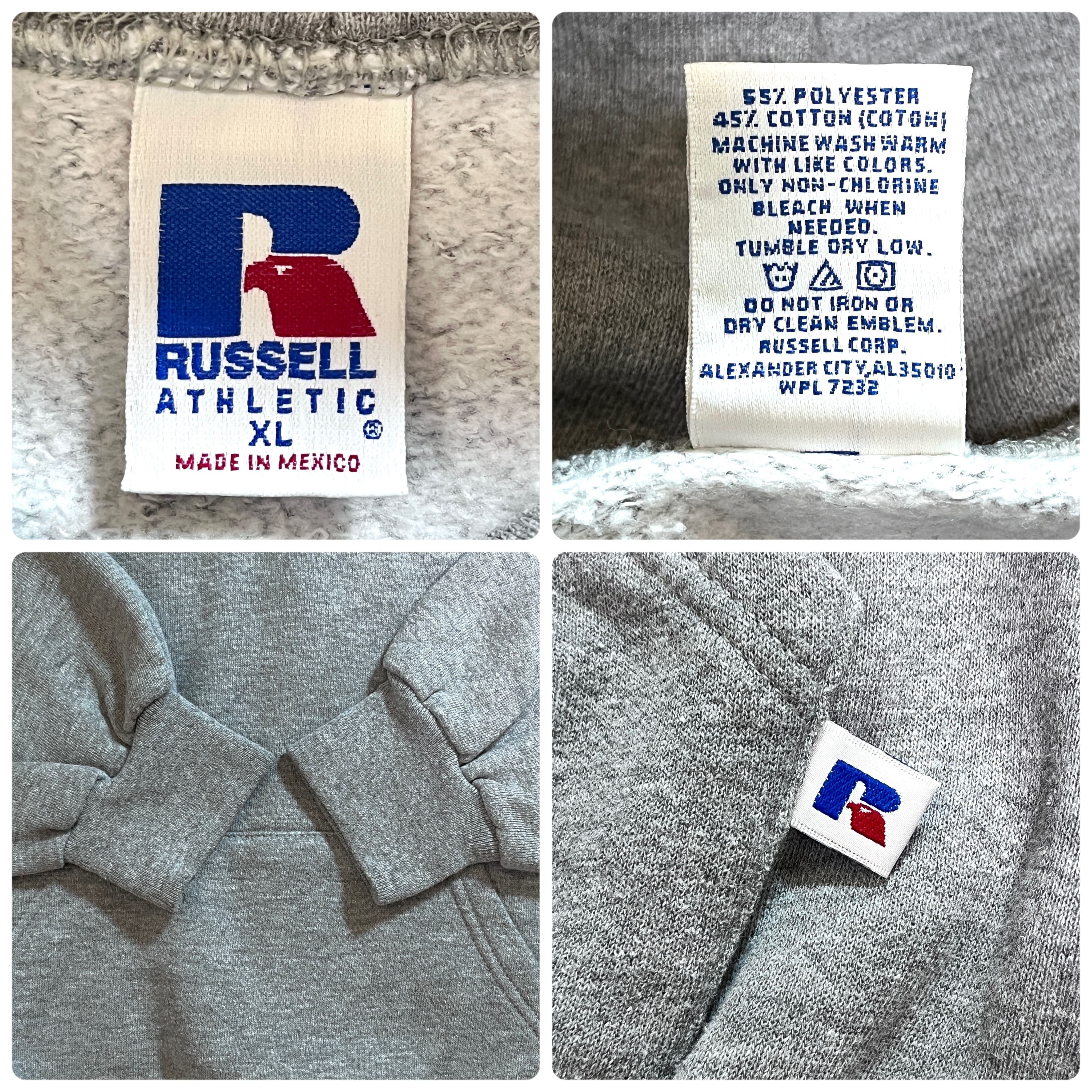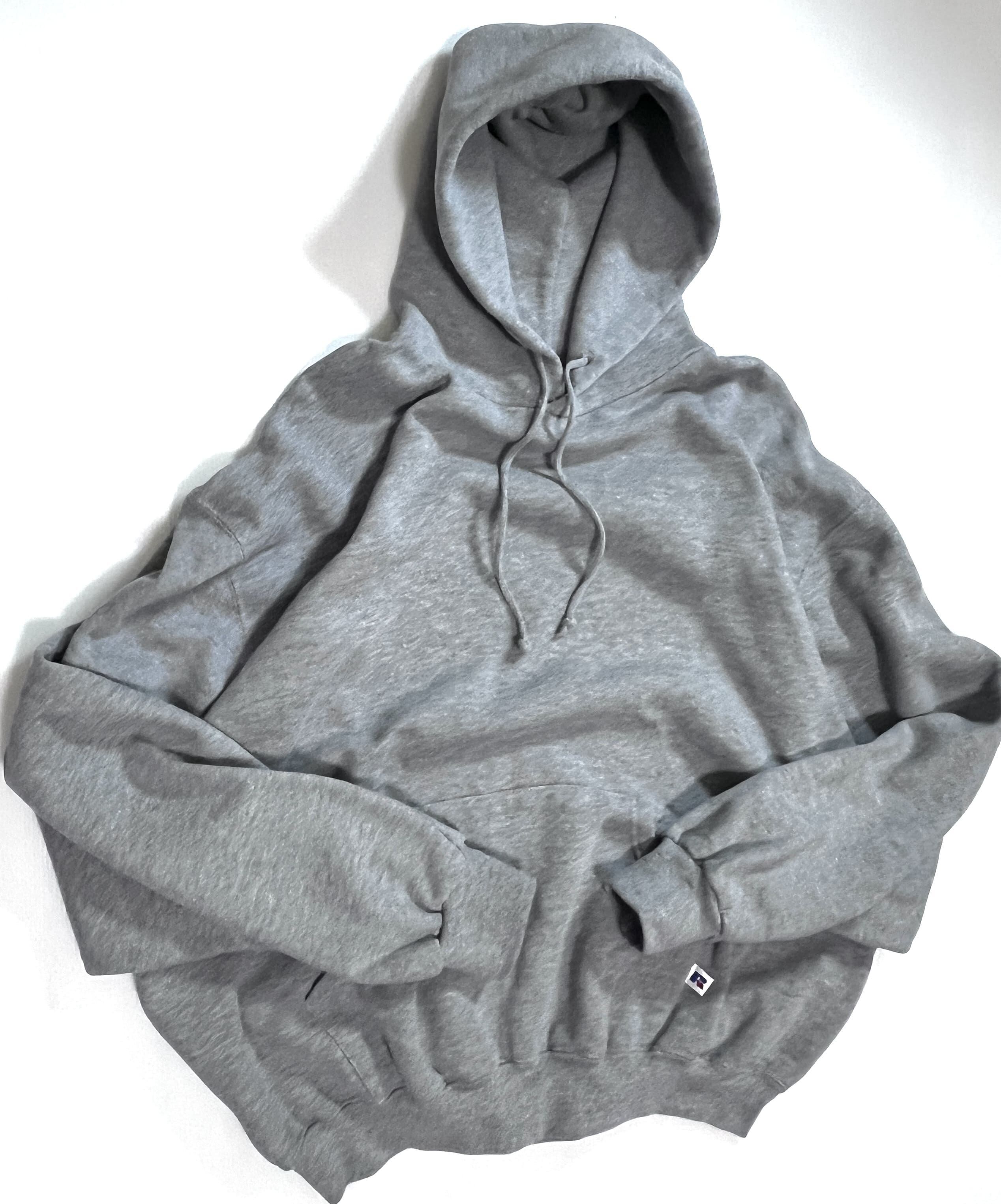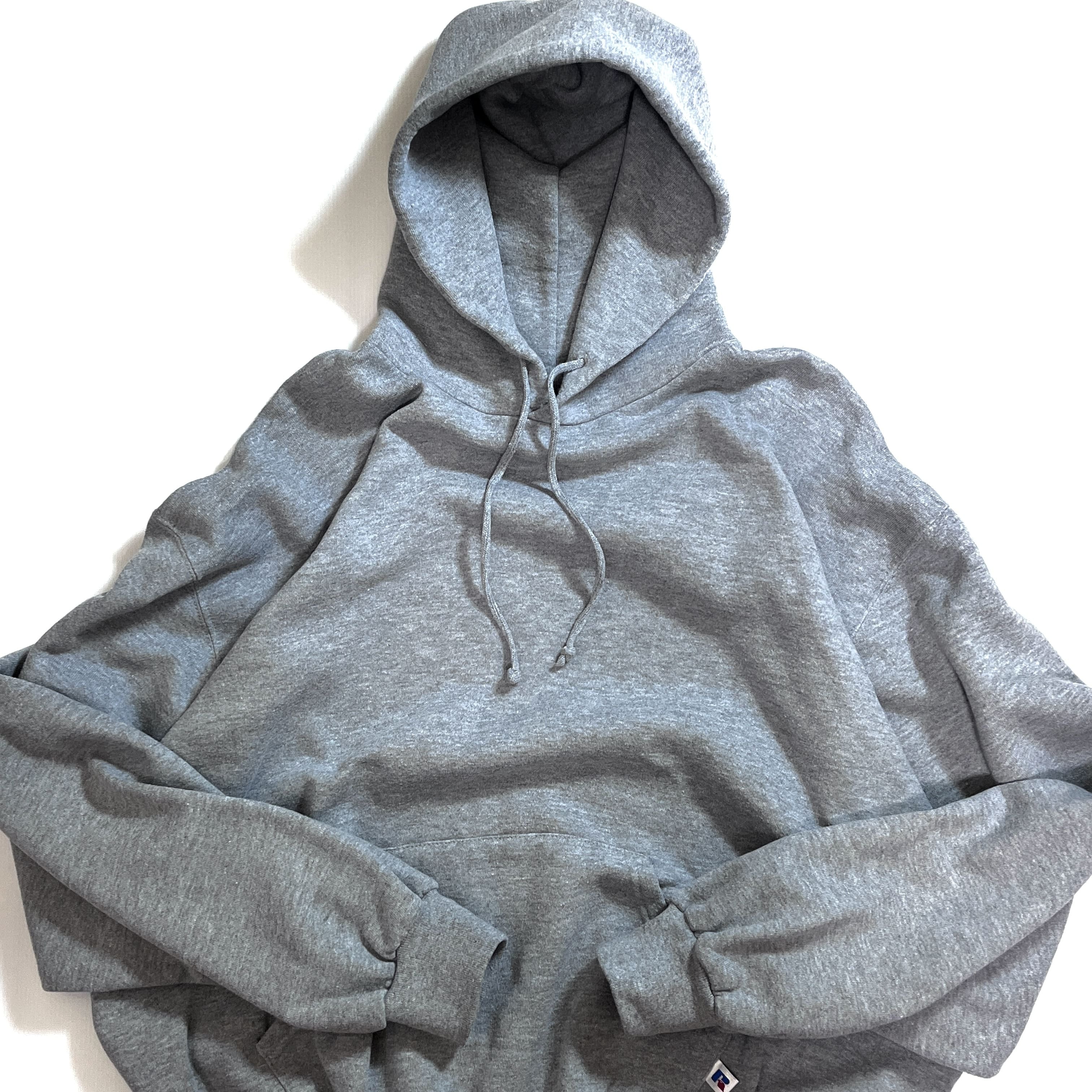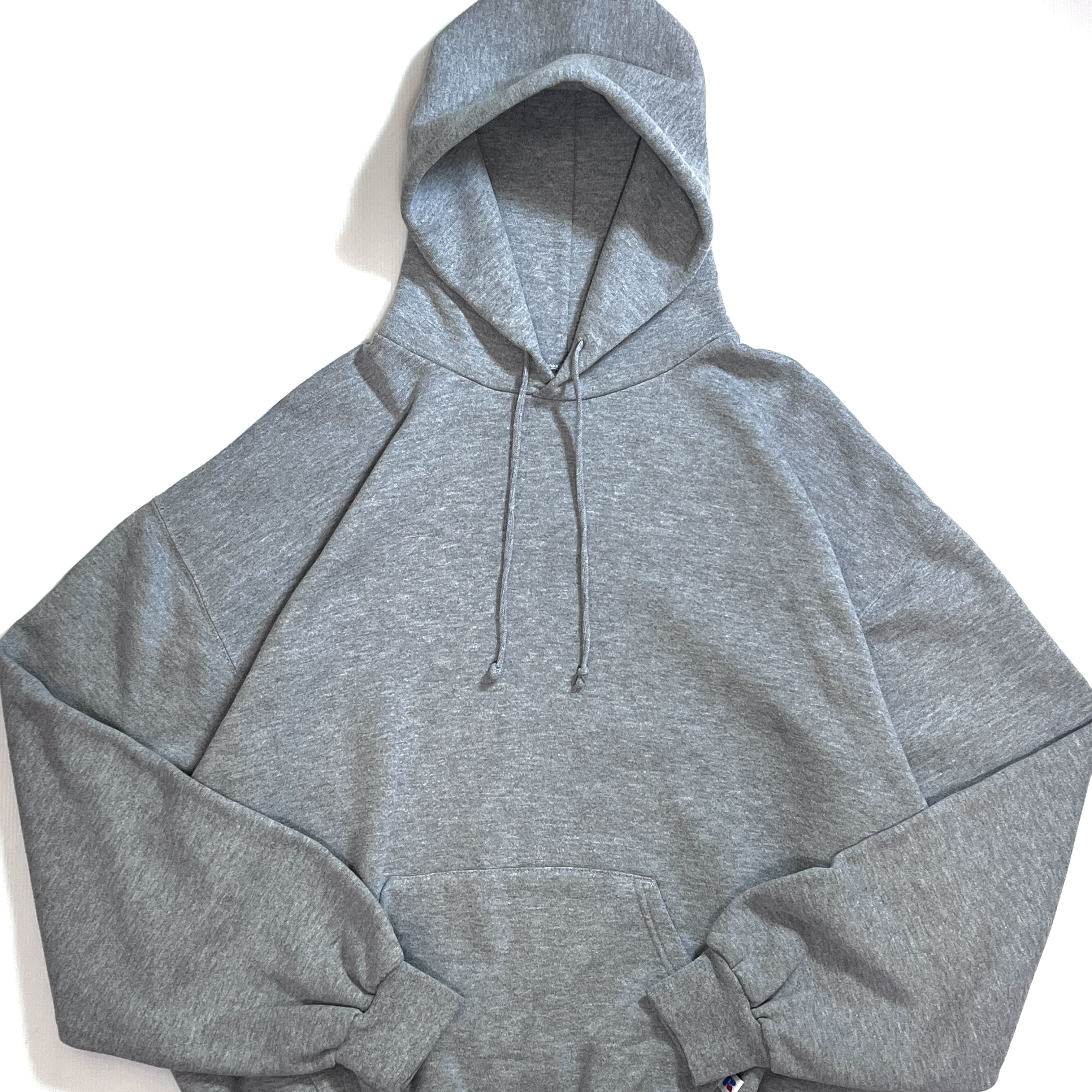 90s RUSSELL ATHLETIC XL GRAY PLAIN BLANK PULLOVER SWEAT HOODIE ラッセル XL 霜降りグレー 完全無地 ワンポイント刺繍ロゴピスネーム 裏起毛 プルオーバー スウェット パーカー フード フーディー メンズ トップス ソリッド ノームコア p25043174