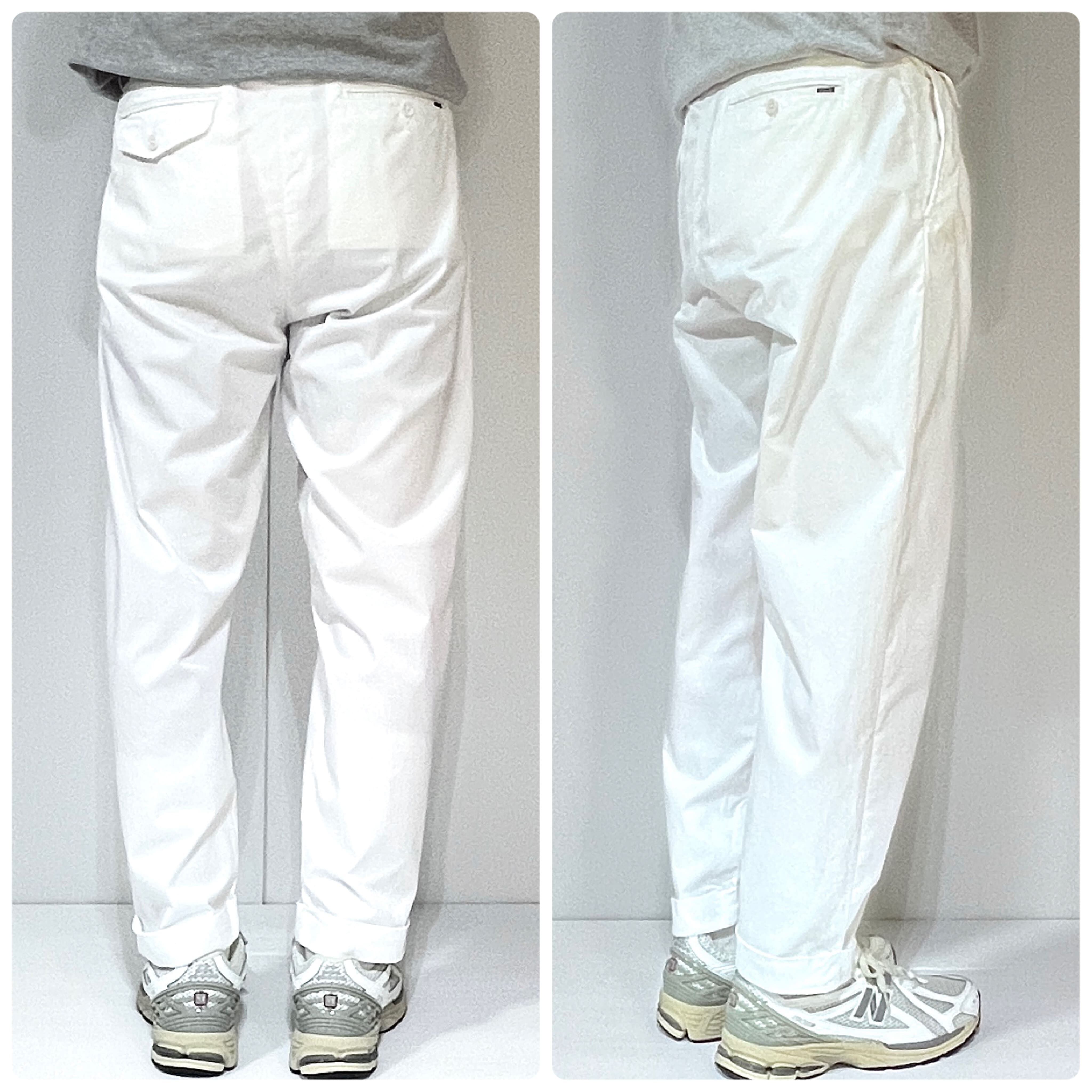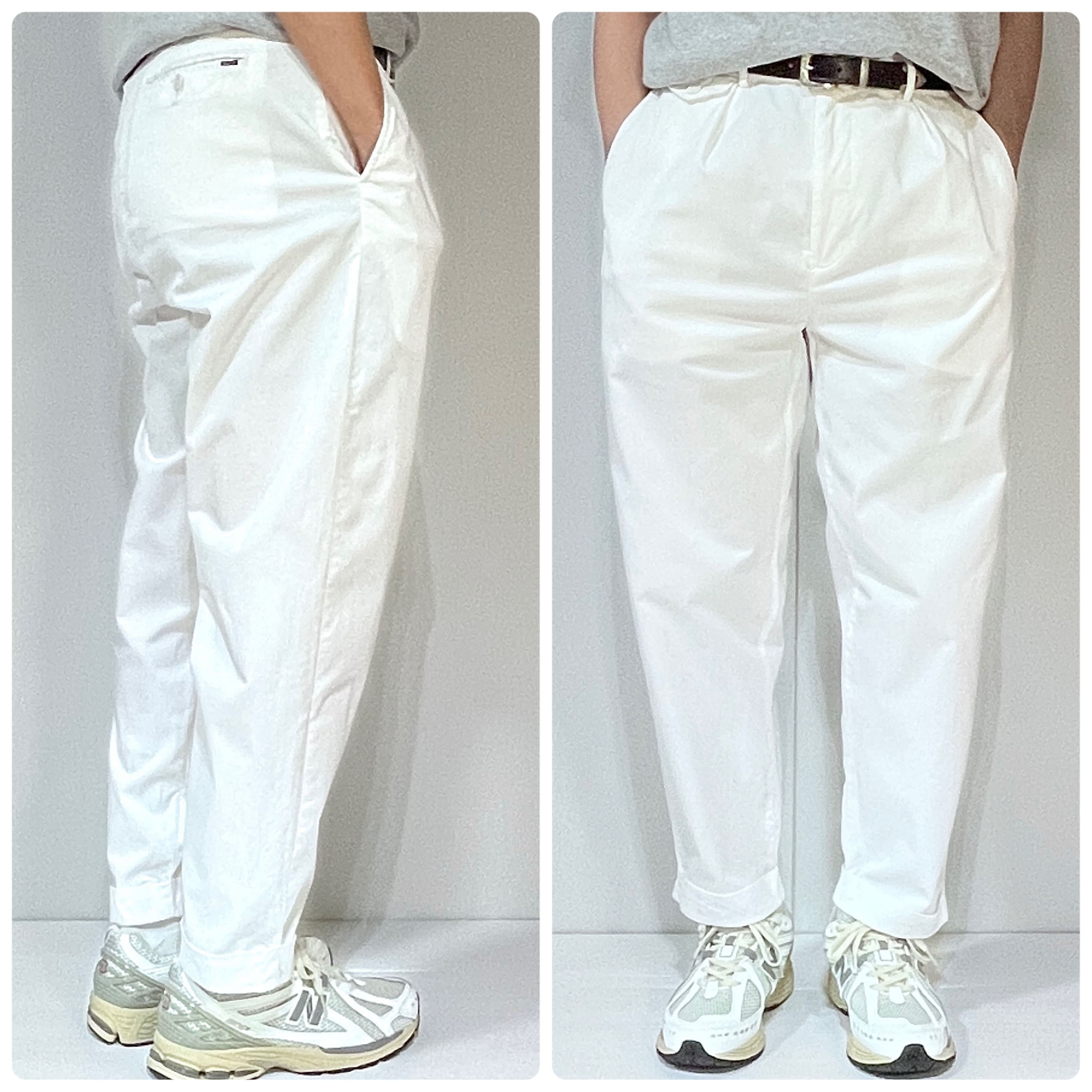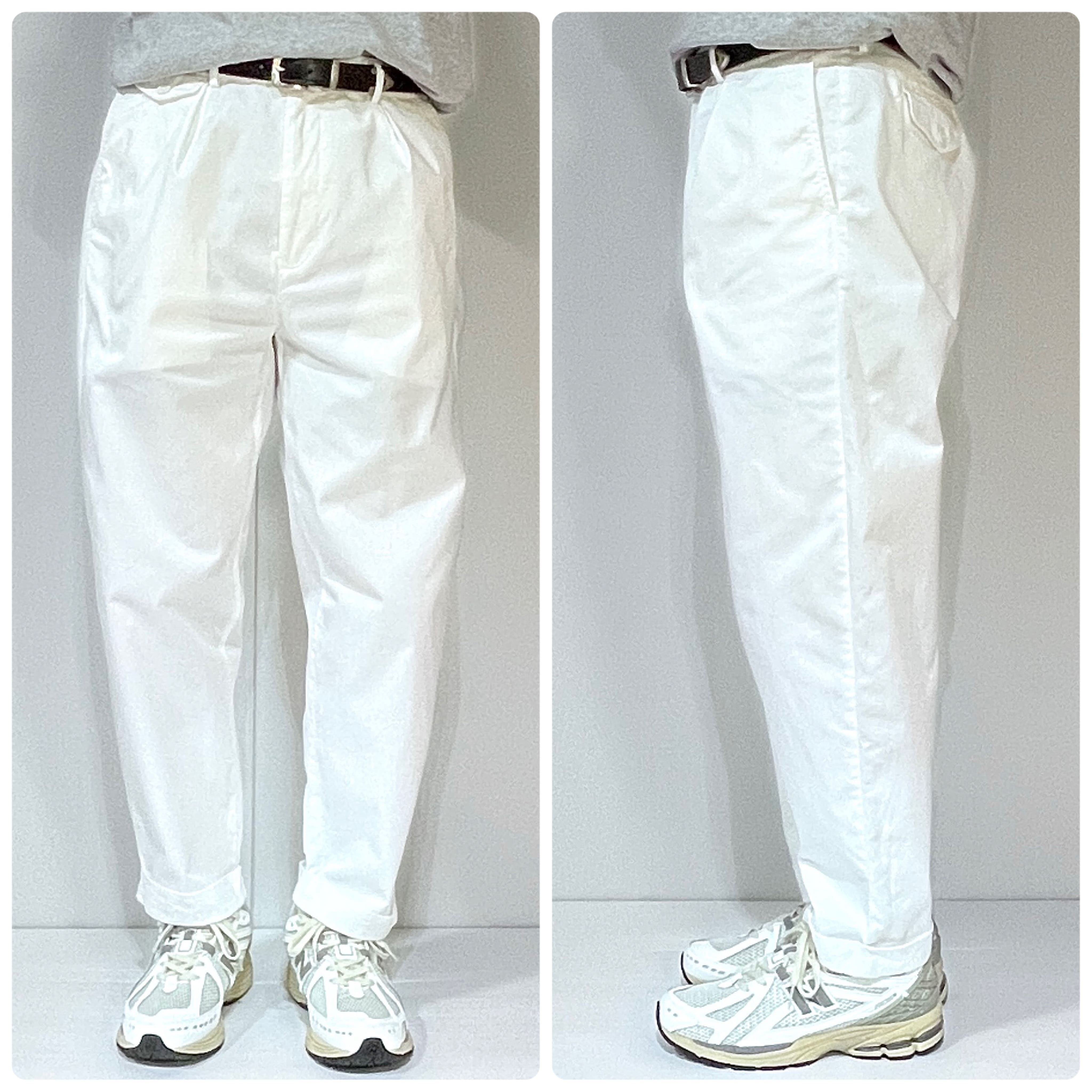 ・ワンタックで腰回りはゆったりで裾にかけてテーパードのかかったクロップ丈のストレッチライトオンスチノの「THE WYNTON PANT」