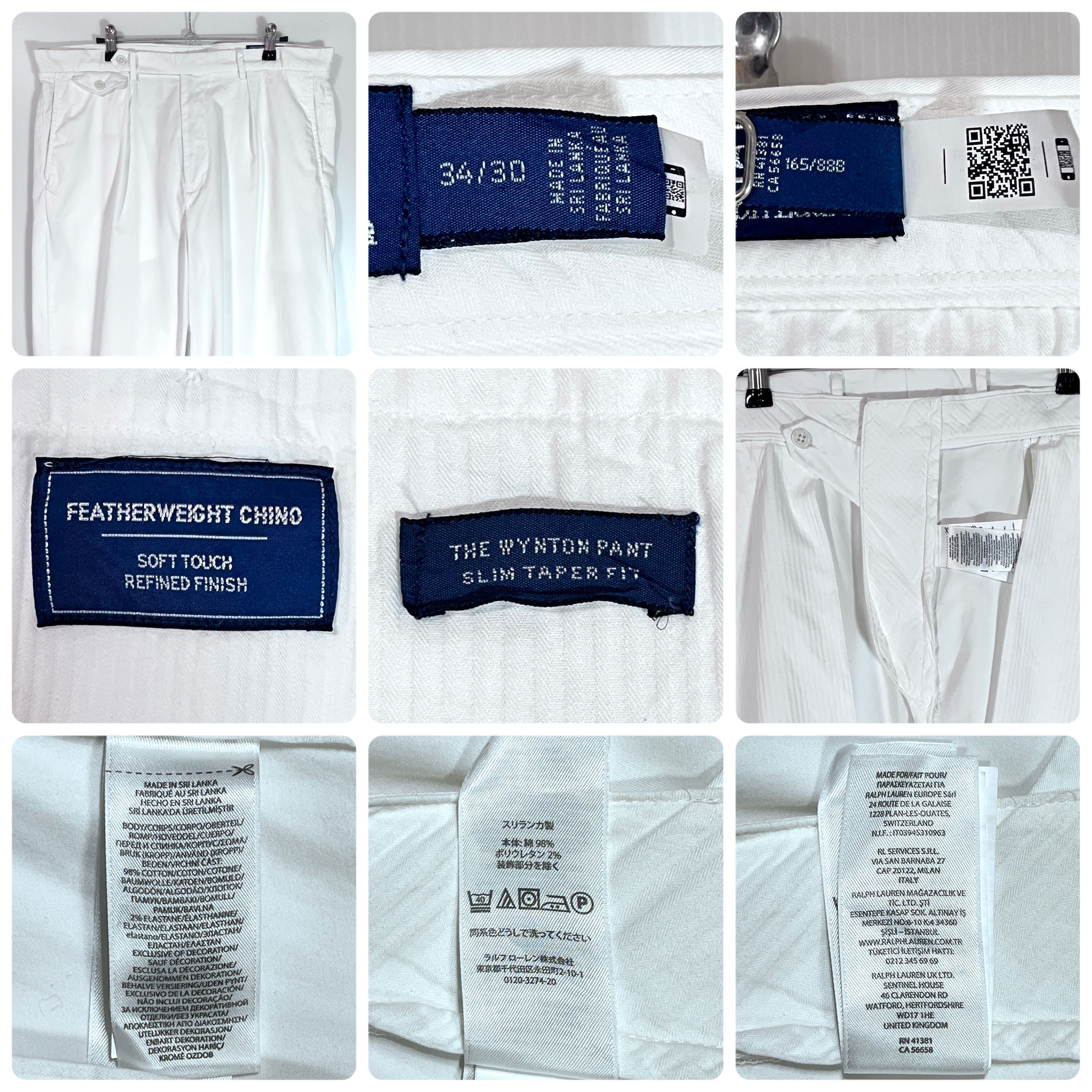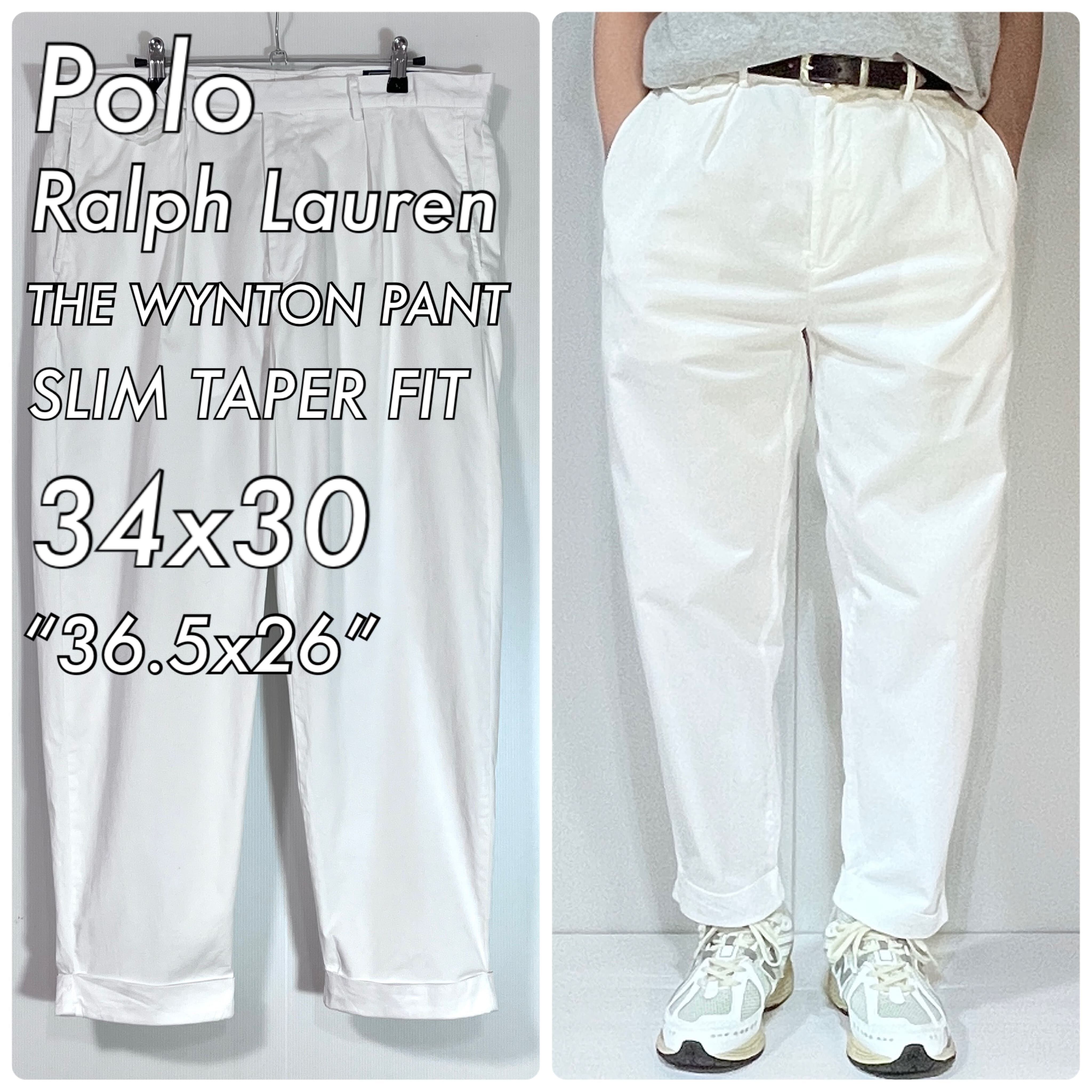 Polo by Ralph Lauren W34 L30 実寸W36.5 L26 FEATHERWEIGHT CHINO SOFT TOUCH REFINED FINISH THE WYNTON PANT SLIM TAPER FIT WHITE ポロバイラルフローレン ザ ファイトン パンツ ホワイト ワンタック 裾ダブル スリム テーパード チノパン スラックス ポロチノ p25083317