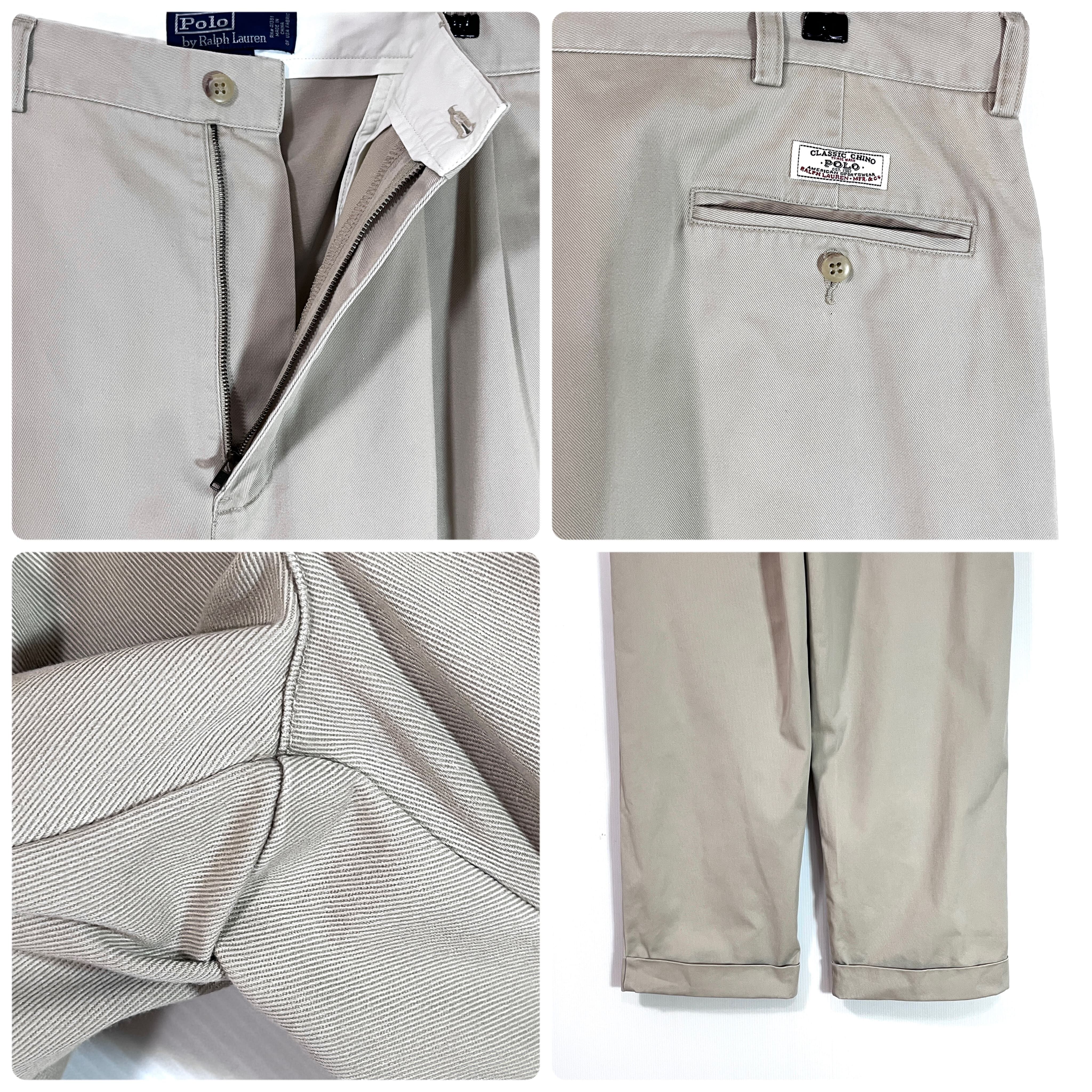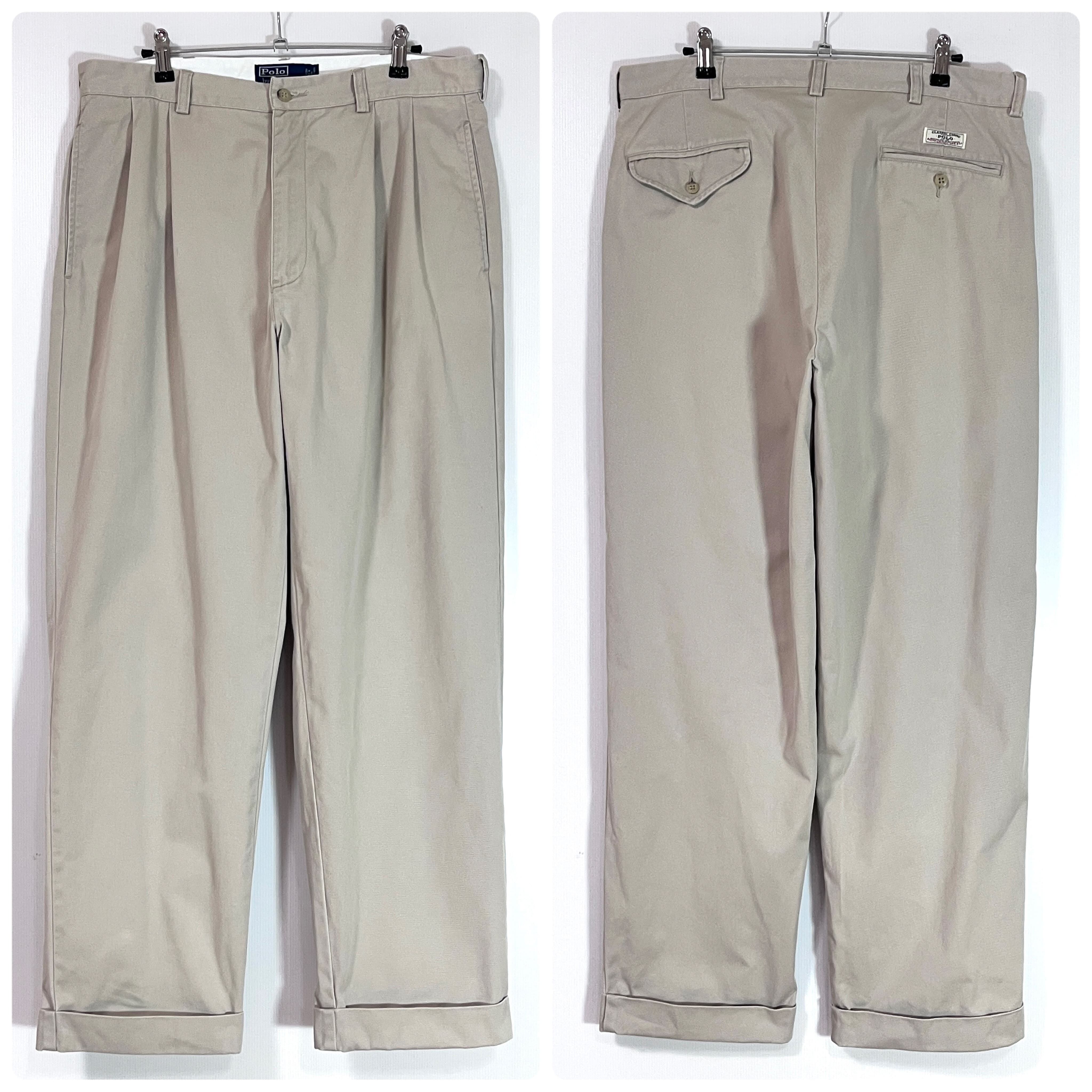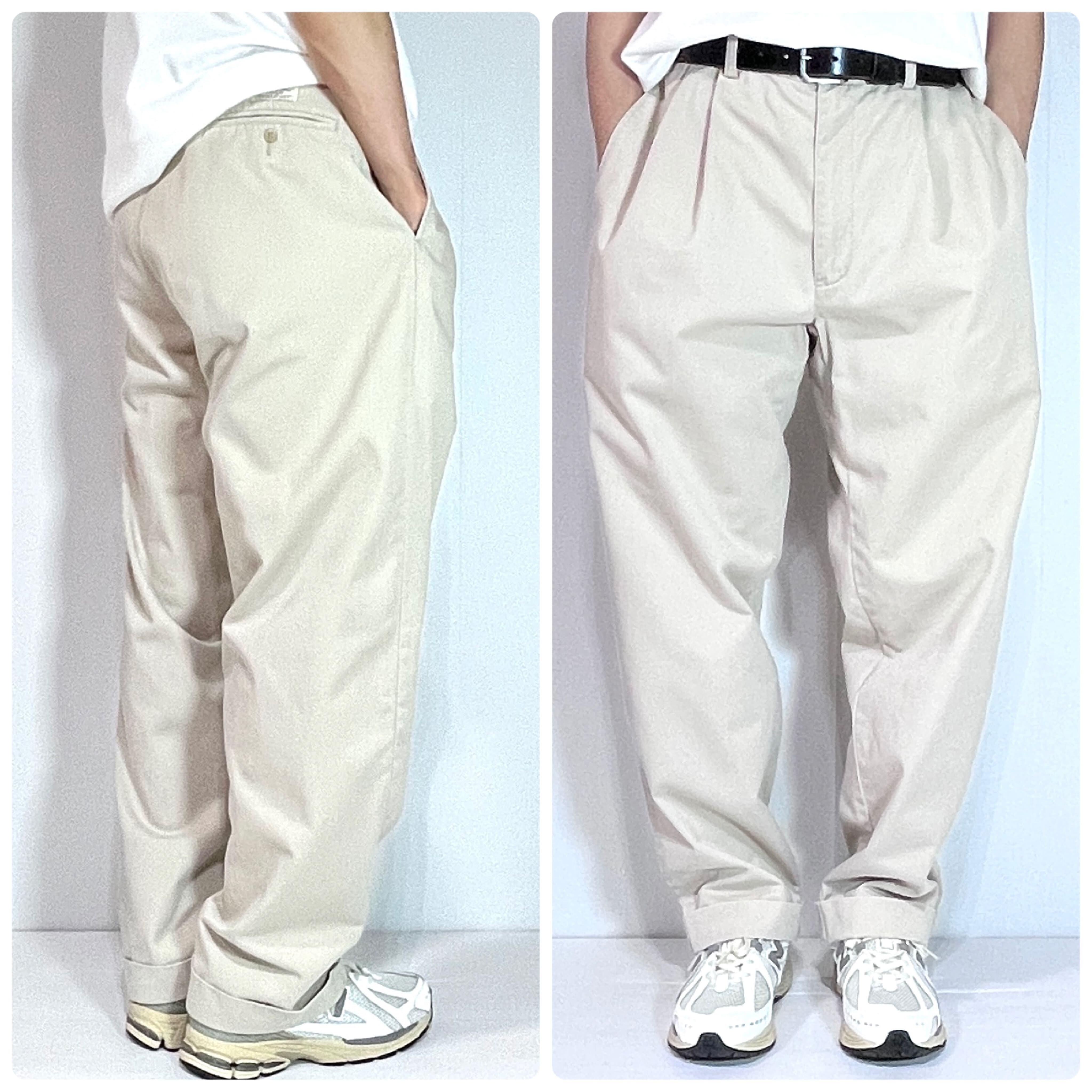 90s Polo by Ralph Lauren TWO-TUCK PLEATED CLASSIC CHINO HAMMOND PANT 100% COTTON ポロラルフローレン 2タック ツータック アウトプリーツ 裾ダブル チノパン スラックス パンツ ハモンドパンツ ワイド テーパード メンズ ボトムス ポロチノ クラシックチノ USAファブリック ゴールデンサイズ