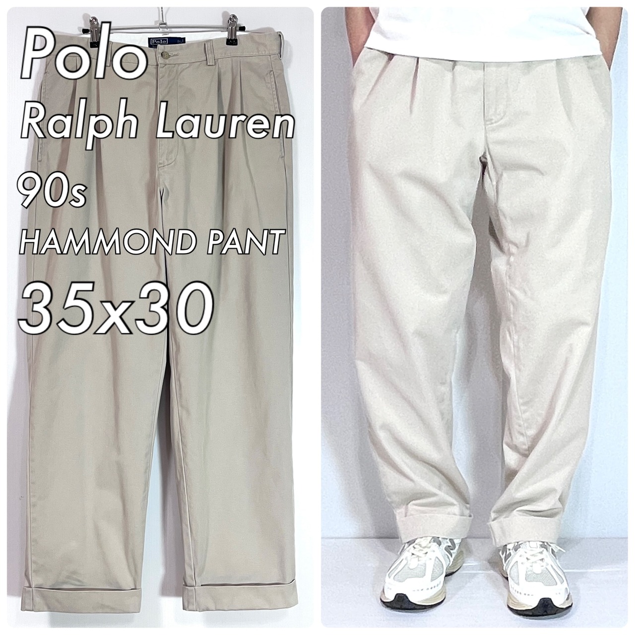 90s Polo by Ralph Lauren W35 L30 beige CLASSIC CHINO HAMMOND PANT 100% COTTON ポロラルフローレン ツータック チノパン ベージュ スラックス ハモンドパンツ ワイドテーパード メンズ ボトムス ポロチノ クラシックチノ USAファブリック ゴールデンサイズ p25083321 | June