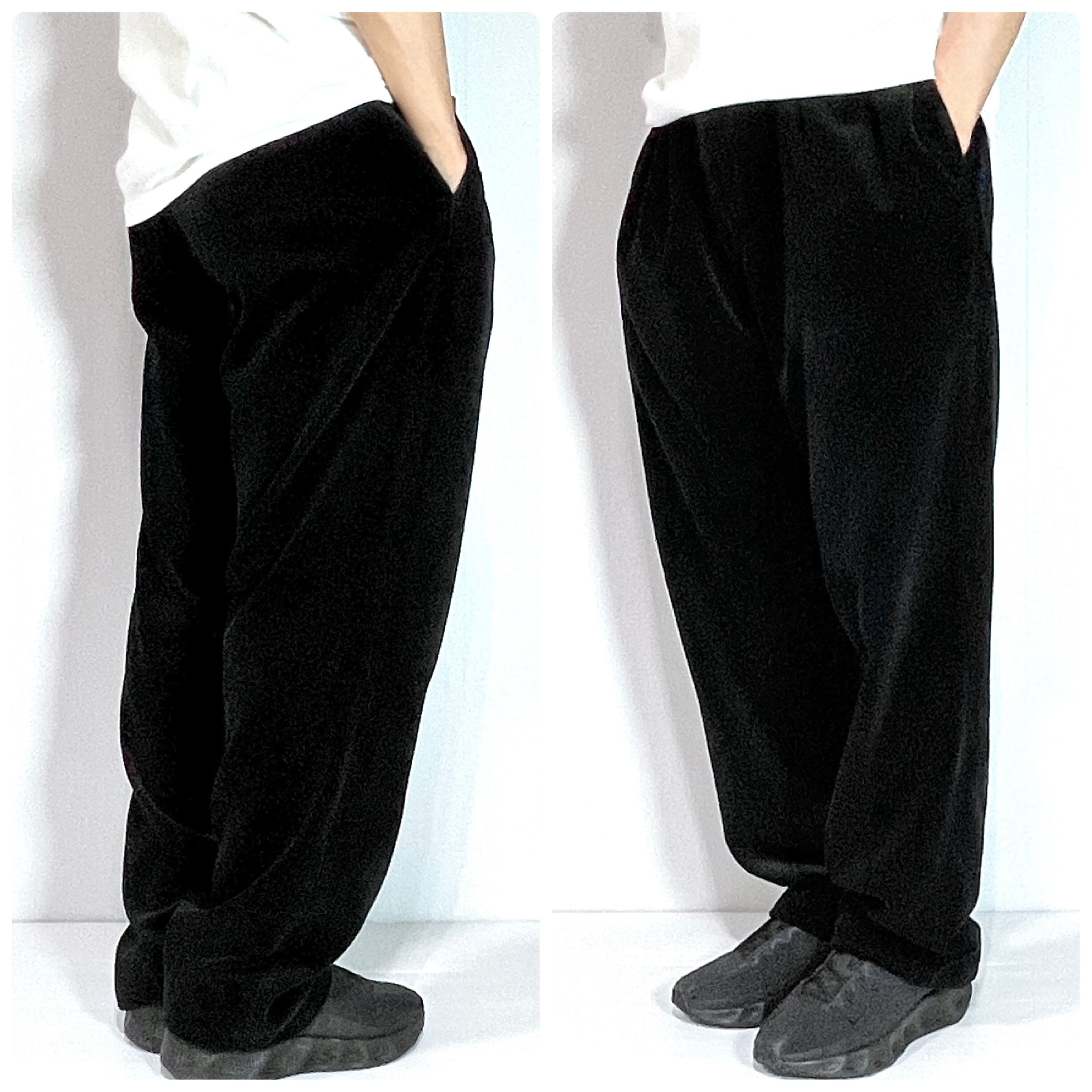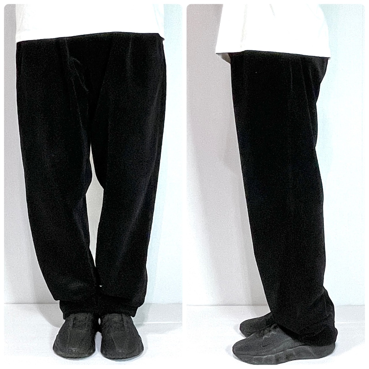 ・着用モデル176cm65kgでウエストはベルトで絞って、レングスは内側にワンロールして裾に溜めてワイドバギーに着用できるサイズ感です