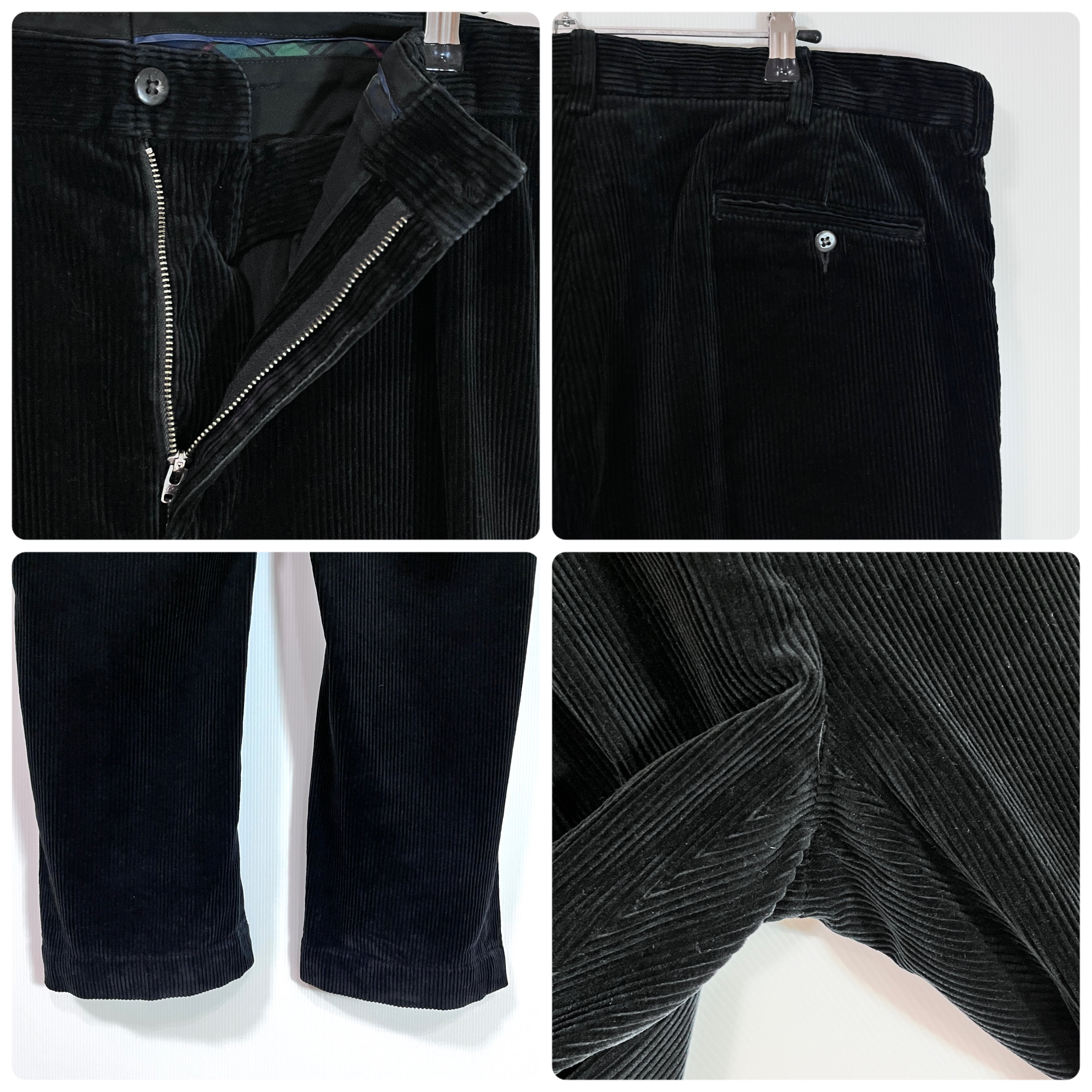 ・YKKジップ、玉縁のバックポケット、タータンチェックのウエストのライニングテープ、超希少カラーのブラックのコーデュロイ