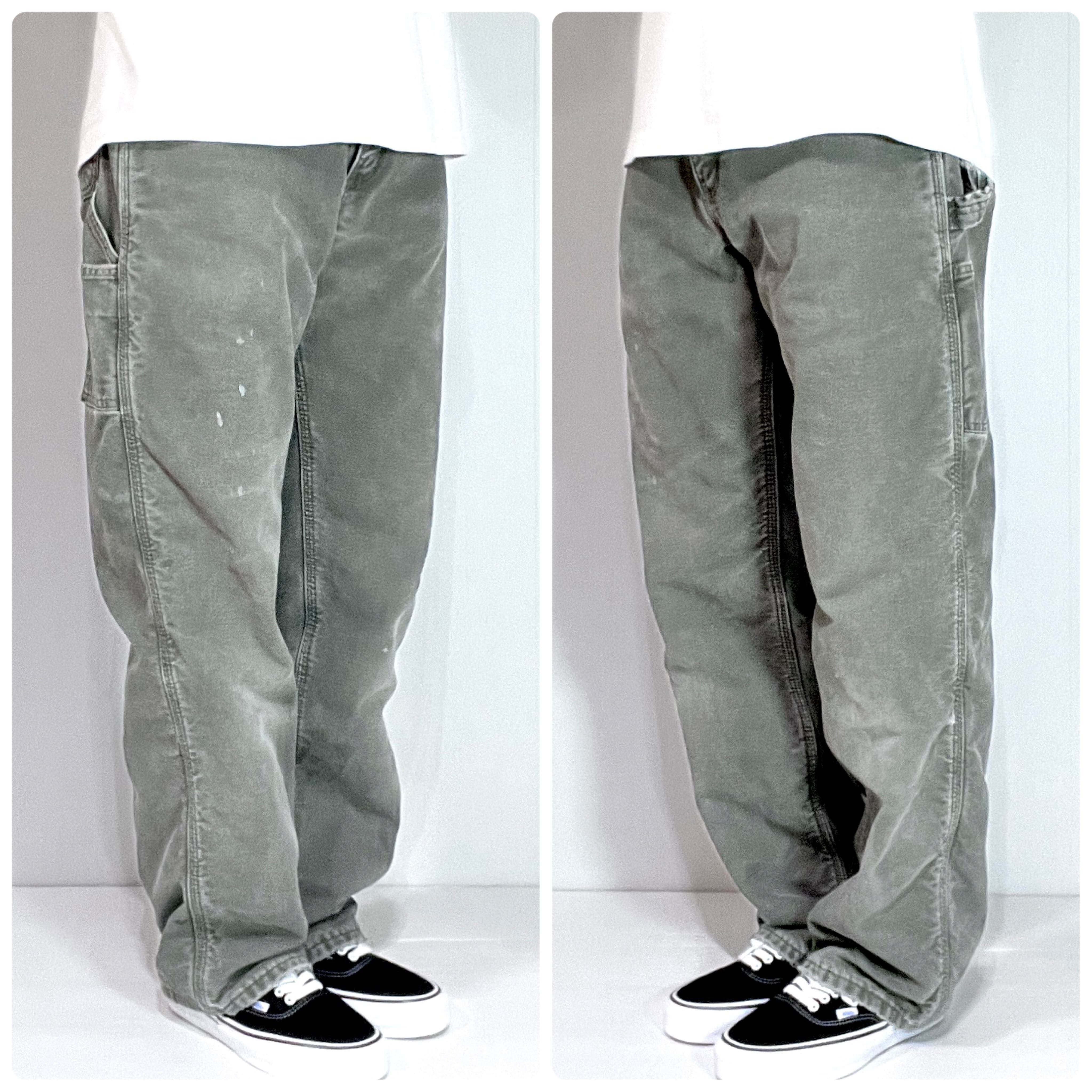 00s USA製 美フェード Carhartt W31 L32 実寸W32 L32 ダック ペインターパンツ B111 MOS モスグリーン オリーブグリーン カーキ Flannel Liner Heavyweight Duck Painter Pants レザーピスネーム ネルライナー 肉厚 ヘビーウェイト コットン ダック地 ワークパンツ グッドフェード リアルワーク 美色 ボロ p25083338 | June