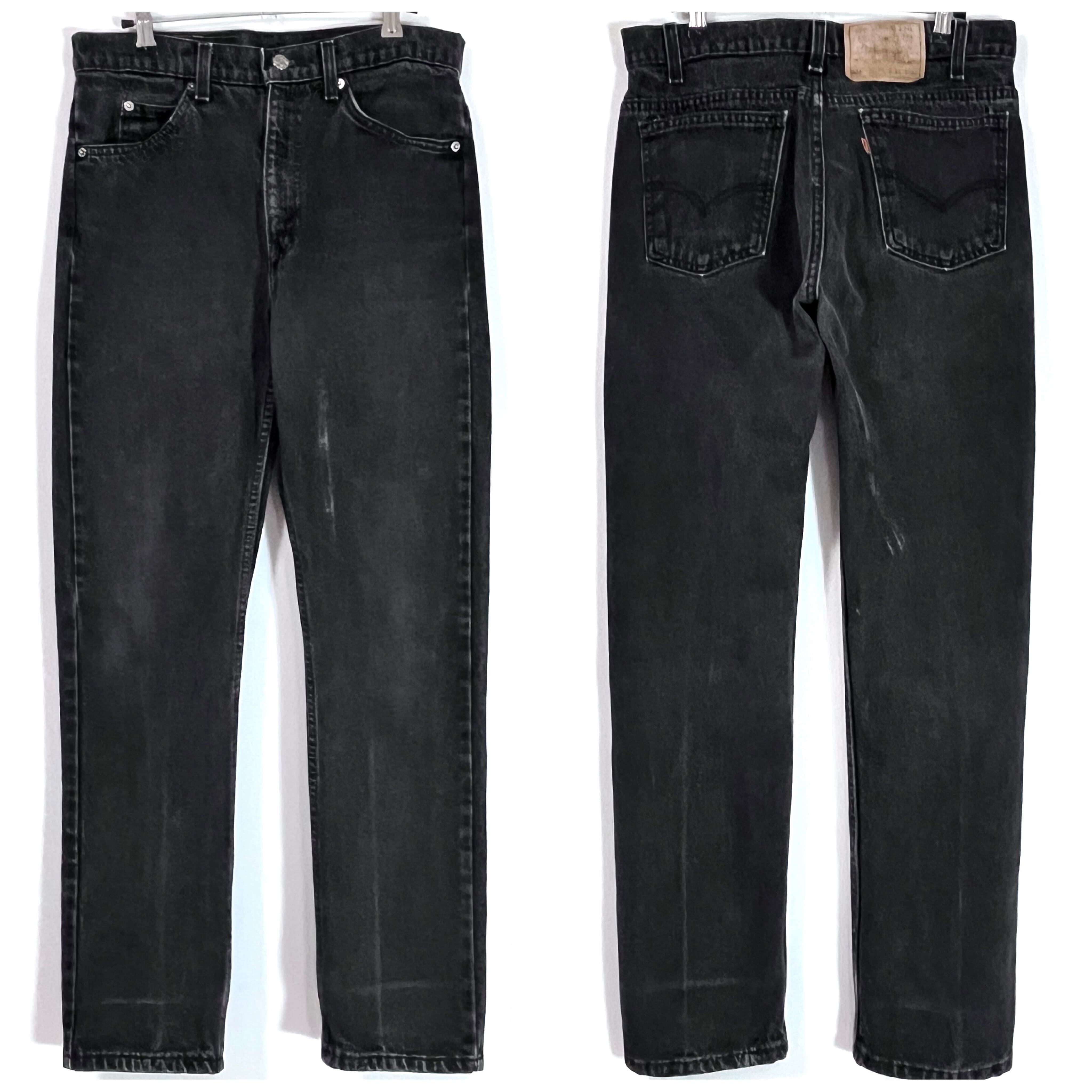 90s USA製 Levi's リーバイス 505 W31 L30 後染め ブラックジーンズ ブラックデニム サルファブラック レギュラーフィット ストレート デニム ジーンズ パンツ ジーパン オリジナルレングス 希少サイズ 美フェード 美色 墨黒 REGULAR FIT STRAIGHT LEG BLACK JEANS DENIM PANTS p25083345 | June