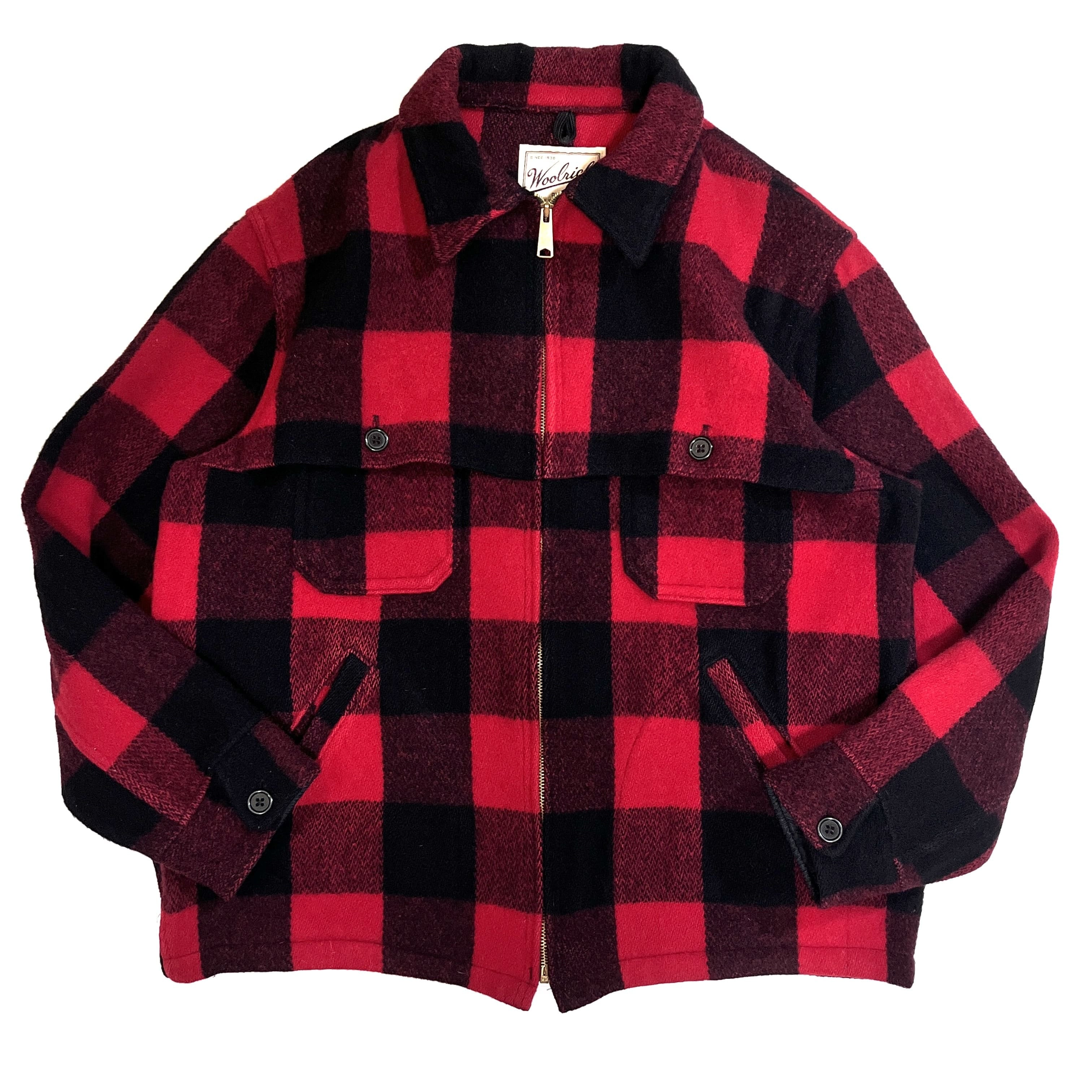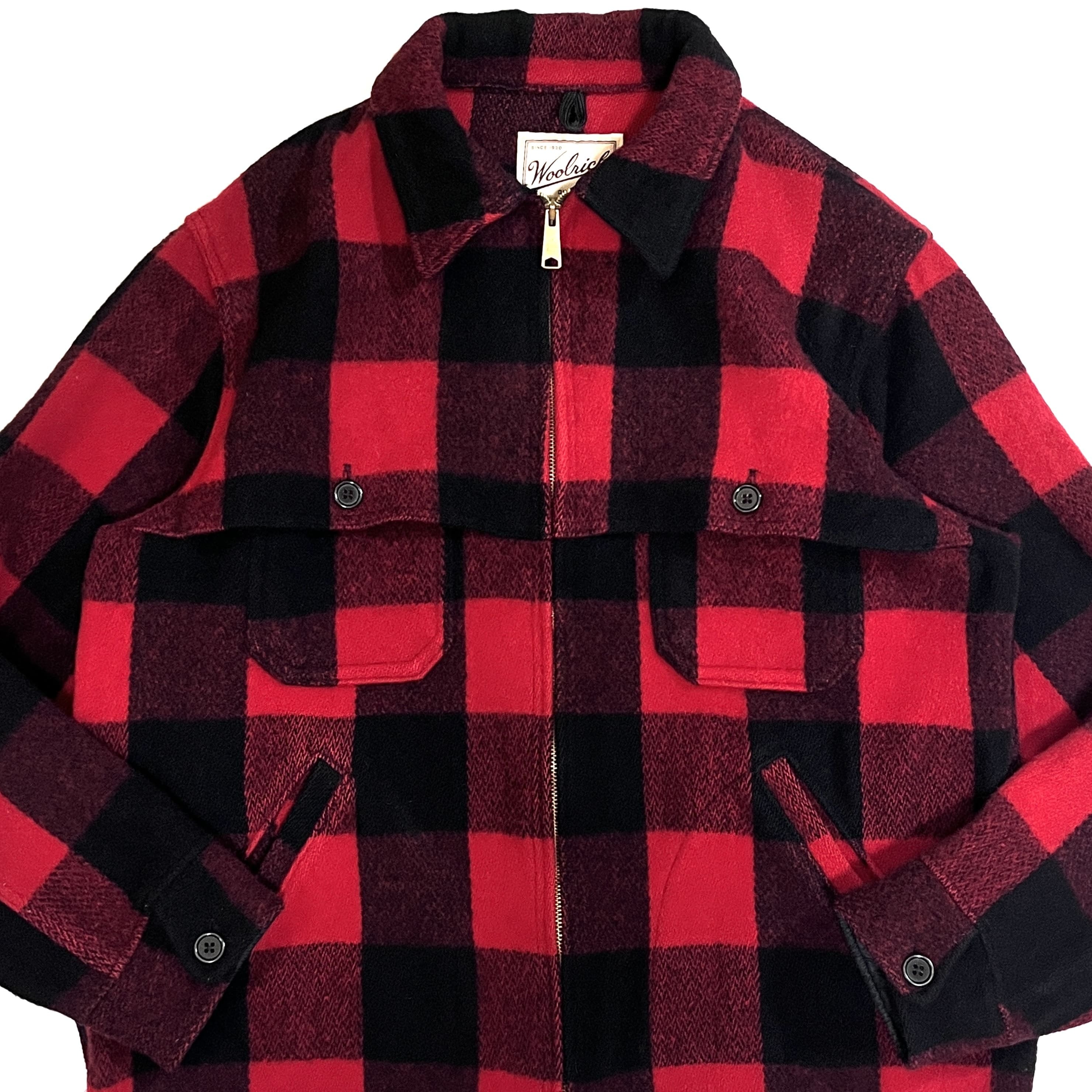 美品 USA製 90s Woolrich Buffalo Check Full Zip Heavyweight Wool Mackinaw Jacket Men's Large ウールリッチ ブロックチェック ジップアップ ウール マッキーノ ブルゾン ジャケット バッファローチェック ヘビーウェイト メルトン ウールジャケット ハンティングジャケット シャツジャケット ボックスシルエット 神シルエット ウールマーク 1990年代 レッド ブラック 赤黒 red black p25103348 | June