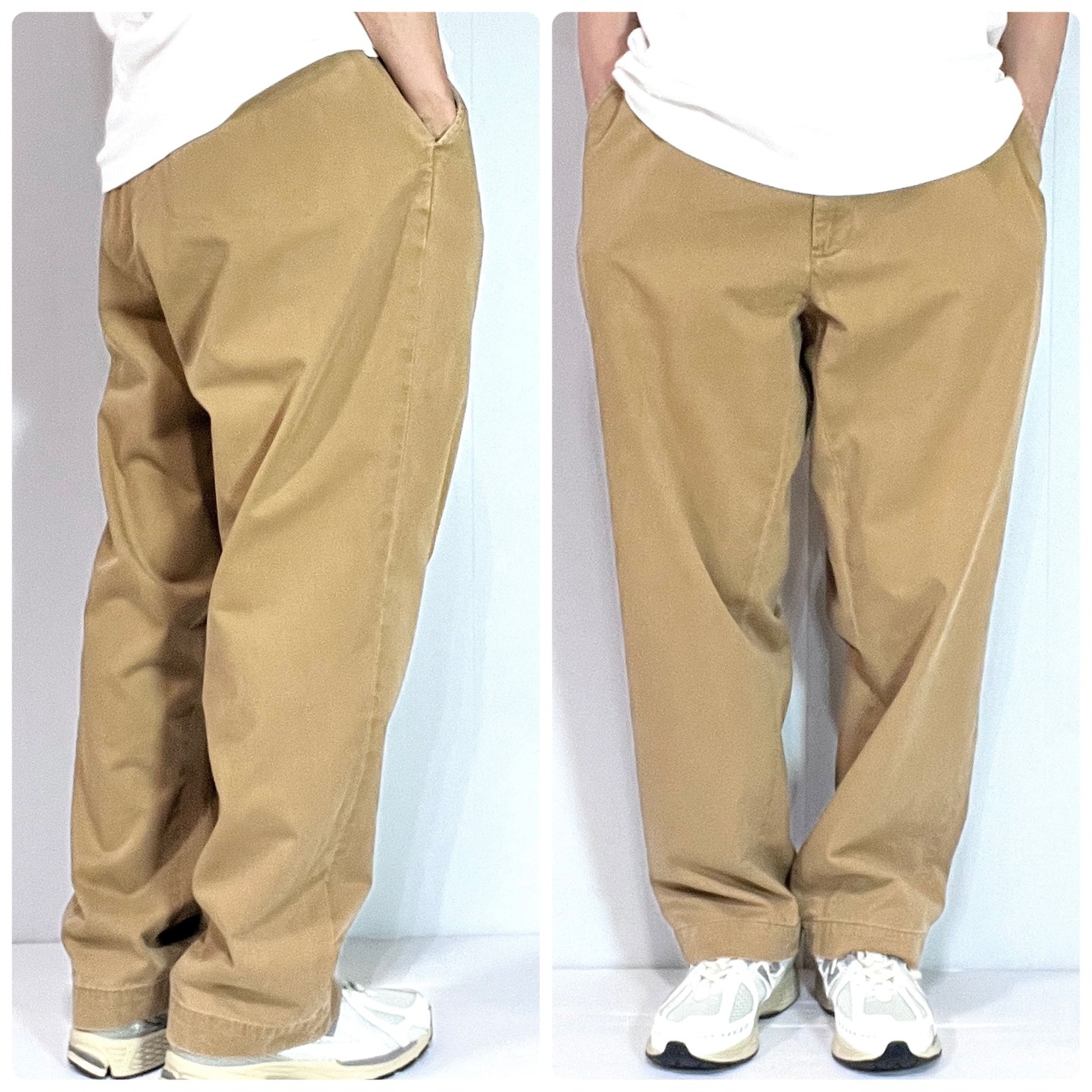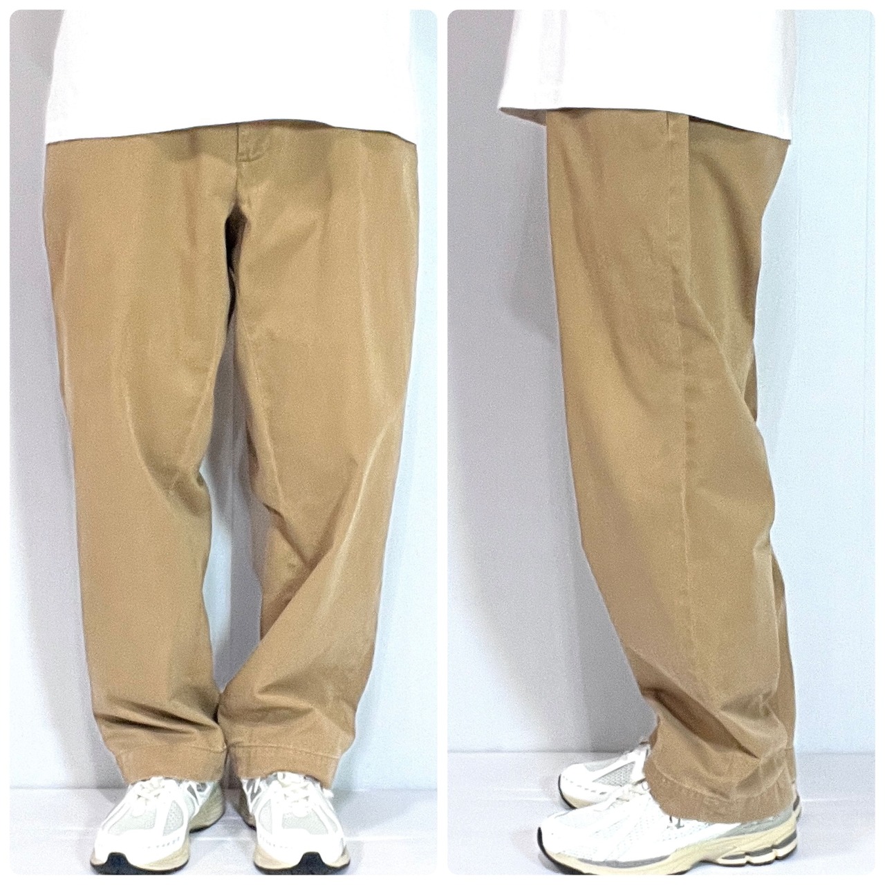 ・着用モデル176cm65kgでウエストはベルトで絞って、レングスは裾に溜めてゆったりワイドバギーに着用できるサイズ感です
