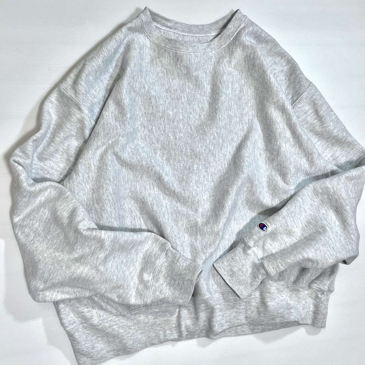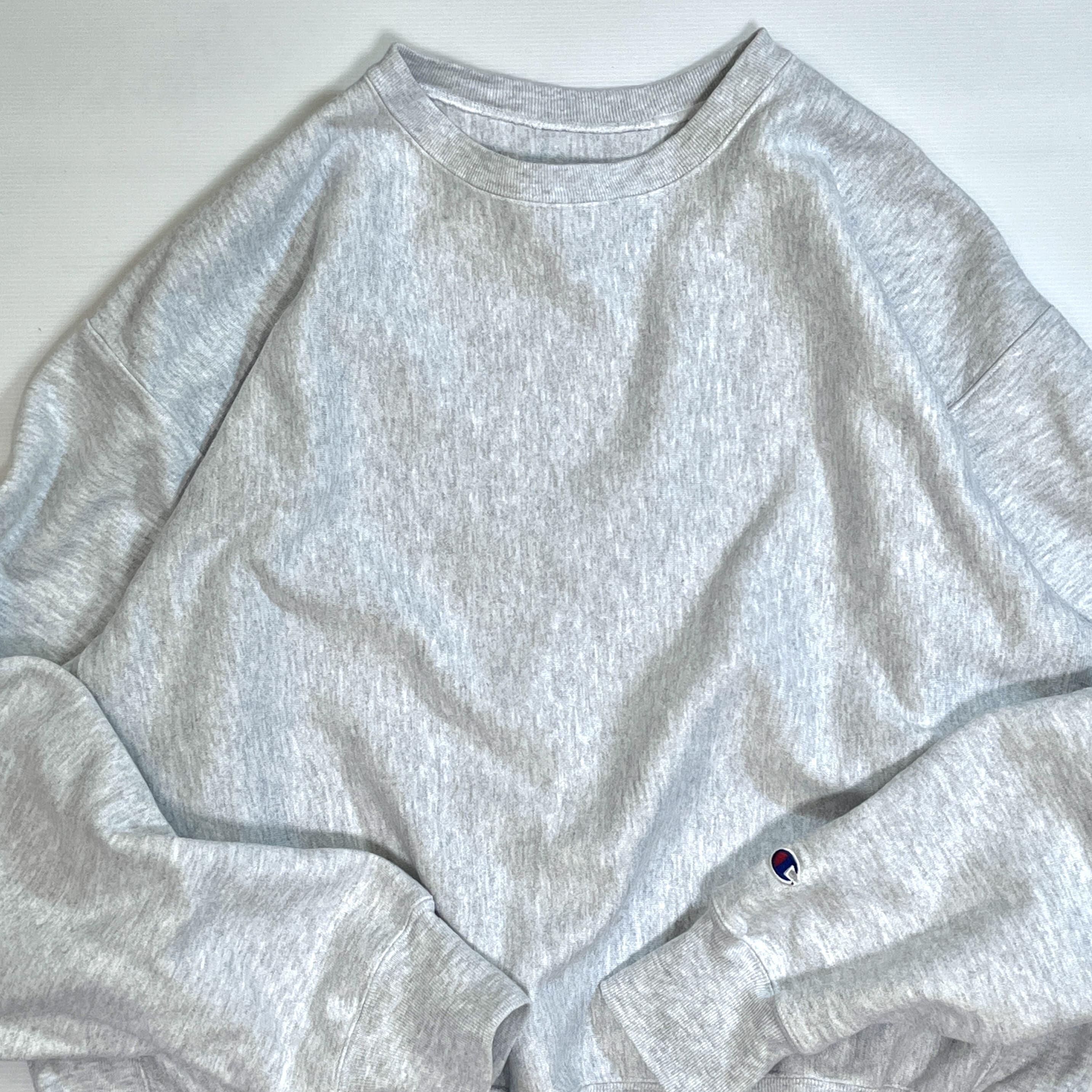美品 00s Champion PREMIUM REVERSE WEAVE チャンピオン プレミアム リバースウィーブ 完全無地 目無し XXL ヘザーグレー 霜降りグレー 目なし 肉厚 ヘビーウェイト クルーネック スウェット トレーナー 脇ガゼット メンズ トップス プレーン ソリッド 2000年代 Y2K 短丈 ボックス 神シルエット grey p25103370