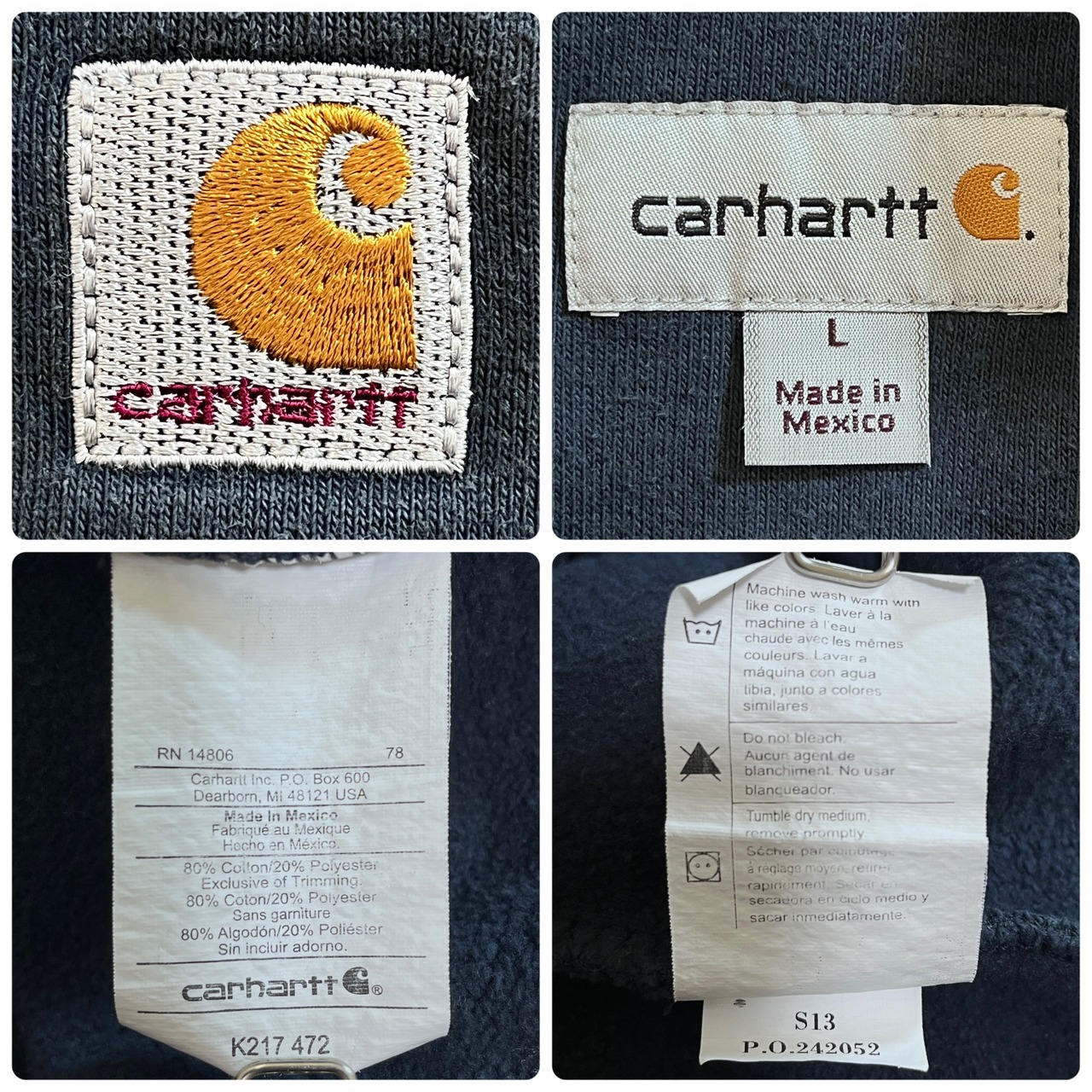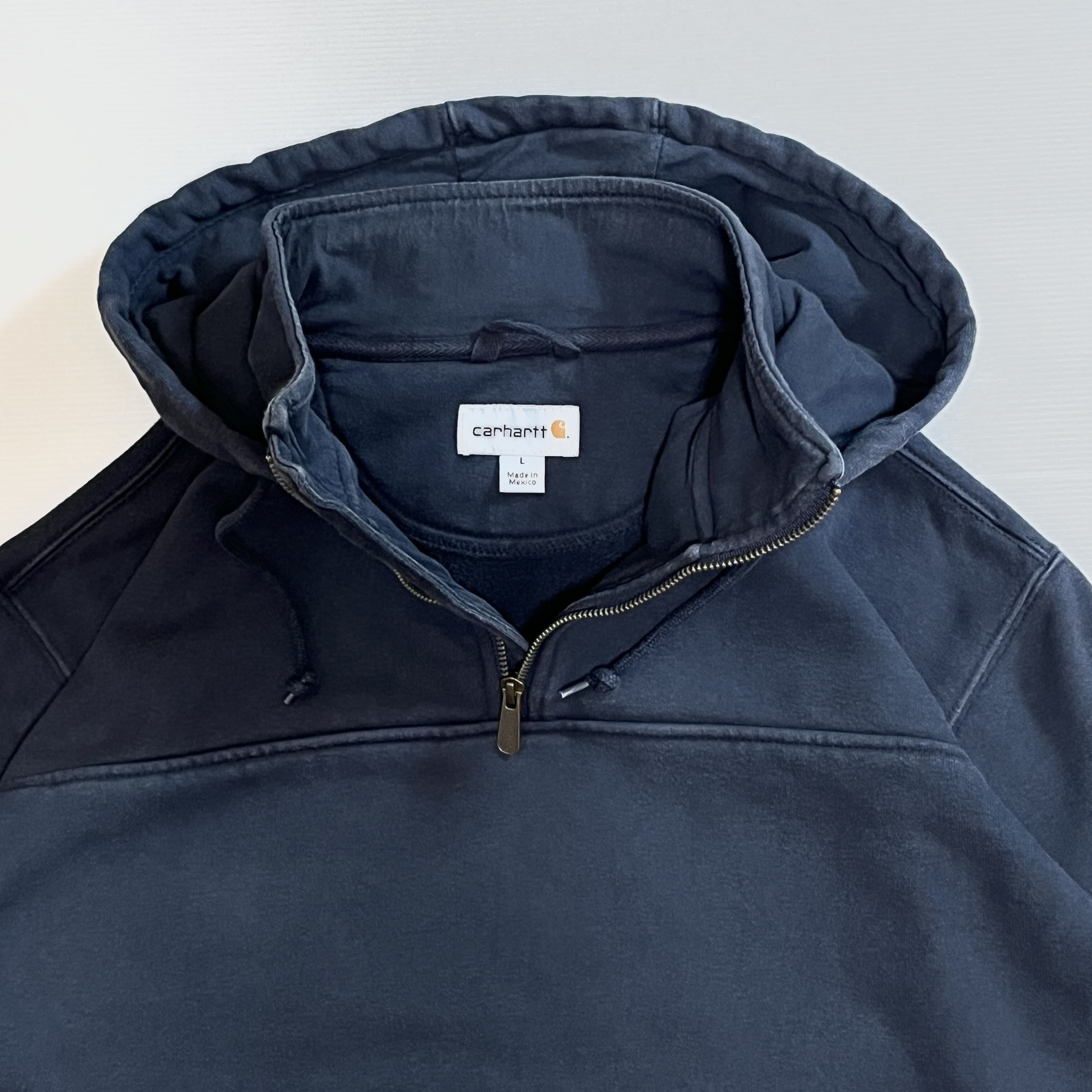 Carhartt カーハート K217 472 ヘビーウェイト ハーフジップ スウェット パーカー ネイビー L LARGE クォータージップ 超肉厚 裏起毛 アノラック フード フーディー メンズ トップス ソリッド ノームコア ワンポイント刺繍ロゴ 10s 2013年製 HEAVYWEIGHT QUARTER-ZIP 1/4 ZIP Paxton Hooded Zip Mock Sweatshirt S13 USA企画 p25103383