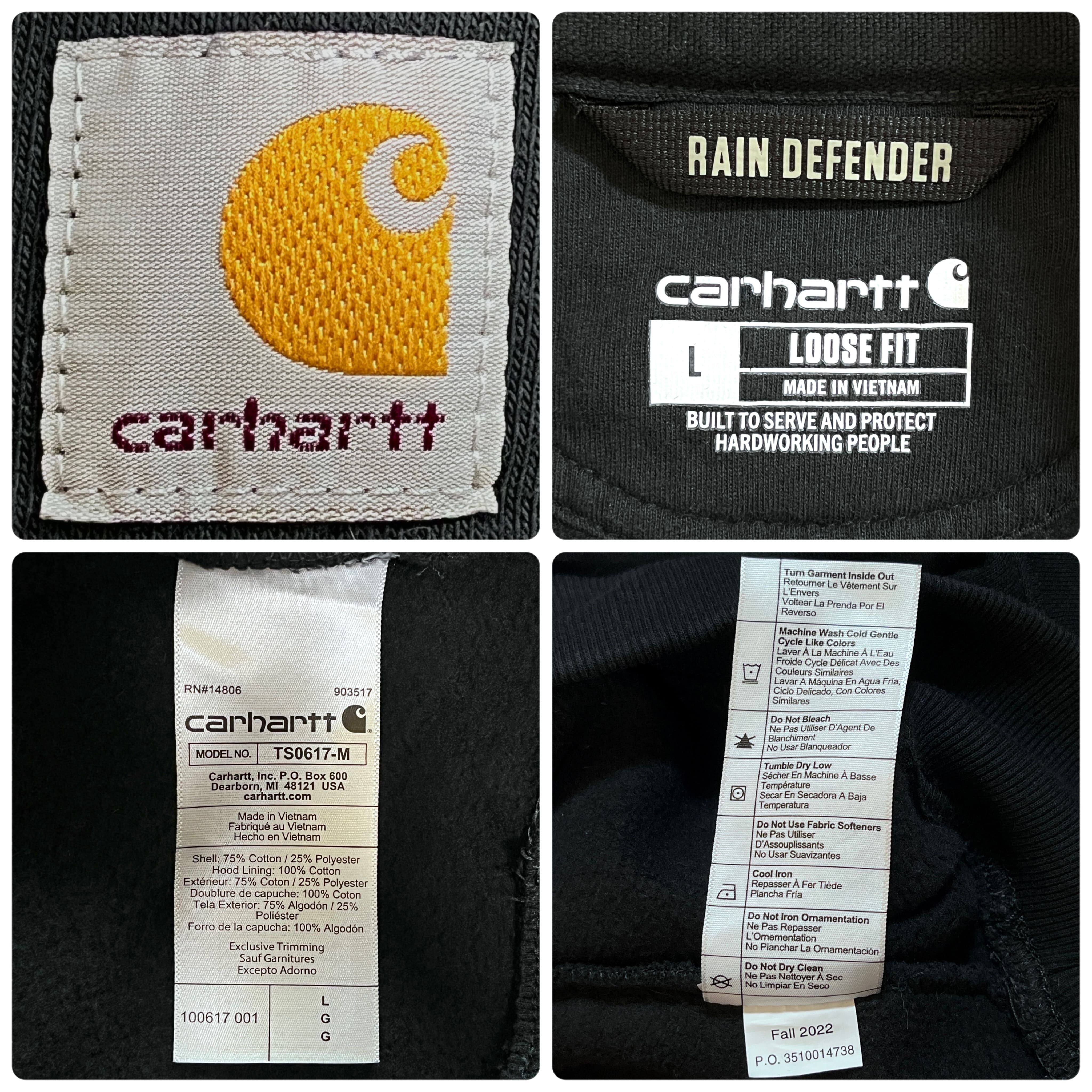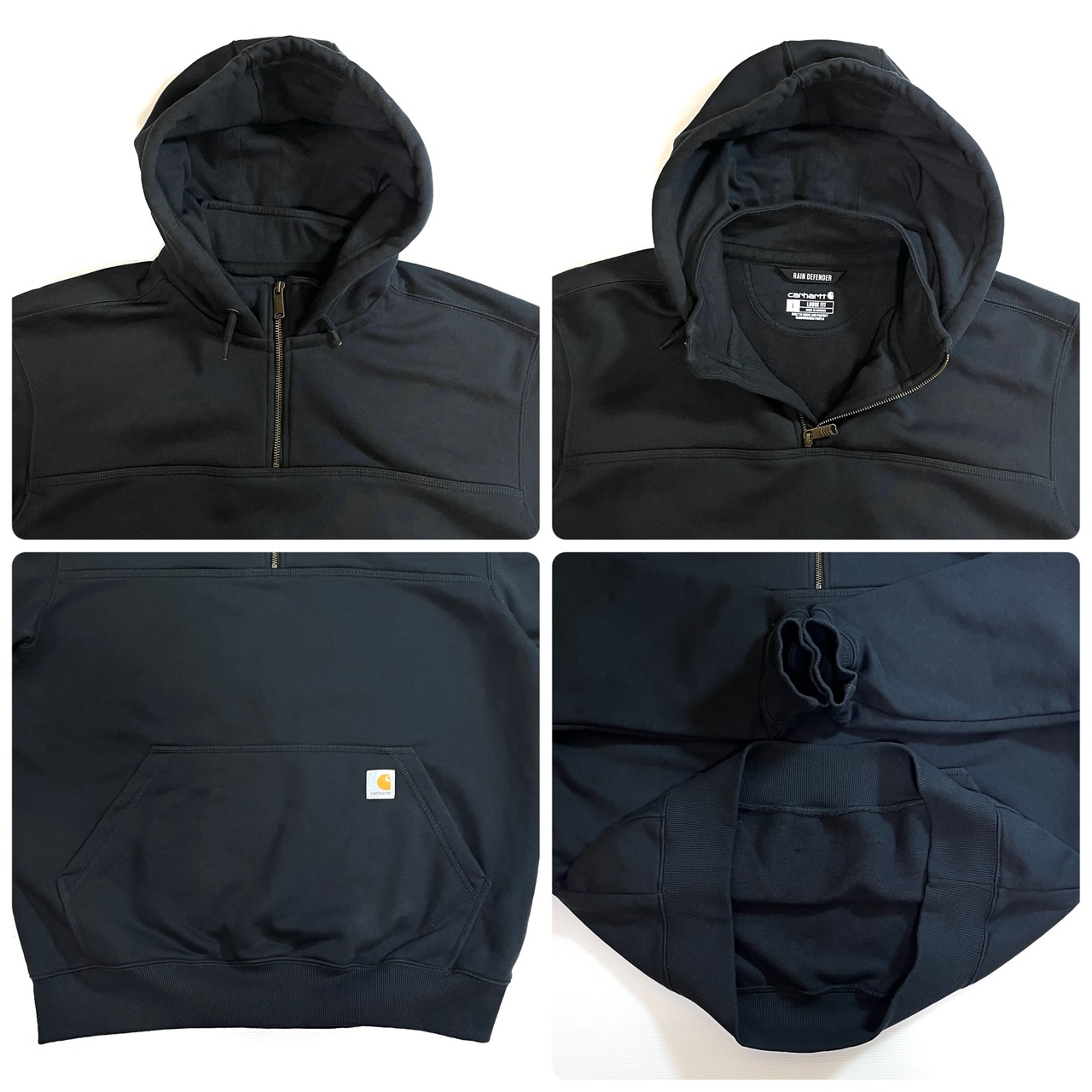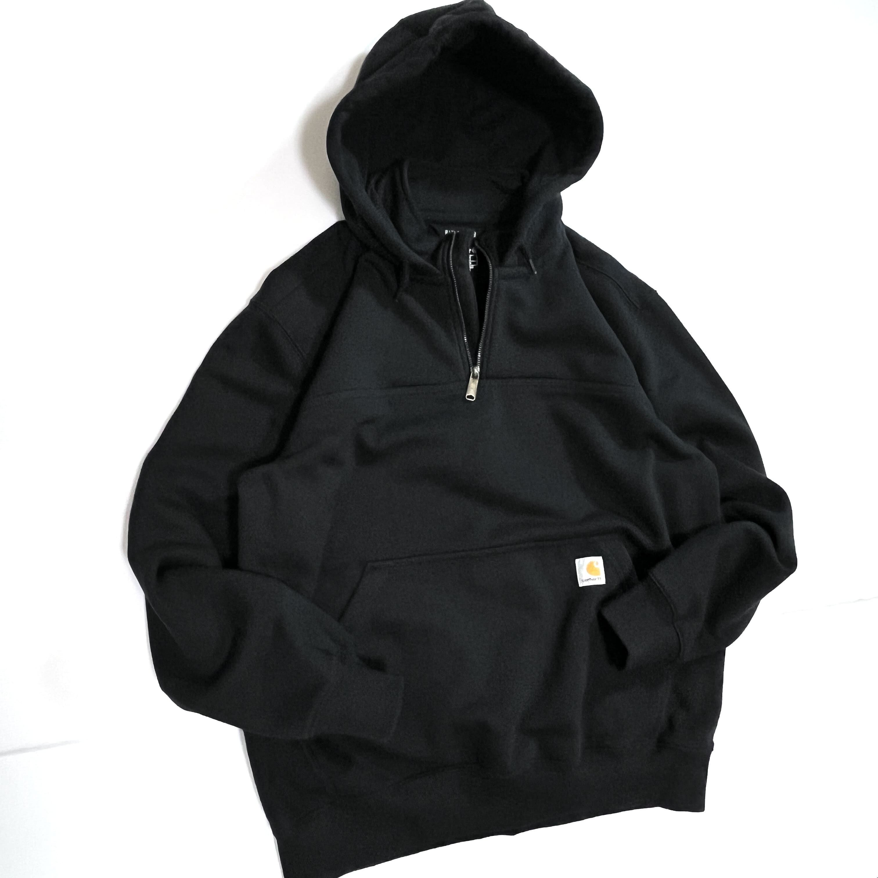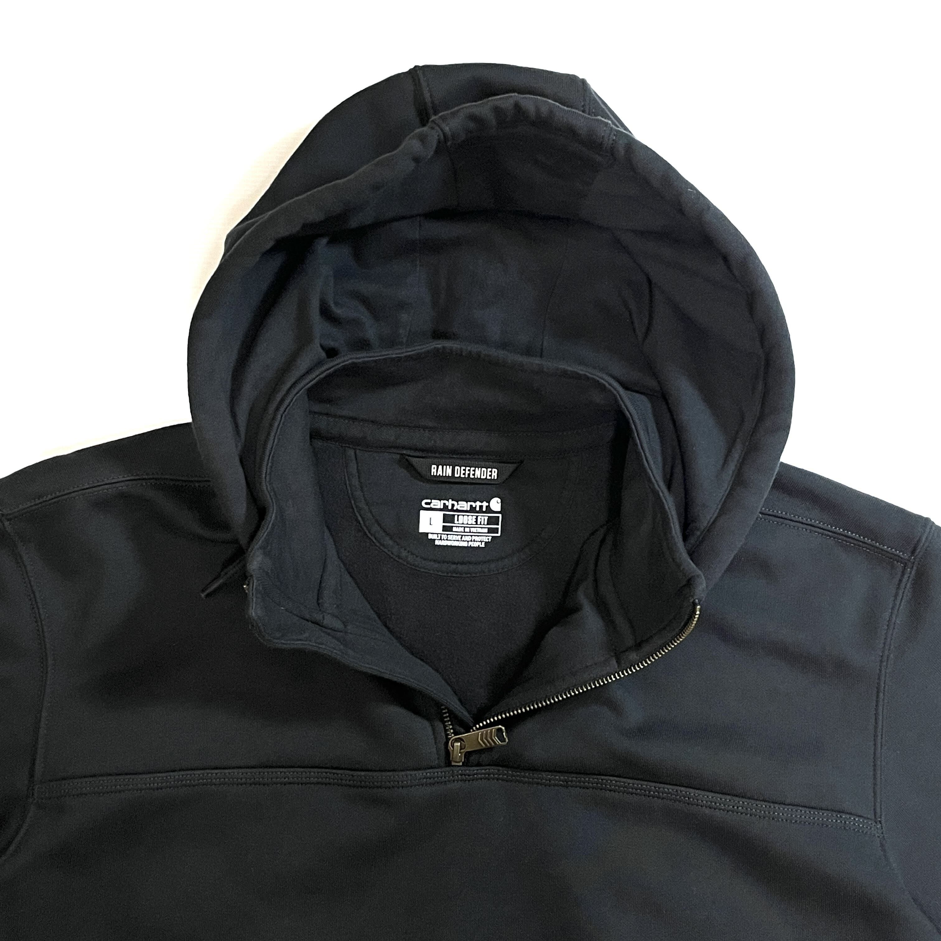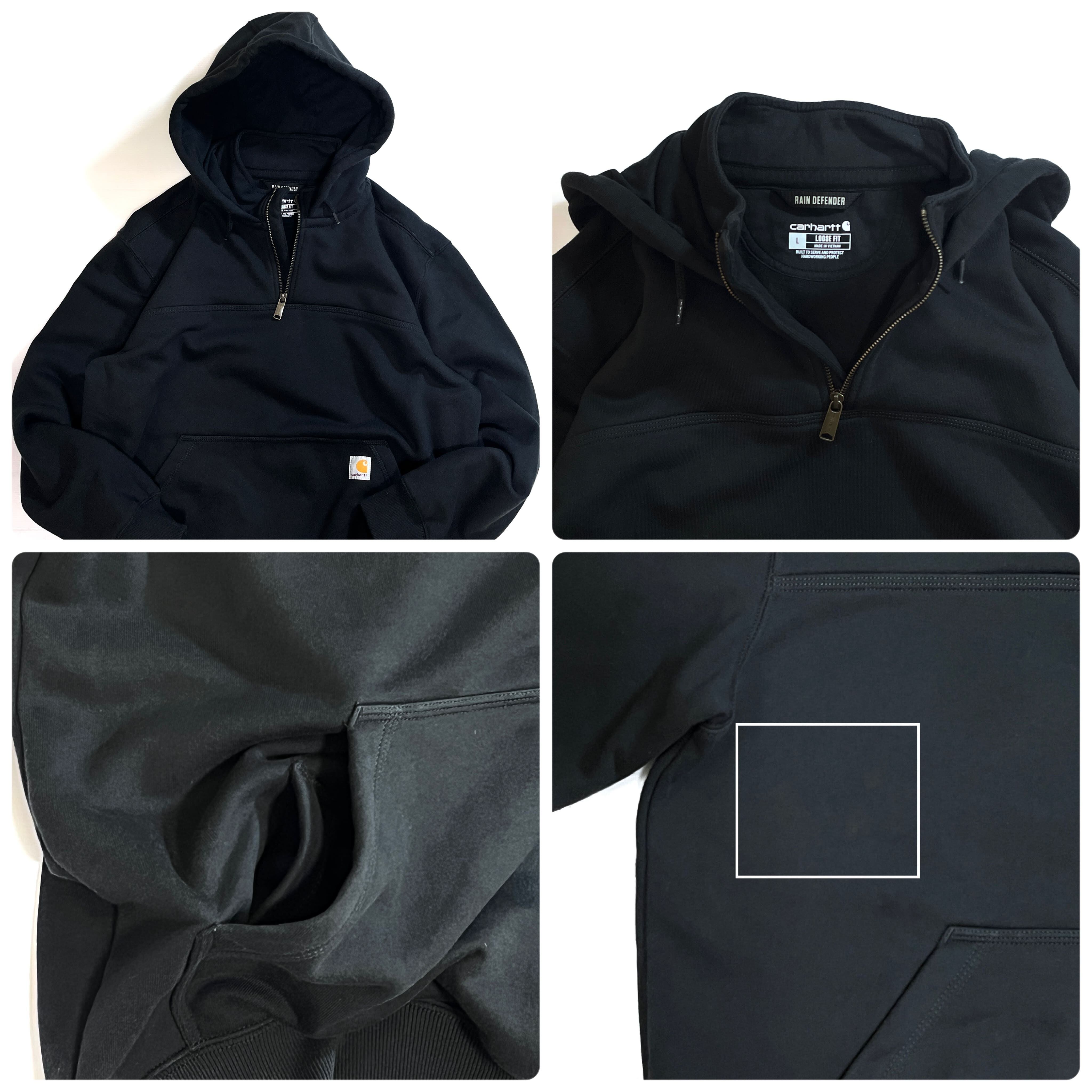 美品 Carhartt カーハート レインディフェンダー ヘビーウェイト ハーフジップ スウェット パーカー Lサイズ LARGE ブラック 黒 BLK TS0617-M USA企画 1/4ジップ クォータージップ 肉厚 裏起毛 RAIN DEFENDER LOOSE FIT HEAVYWEIGHT QUARTER-ZIP SWEATSHIRT Fall 2022 BLACK フード フーディー ルーズフィット p25103374