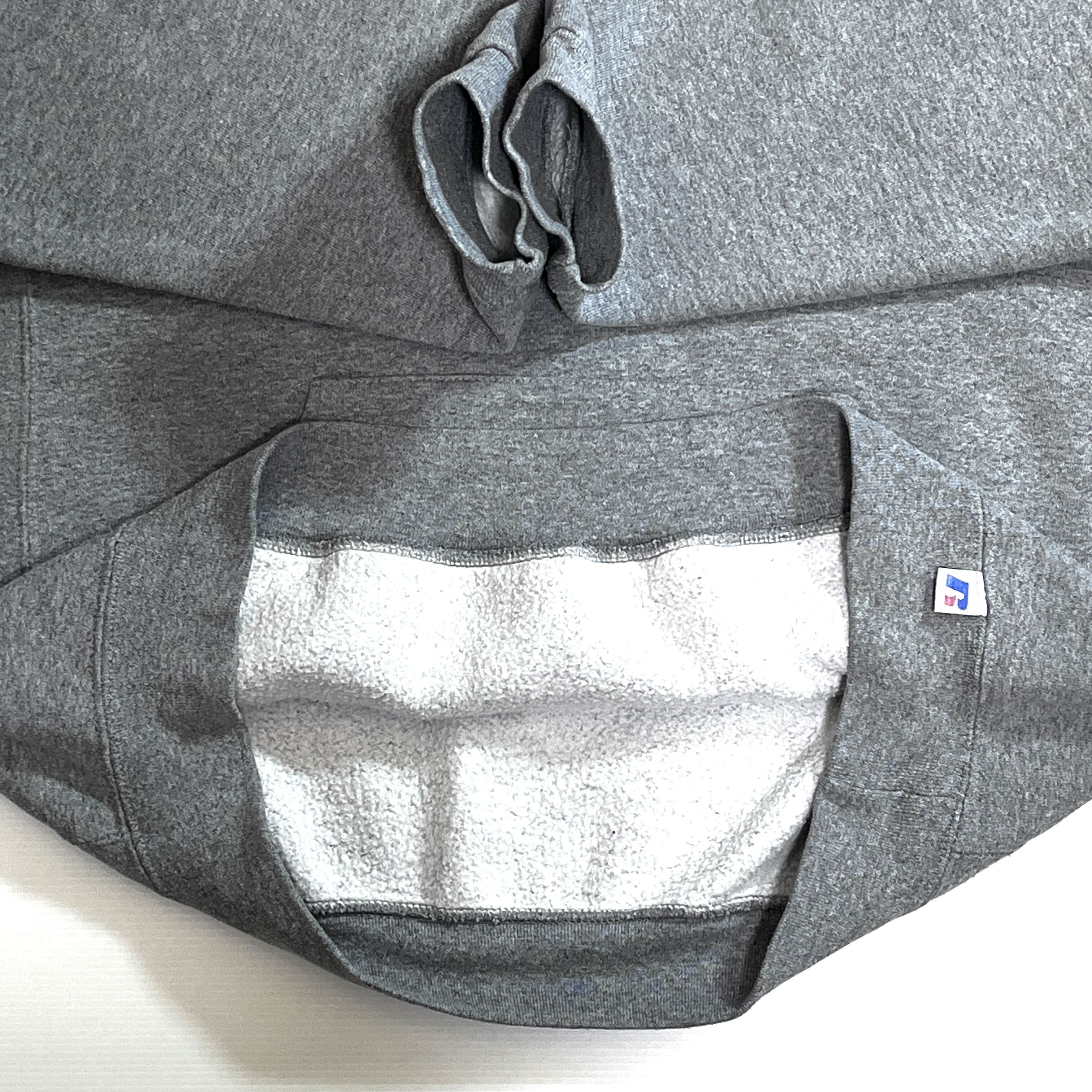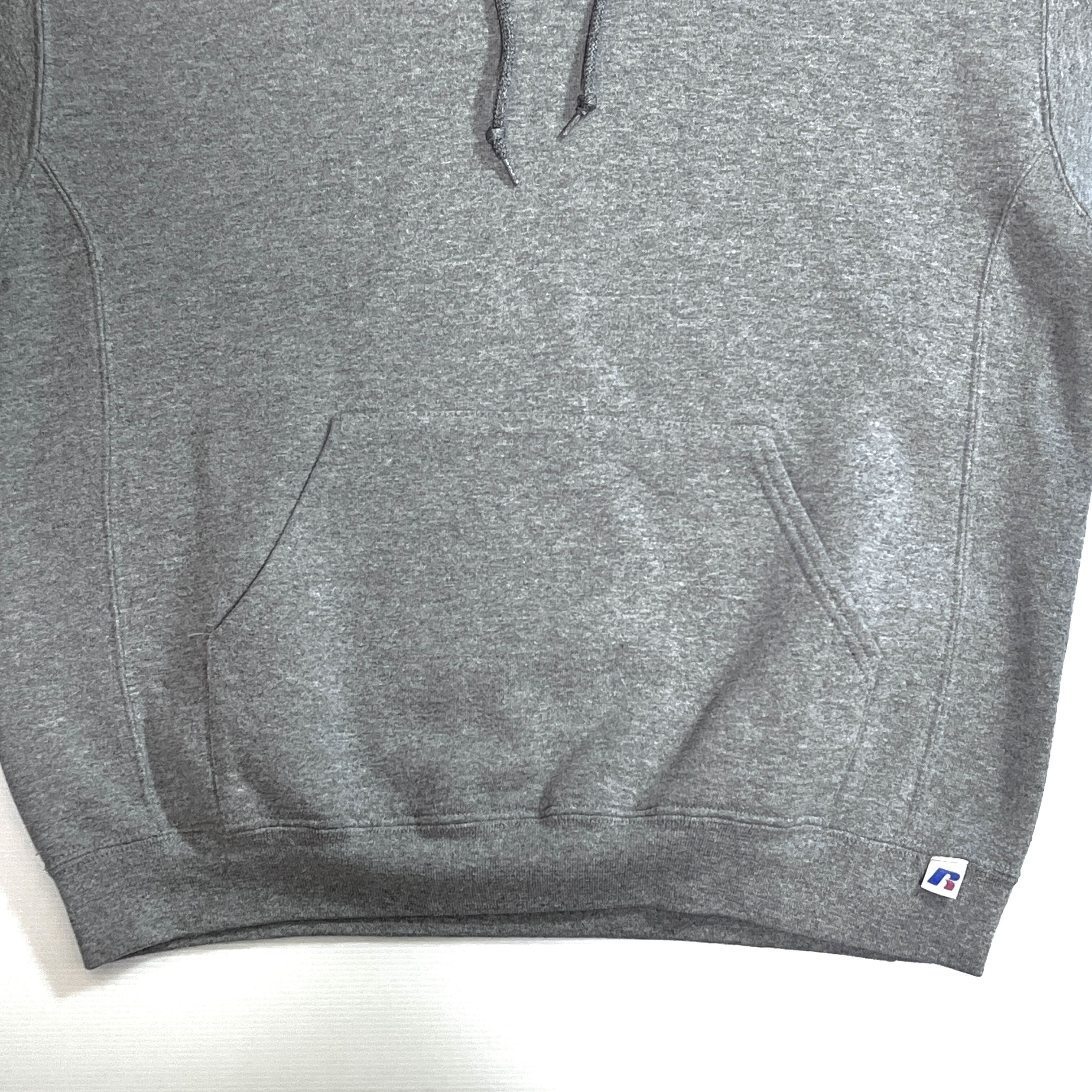 00s RUSSELL ATHLETIC ラッセル アスレチック 無地 スウェット パーカー L 霜降りグレー ヘザーグレー ワンポイント刺繍ロゴピスネーム 前V ガゼット 裏起毛 プルオーバー フード フーディー トップス ノームコア ソリッド PLAIN BLANK PULLOVER SWEAT HOODIE 短丈ボックスシルエット 神サイズ p25103365