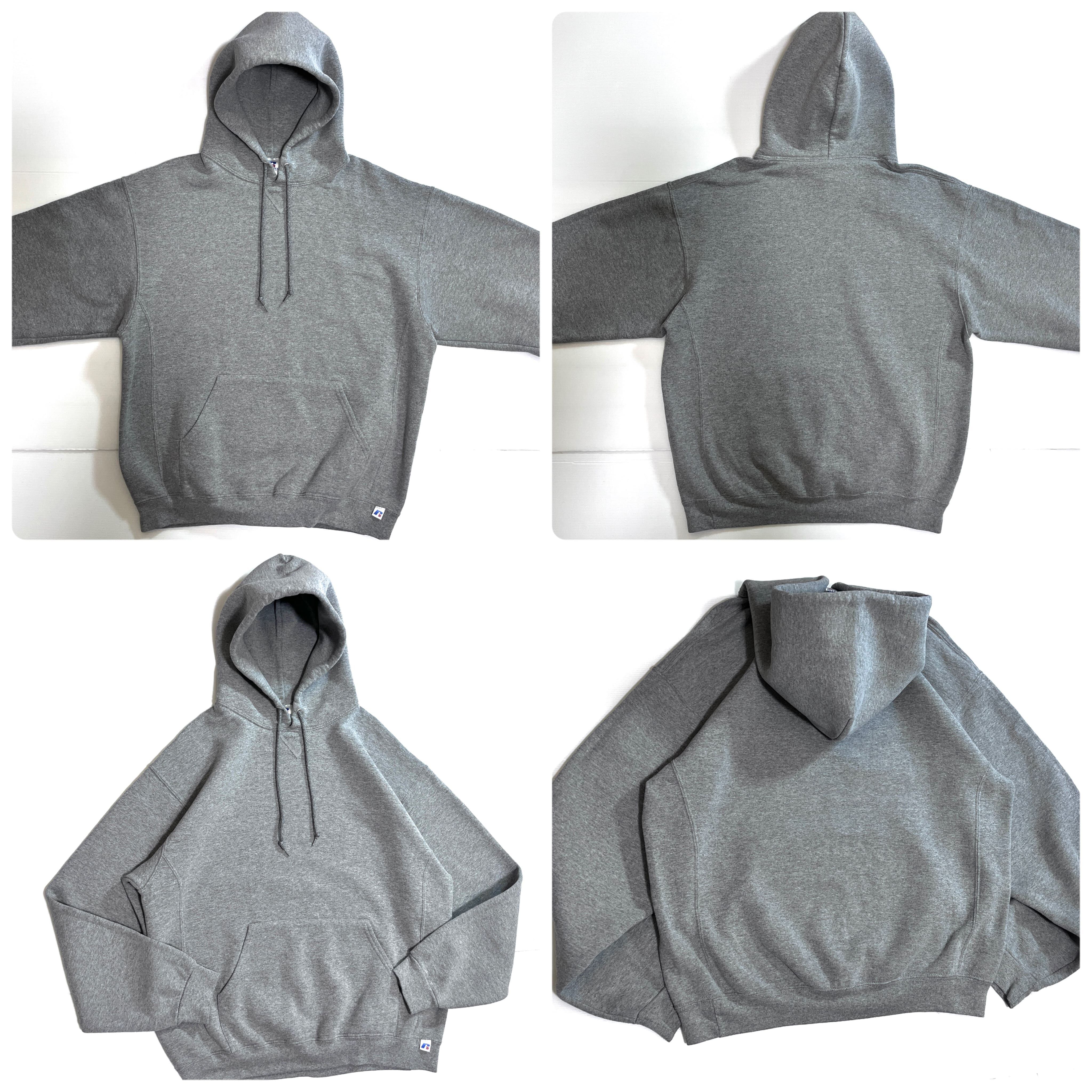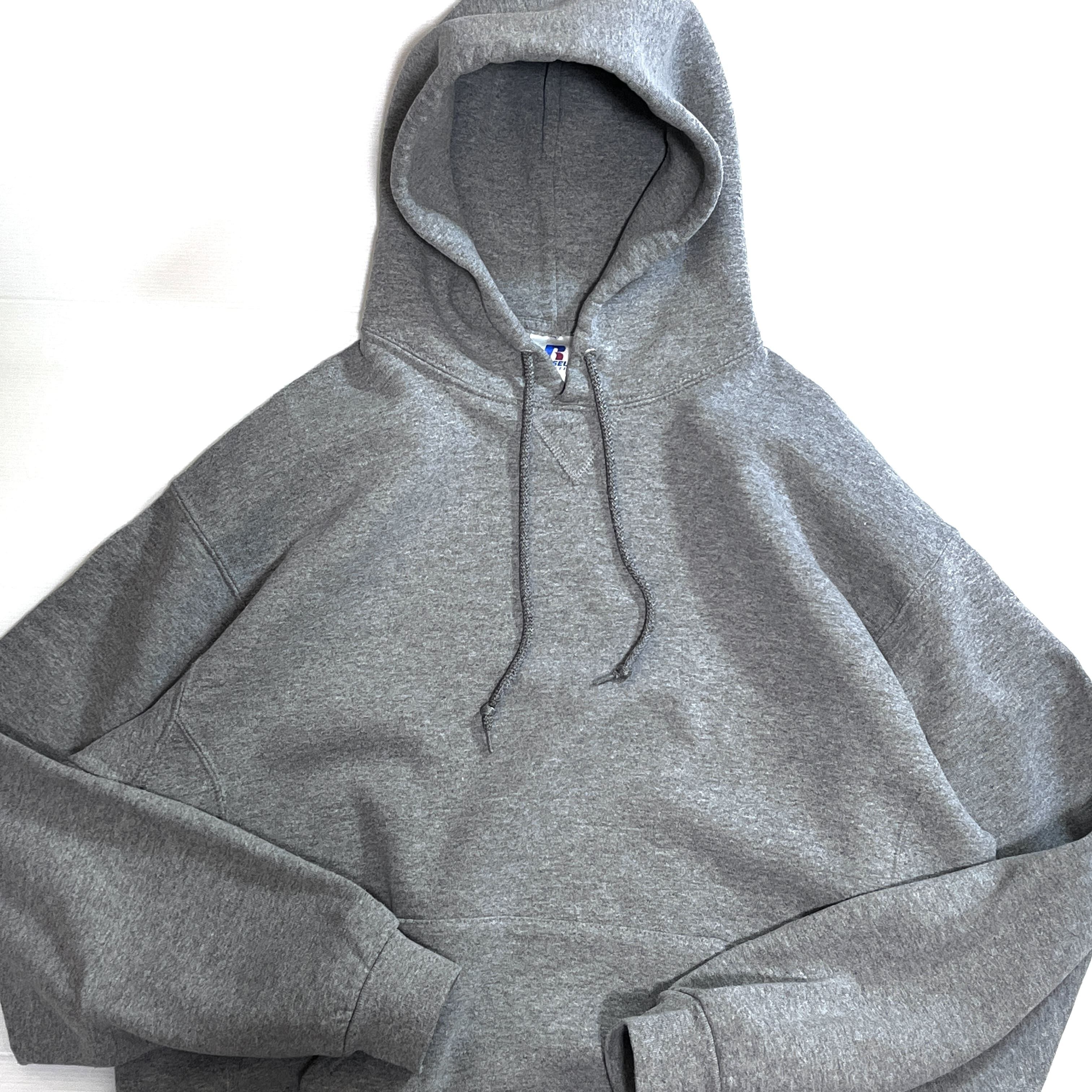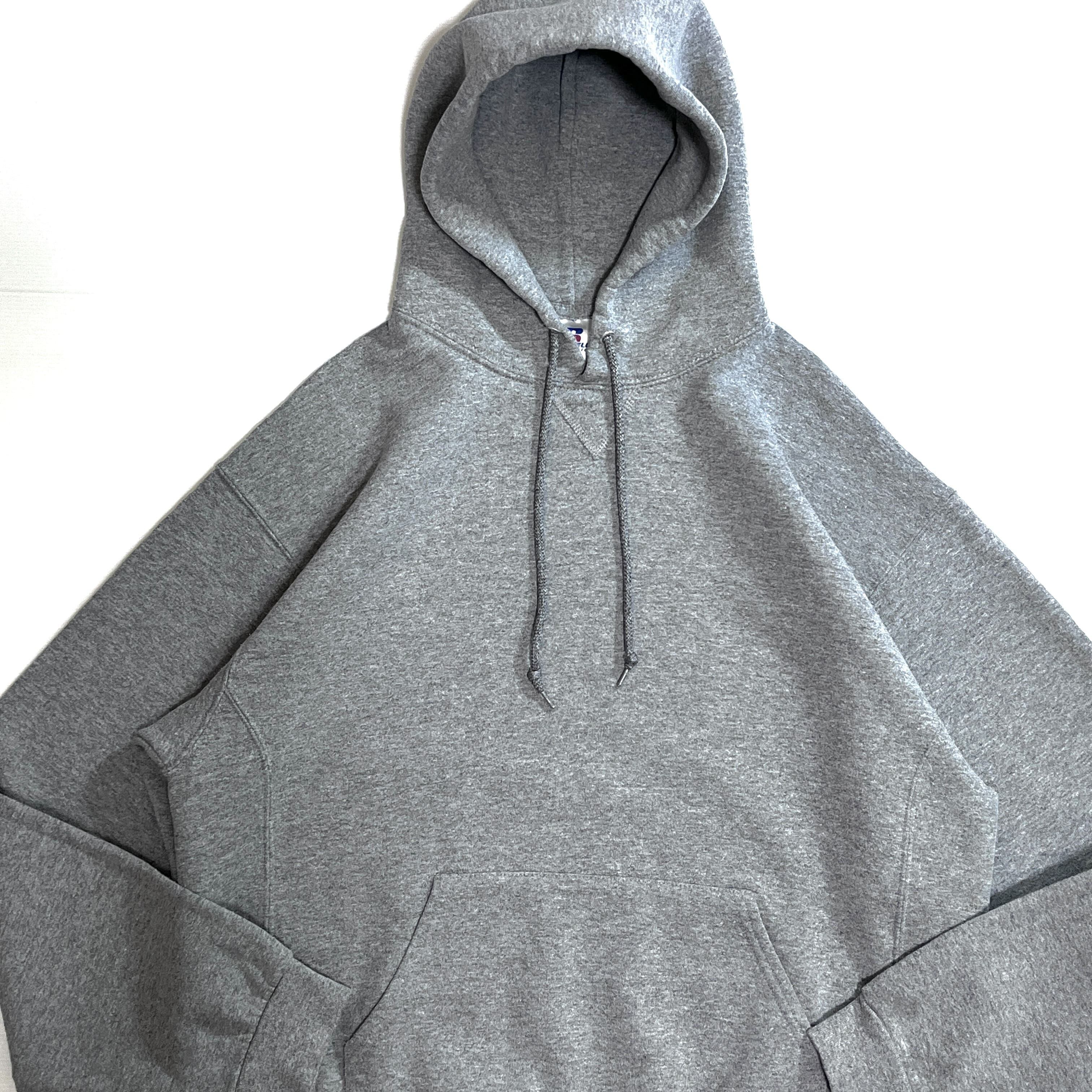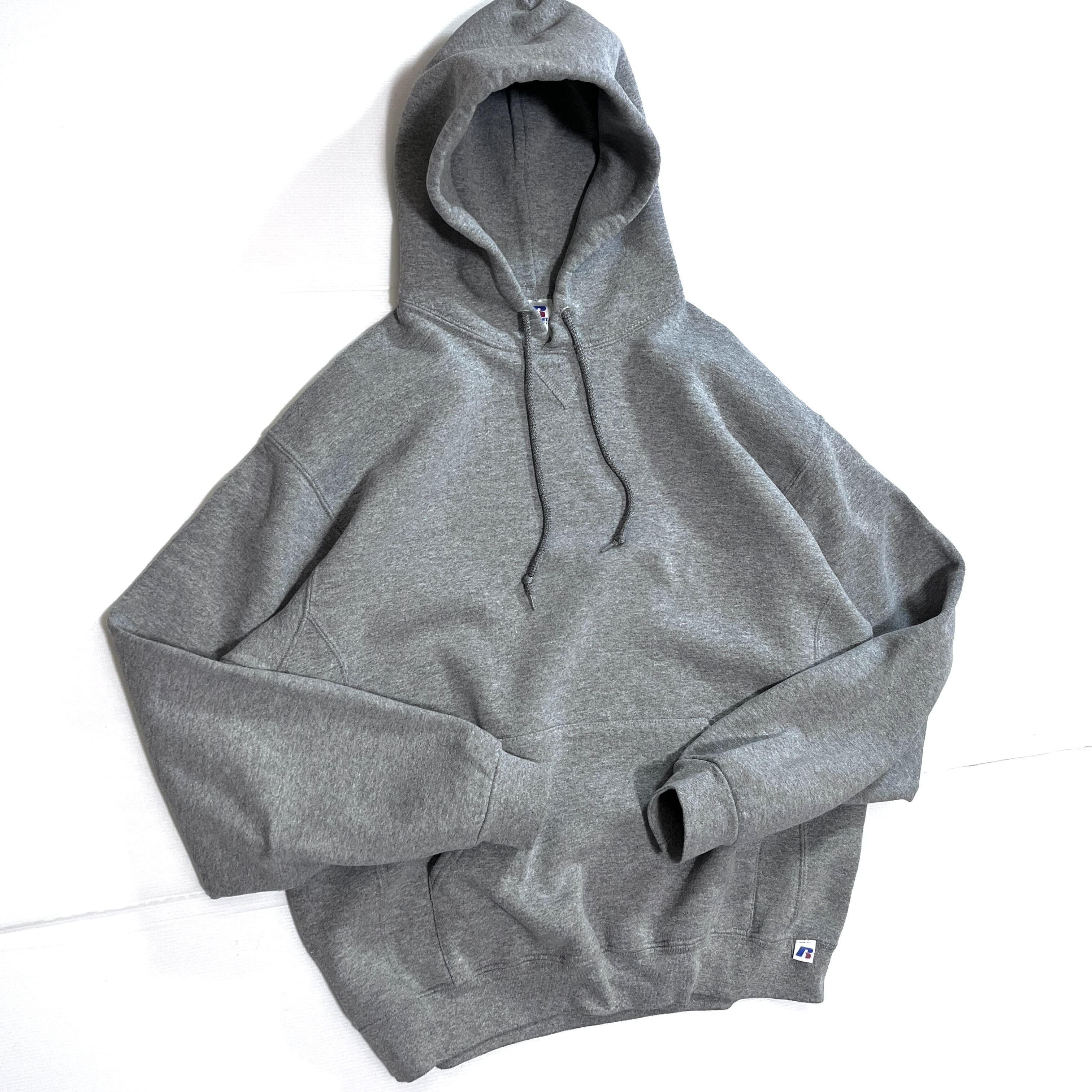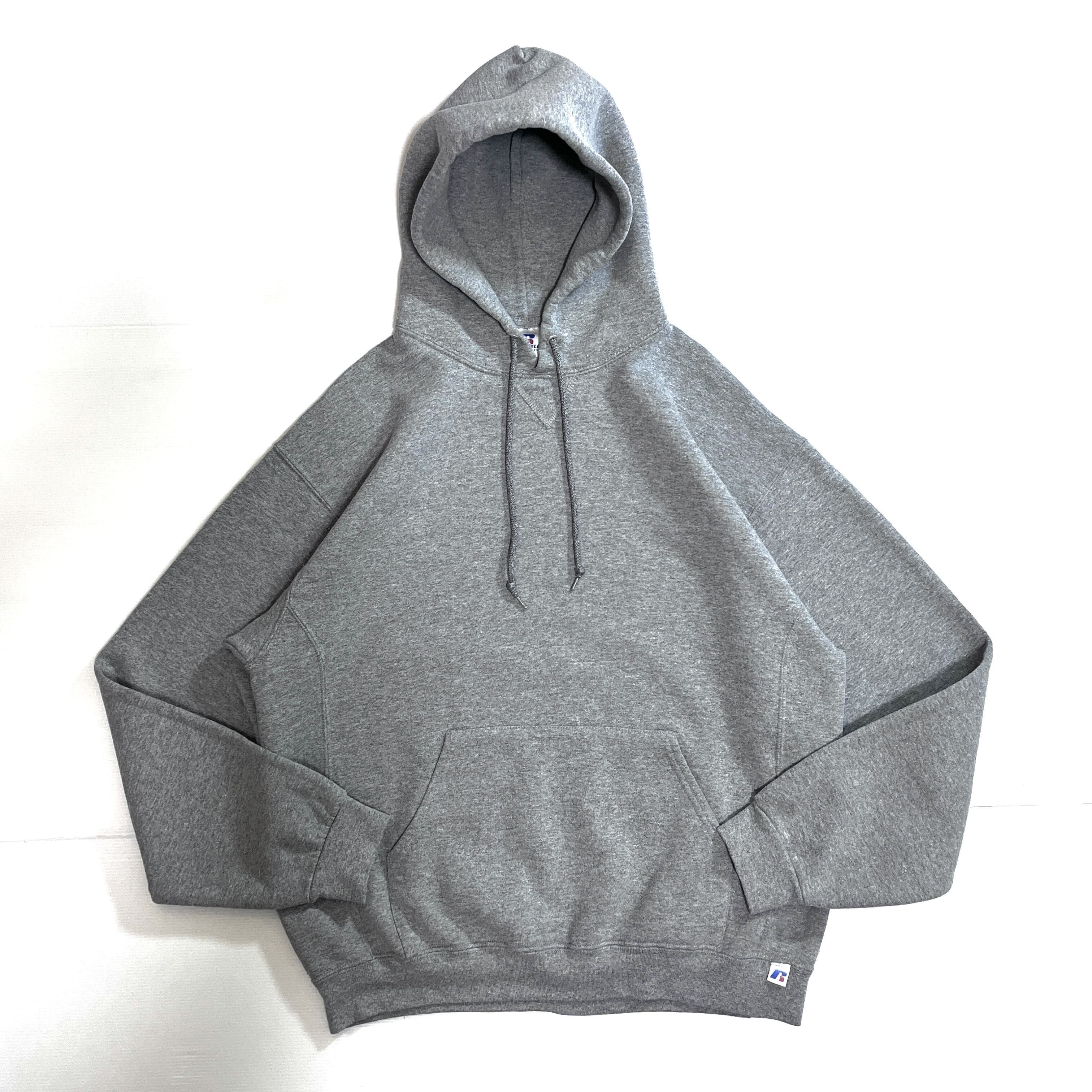 00s RUSSELL ATHLETIC PLAIN BLANK PULLOVER SWEAT HOODIE ラッセル アスレチック 無地 ワンポイント刺繍ロゴピスネーム 前V ガゼット 裏起毛 プルオーバー スウェット パーカー フード フーディー メンズ トップス ソリッド ブランク ノームコア 短丈ボックスシルエット 神サイズ