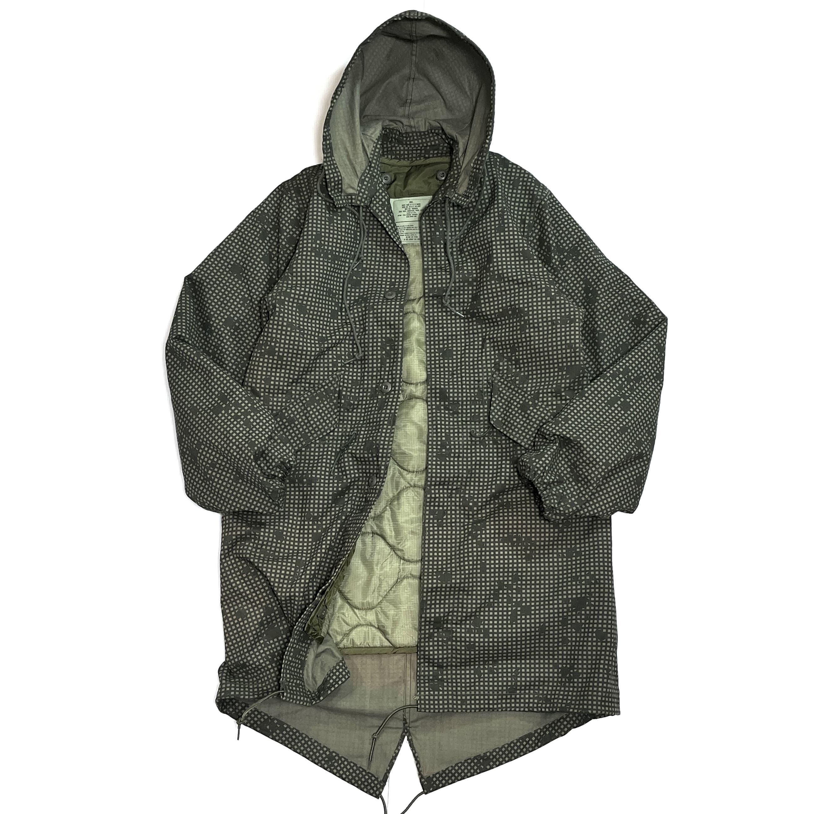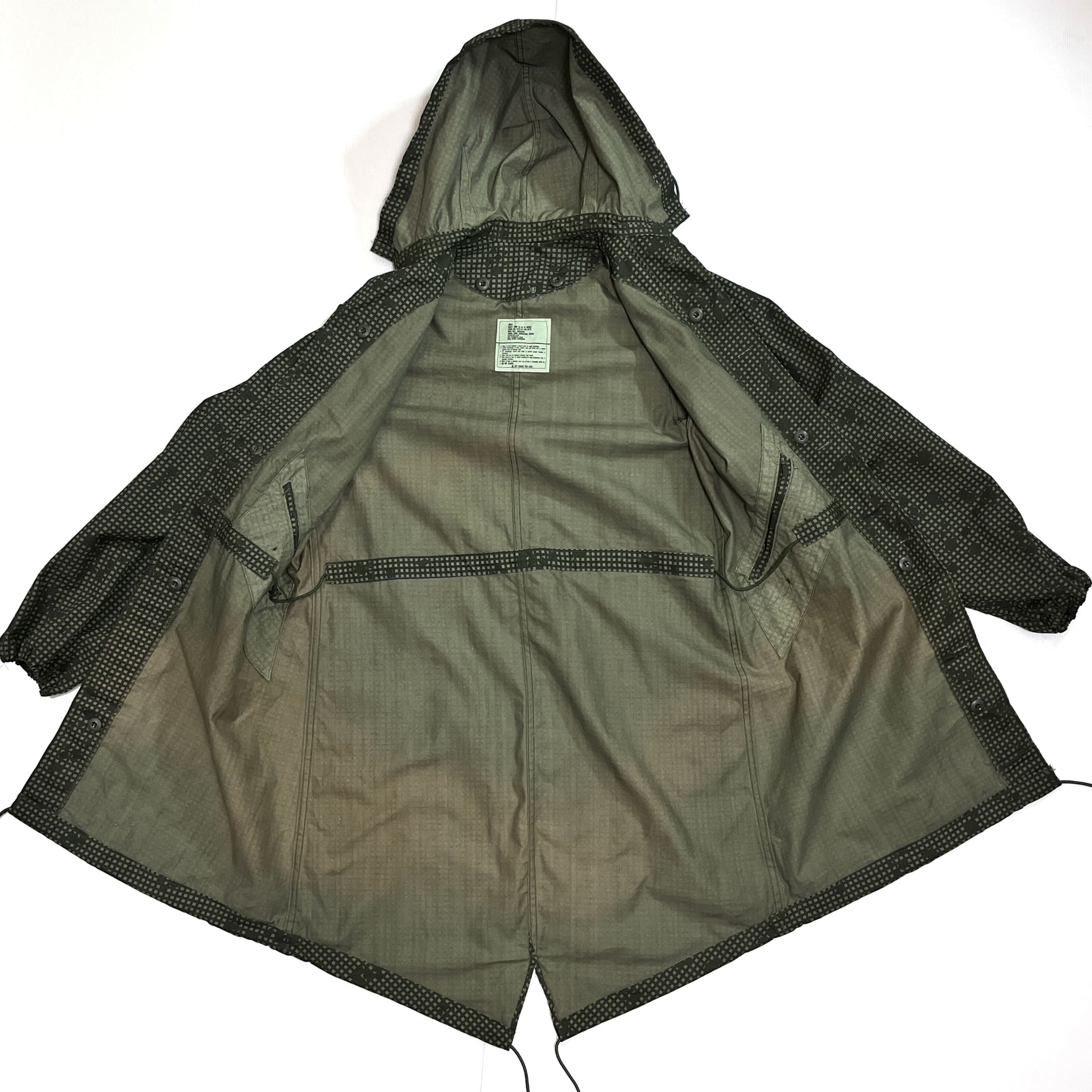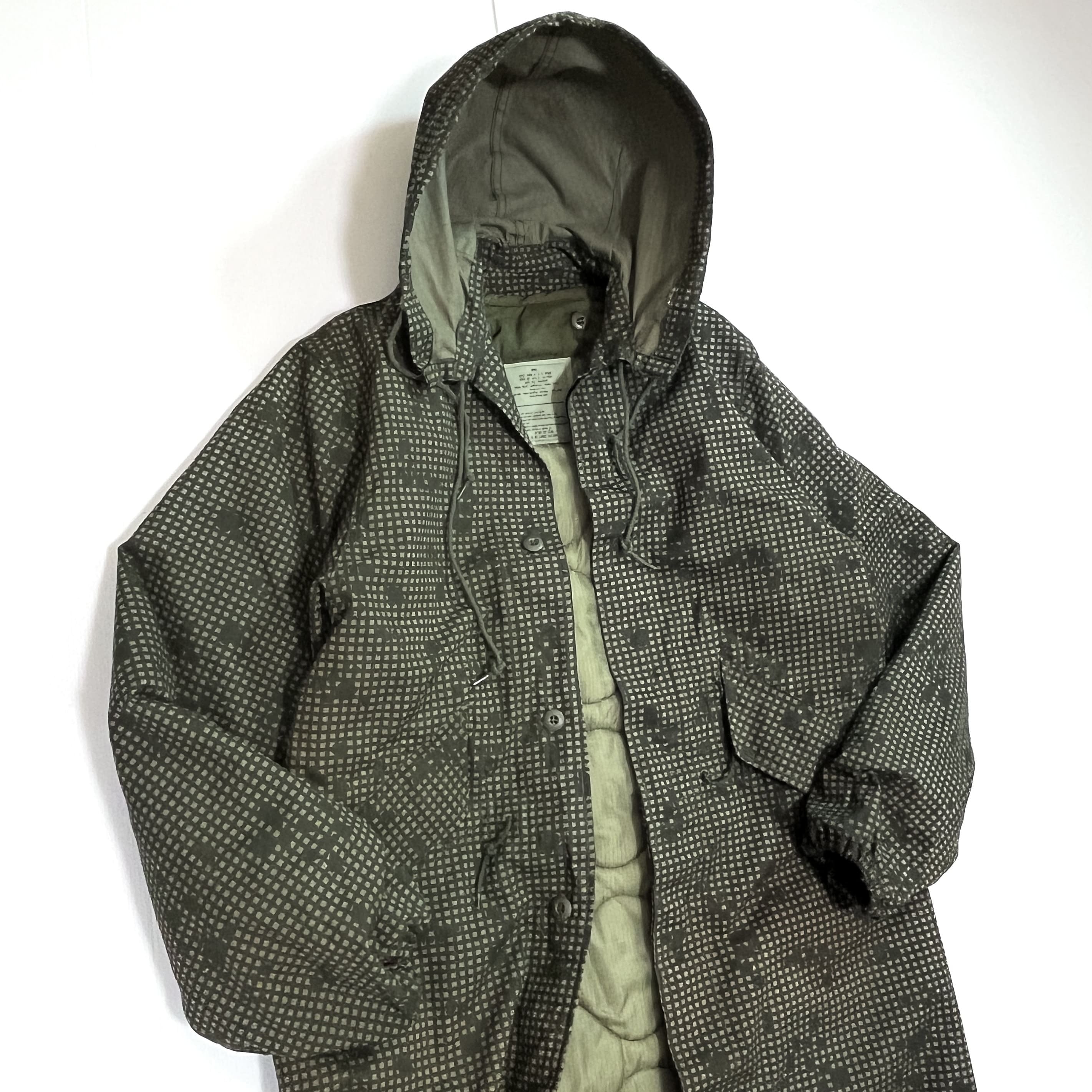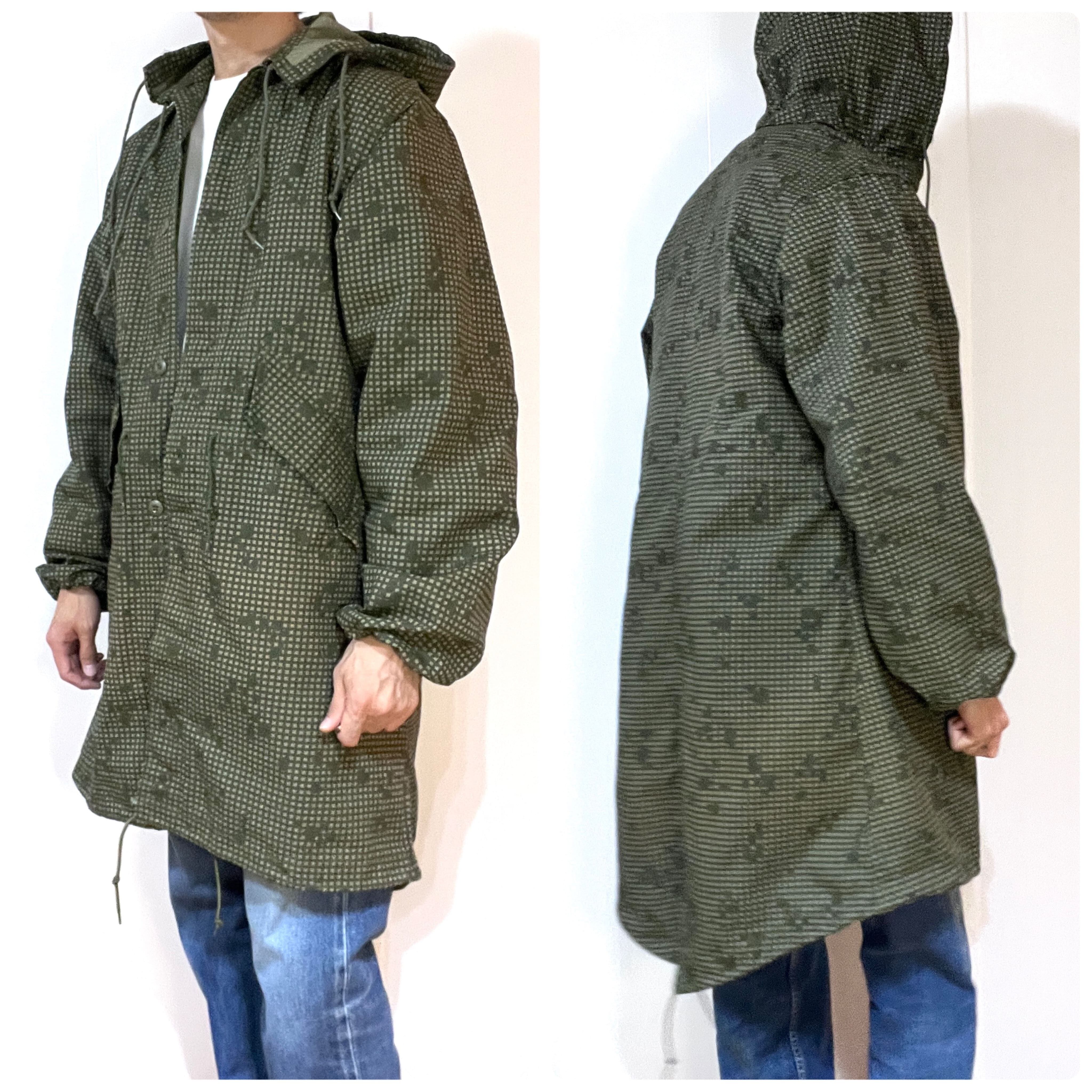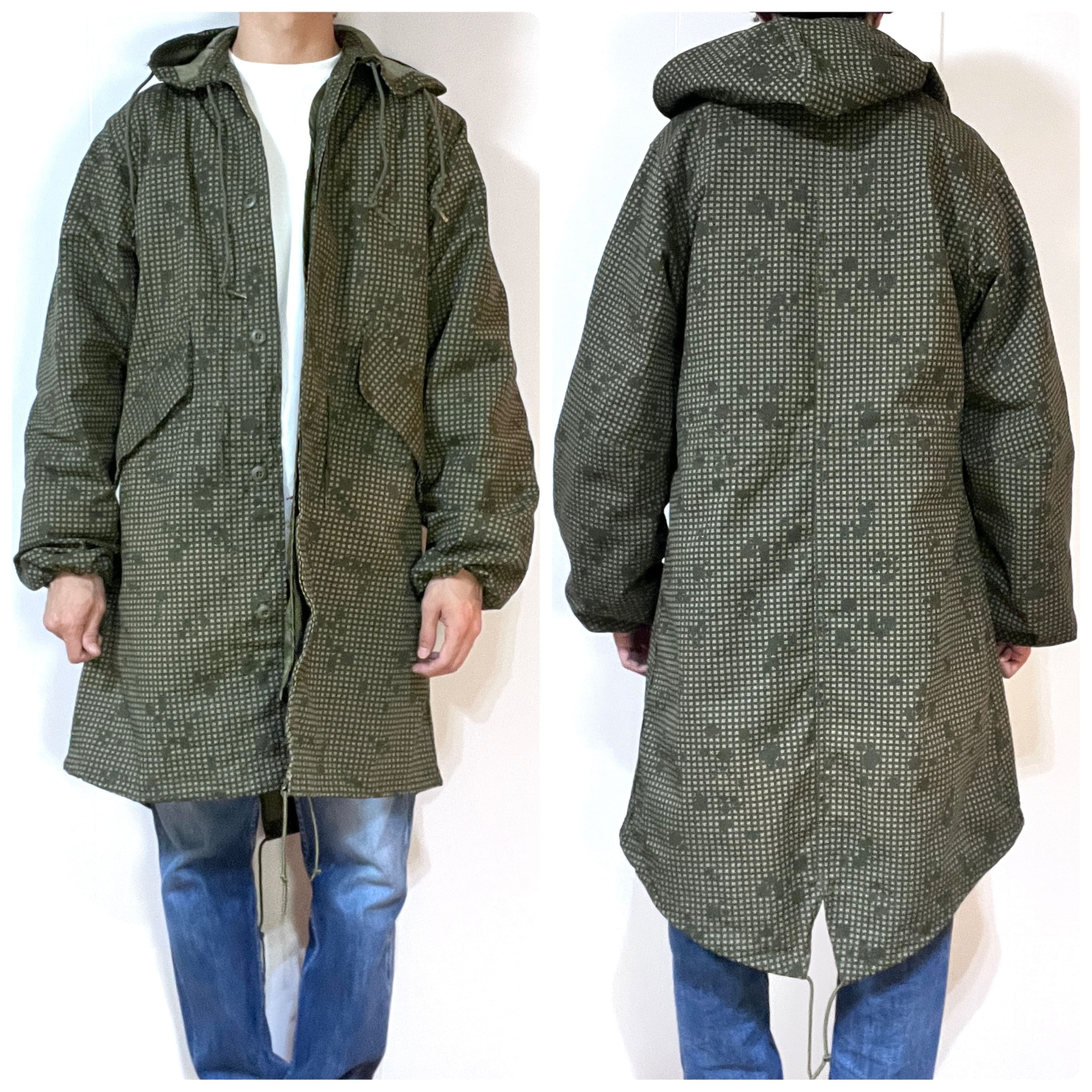・後ろの裾が長めのM-51やM-65モッズコートと同様のフィッシュテールのディテール、フロントは比翼ボタンの仕様、ライニングはボタンで着脱可能、オーバーコート仕様による貫通ポケット、シェルとライニングは年代も製造メーカーも同一の完品