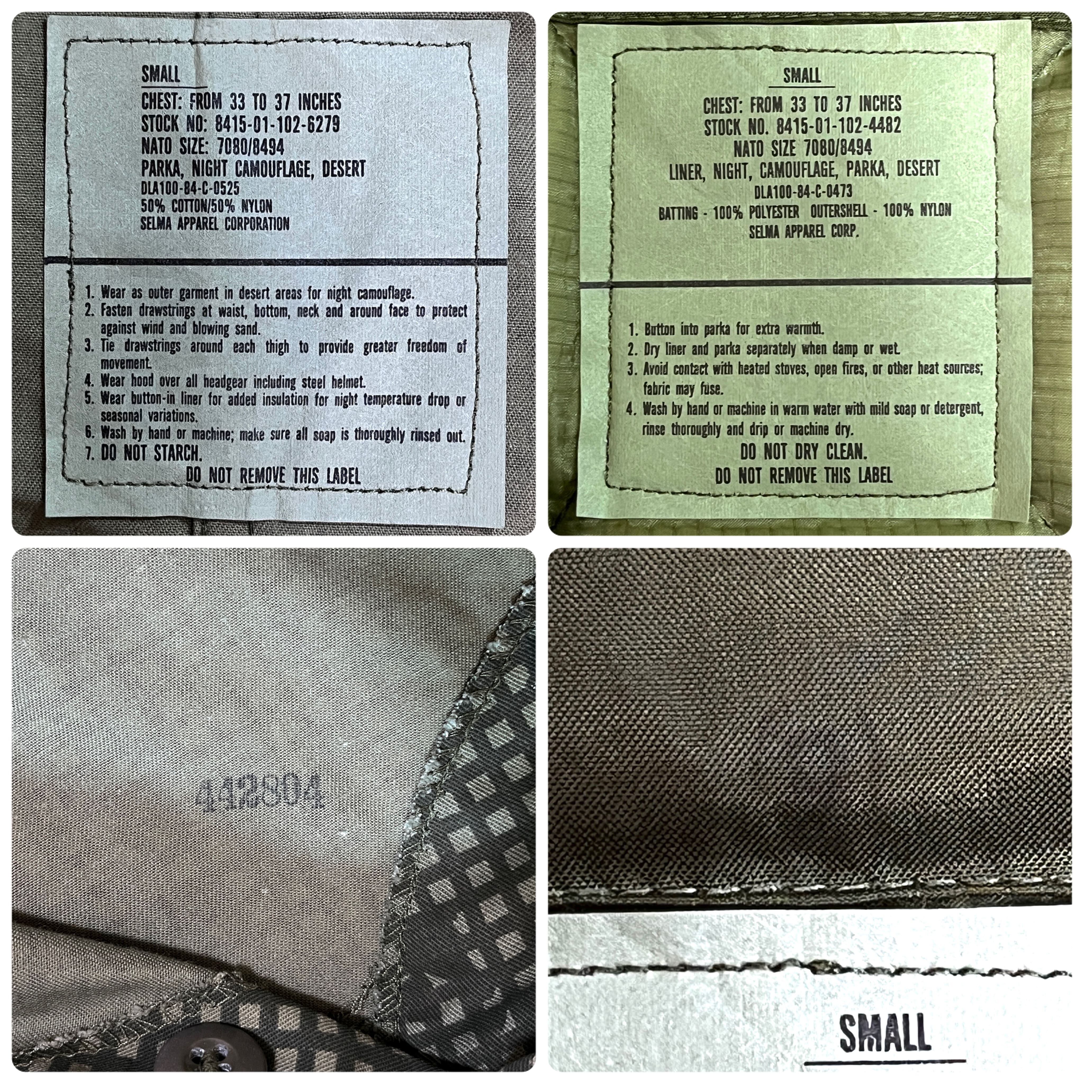 80s ほぼデッド フルセット U.S.ARMY 希少 米軍 実物 ナイトデザートカモ シェルパーカー ライナー付き フィッシュテールパーカー 【SMALL】ヴィンテージ ミリタリーコート メンズ ジャケット アウター 軍服 軍モノ 迷彩 防寒 ナイトカモ デザートカモ パーカー モッズコート 1980年代 1984年製 完品 p25103386